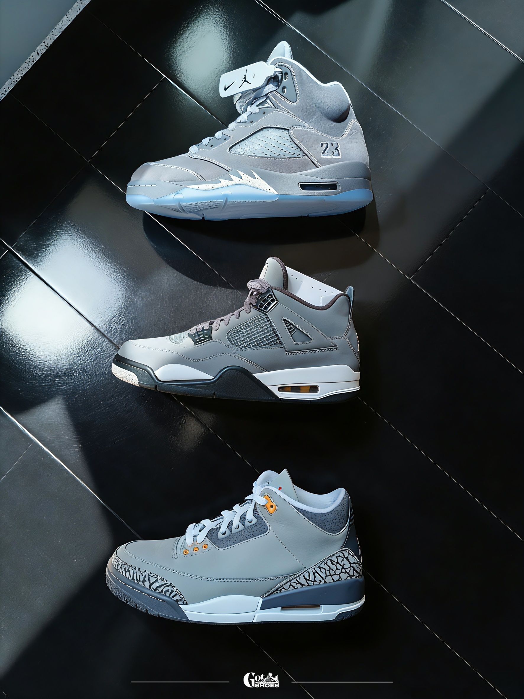 把AJ5、AJ4、AJ3这三双灰调神鞋凑齐同框,真的是球鞋玩家的终极浪漫✨ AJ5「灰麂皮」自带高级感,冰蓝水晶底+23号刺绣,复古氛围直接拉满; AJ4「灰老鼠」是永远的经典,网眼透气设计+标志性侧三角,上脚就是街头OG; AJ3「灰水泥」把爆裂纹玩到极致,橙扣点缀+荔枝皮质感,低调又有辨识度。 三双#你心中的最佳酷灰鞋款 鞋同属灰系家族,却各有各的灵魂:5代的凌厉、4代的硬朗、3代的复古,...