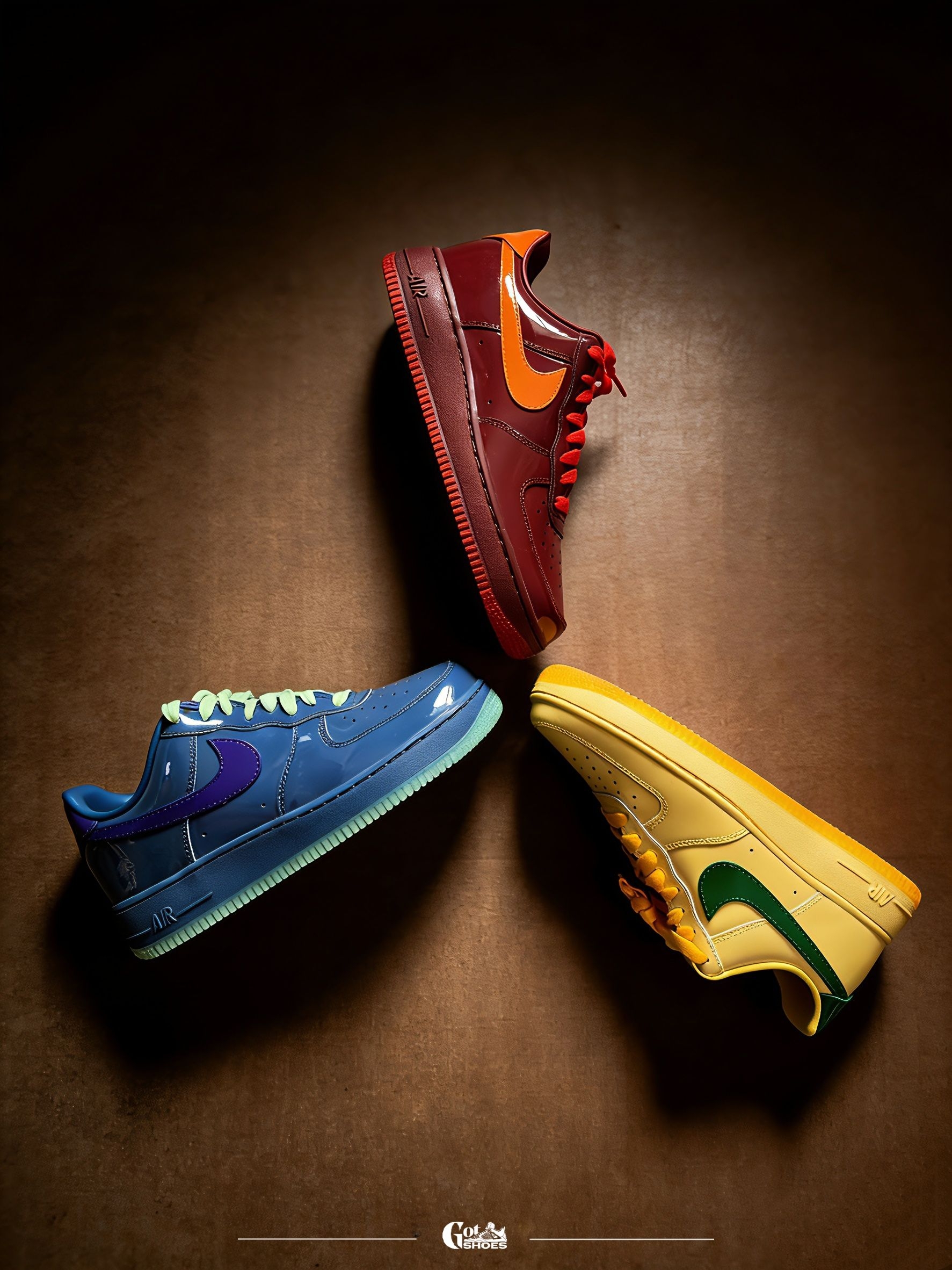 终于凑齐了这组超有辨识度的Nike Air Force 1拼色系列!🍬 酒红配橙、鹅黄配绿、宝蓝配青,每一双都把“撞色玩明白了”。漆皮鞋面自带高级光泽,阳光下质感直接拉满,不管是近距离特写还是平铺排列,视觉冲击力都超强。 作为经典板鞋,AF1的百搭属性不用多说: ✅ 颜值在线:高饱和撞色设计,回头率爆表,轻松成为穿搭亮点; ✅ 脚感舒适:经典缓震配置,日常通勤、刷街暴走都不累; ✅ 造型百变:搭...