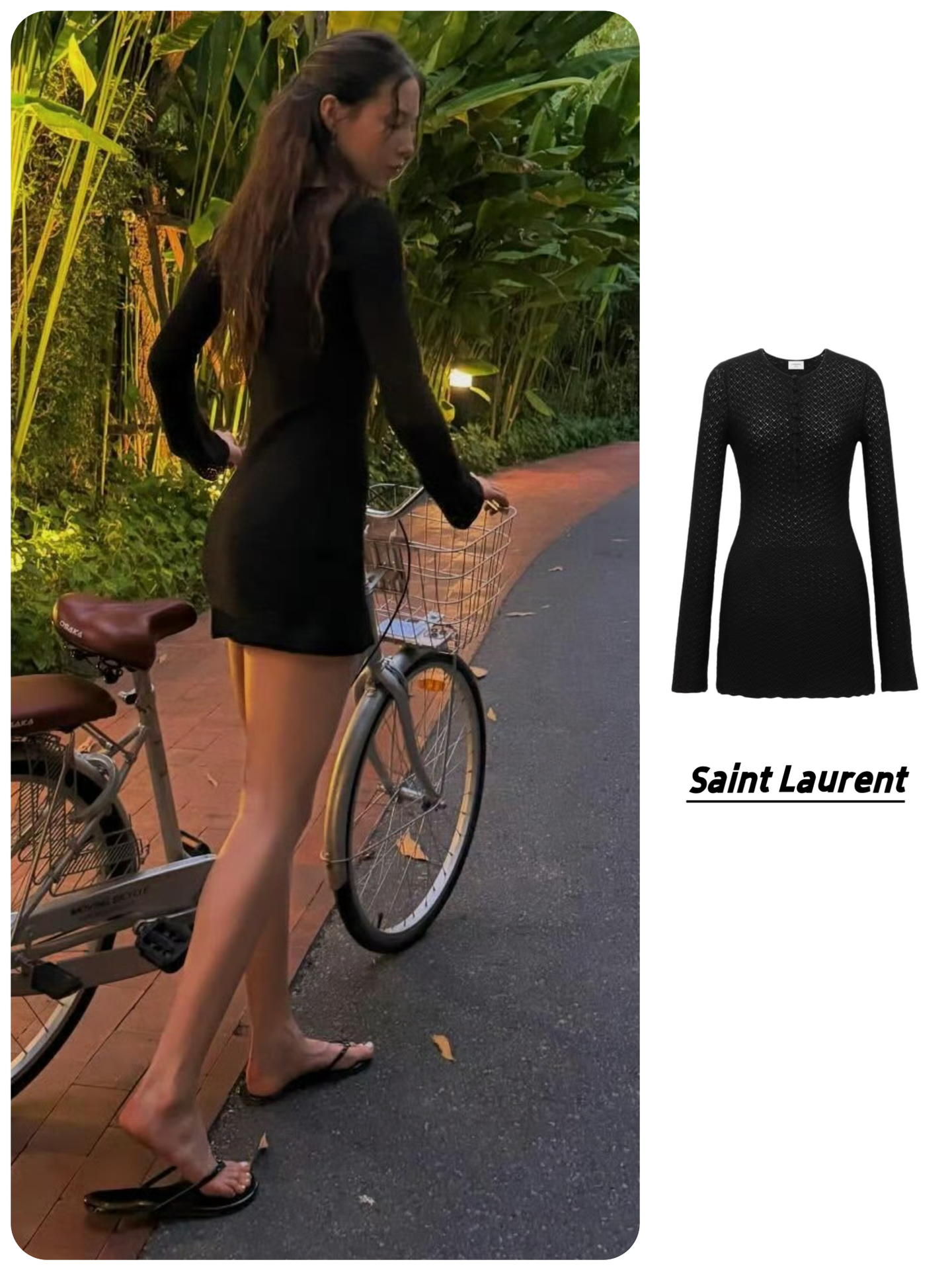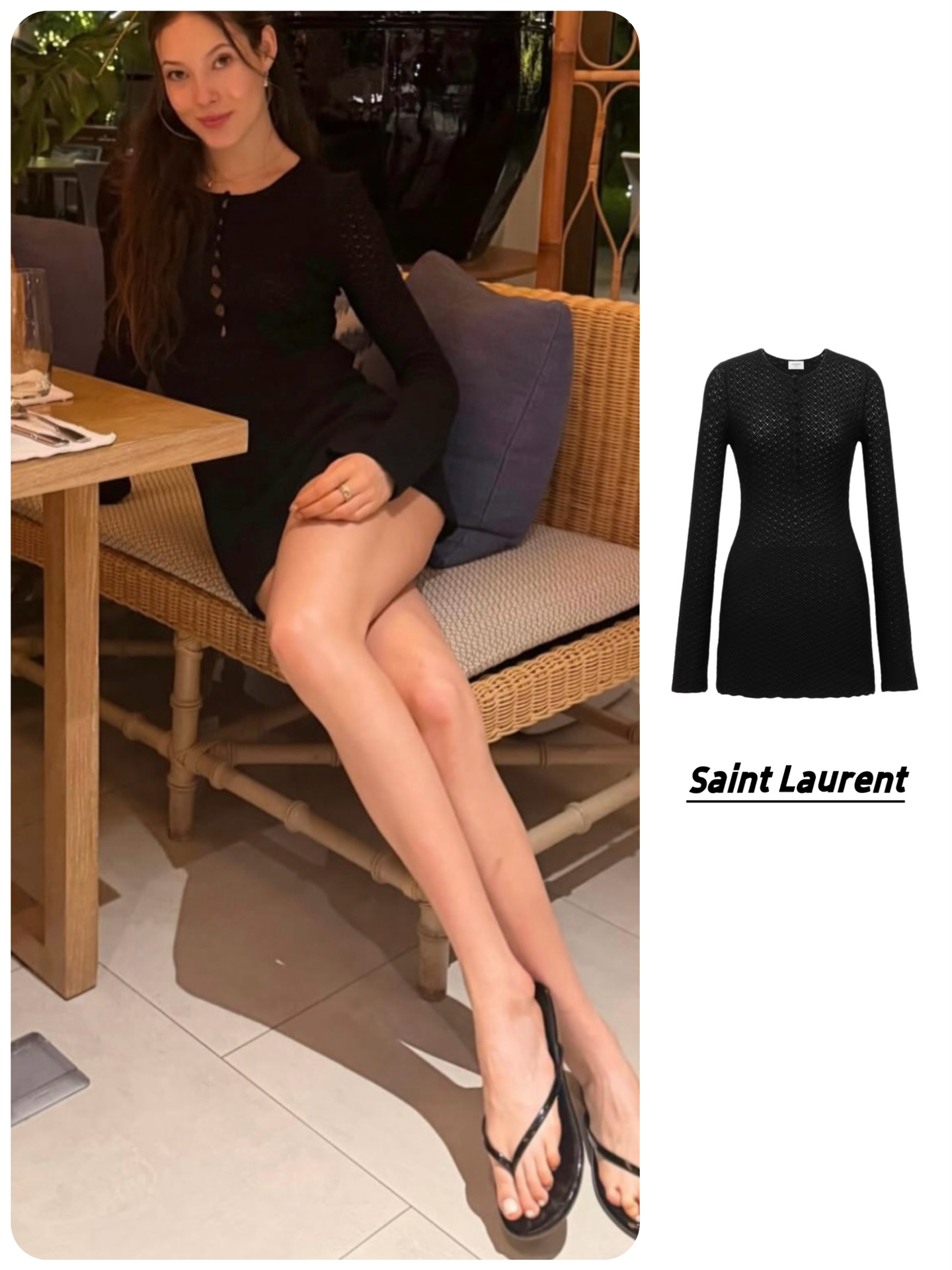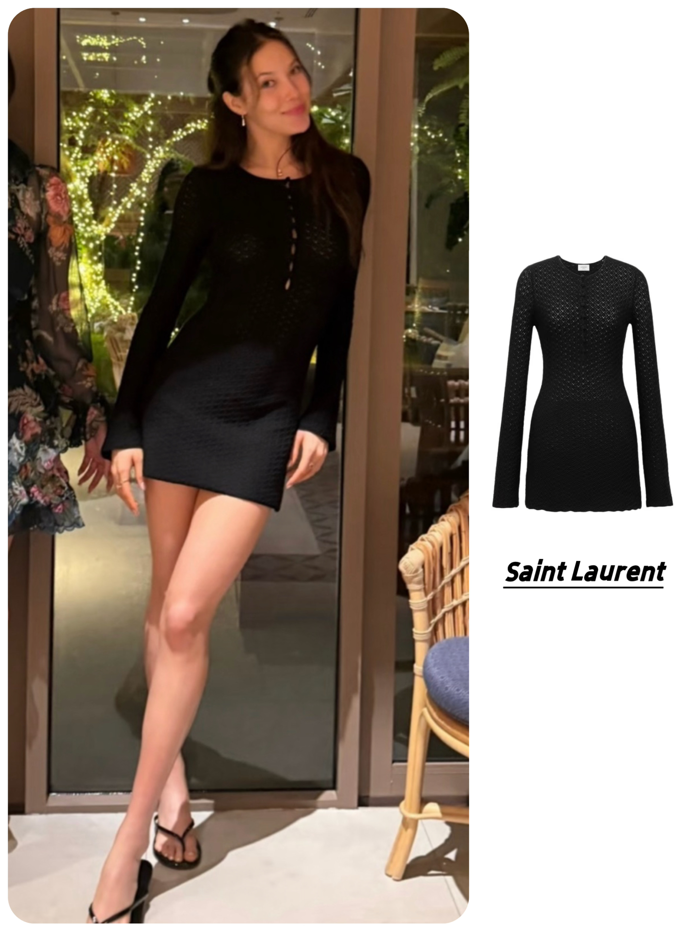 👗SAINT LAURENT圣罗兰 纯色钩编纽扣圆领短款 长袖连衣裙
