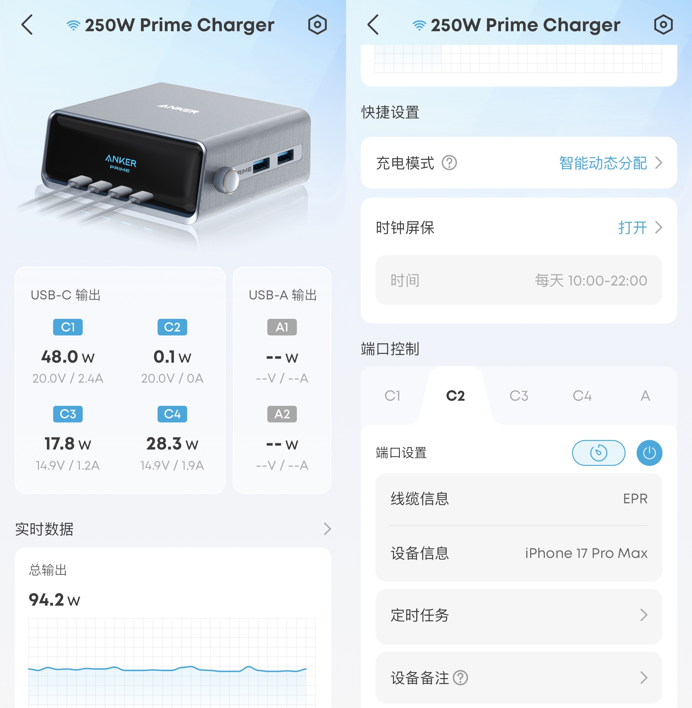 这下也算是真·大满贯了,安克桌面充 Pro 250W+现在完整支持华为66W快充和小米120W,同时还支持PD3.1/PPS等协议规范。4个USB-C口(C1可达140W,C2–C4给小米设备最高可以达到120W,其他设备可达100W),2个USB-A口分别可达22.5W,多口使用最高输出足足250W。 这样无论你是苹果📱全家桶,还是华为来一套、小米等设备都可以轻松快充。 我正面的彩屏也可以实时...