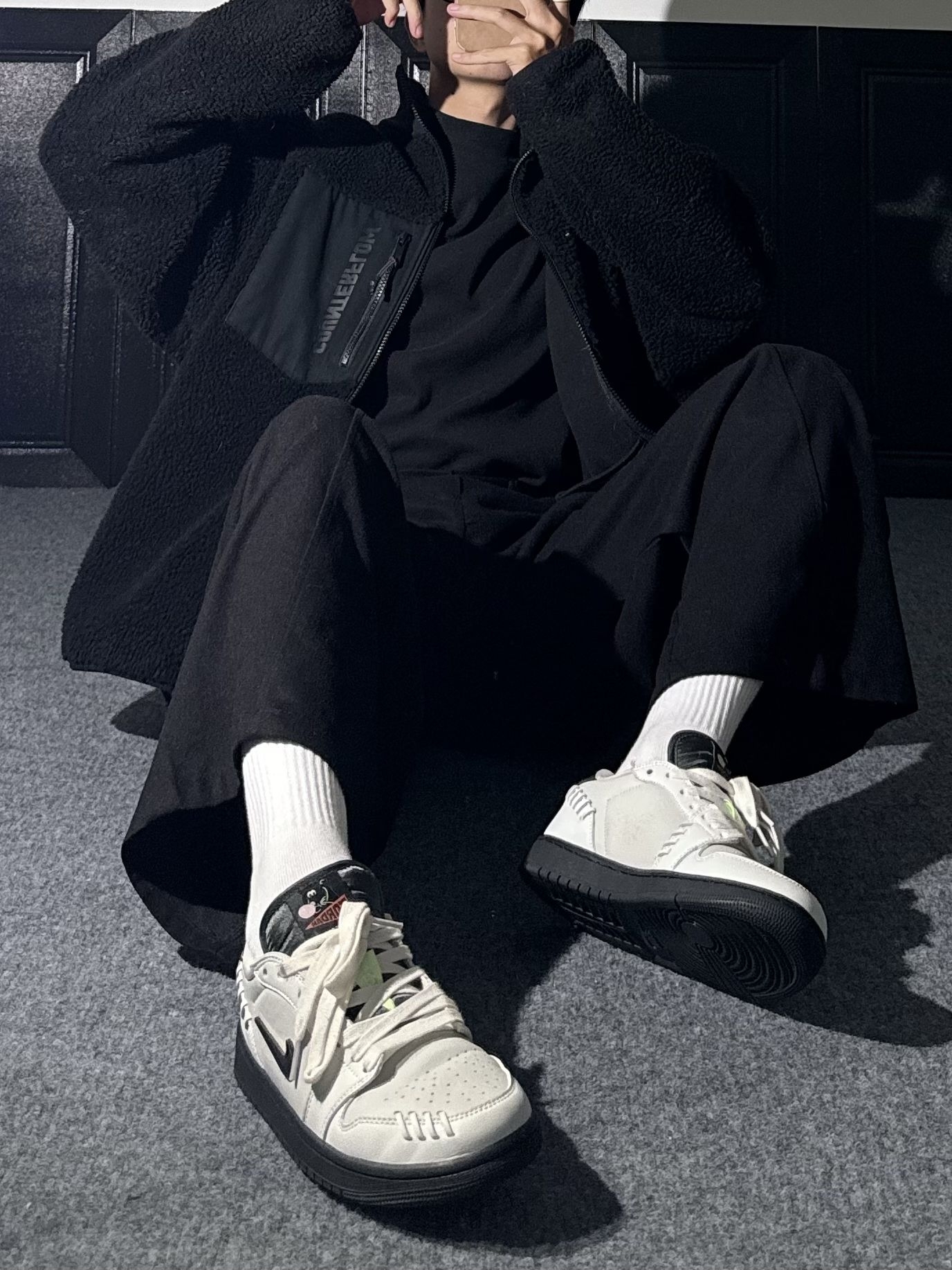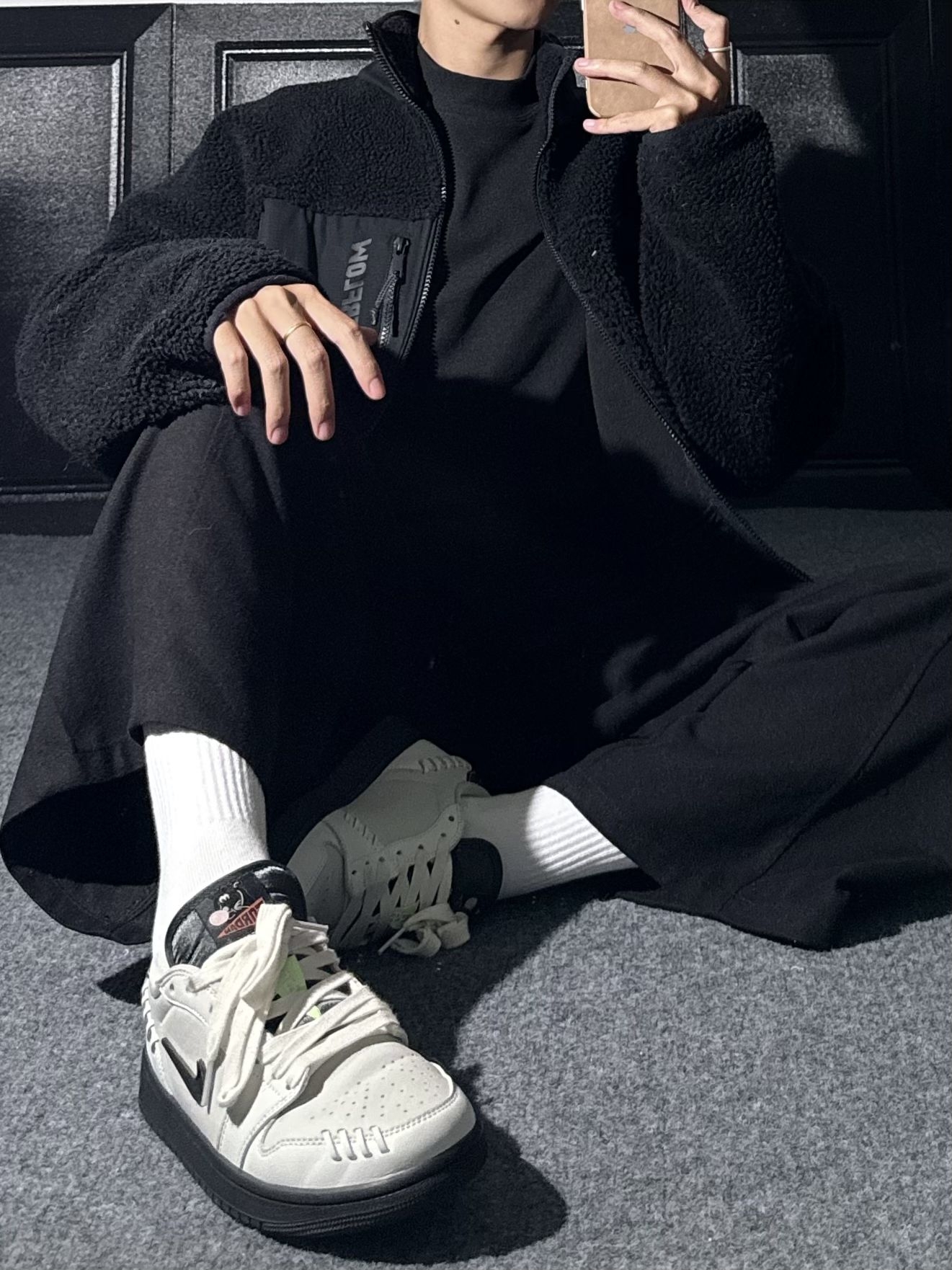 一身黑在这个冬季还是很权威呢😍|||李宁羊羔毛外套,黑色百搭,加厚保暖 搭配宽松垂感西裤,松弛慵懒显腿长 鞋子搭配复古aj球鞋,经典好看 冬季一身黑还是权威吧😍 #冬季穿搭帅出型 #竟然被鞋抢了c位 #冬日叠穿法则 #一件摆脱路人感 #温差穿搭指南