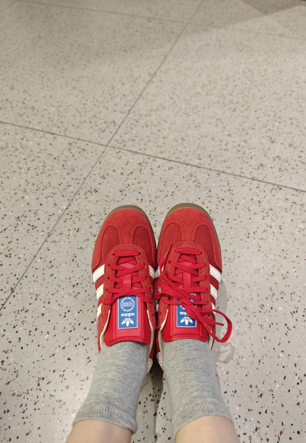 这双gazelle猩猩红德训鞋真的戳中我心巴了!🍒 复古又亮眼的配色,没想到秋冬穿也超百搭~