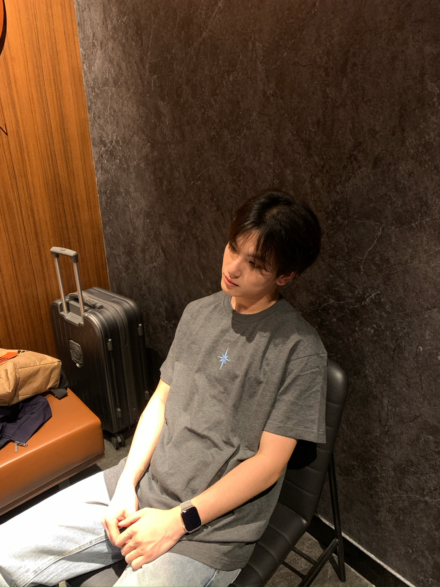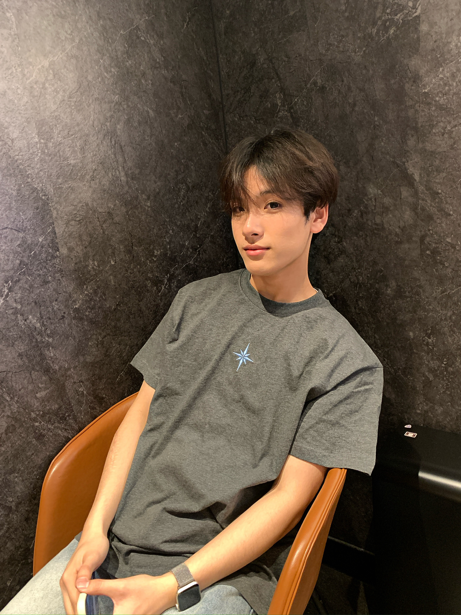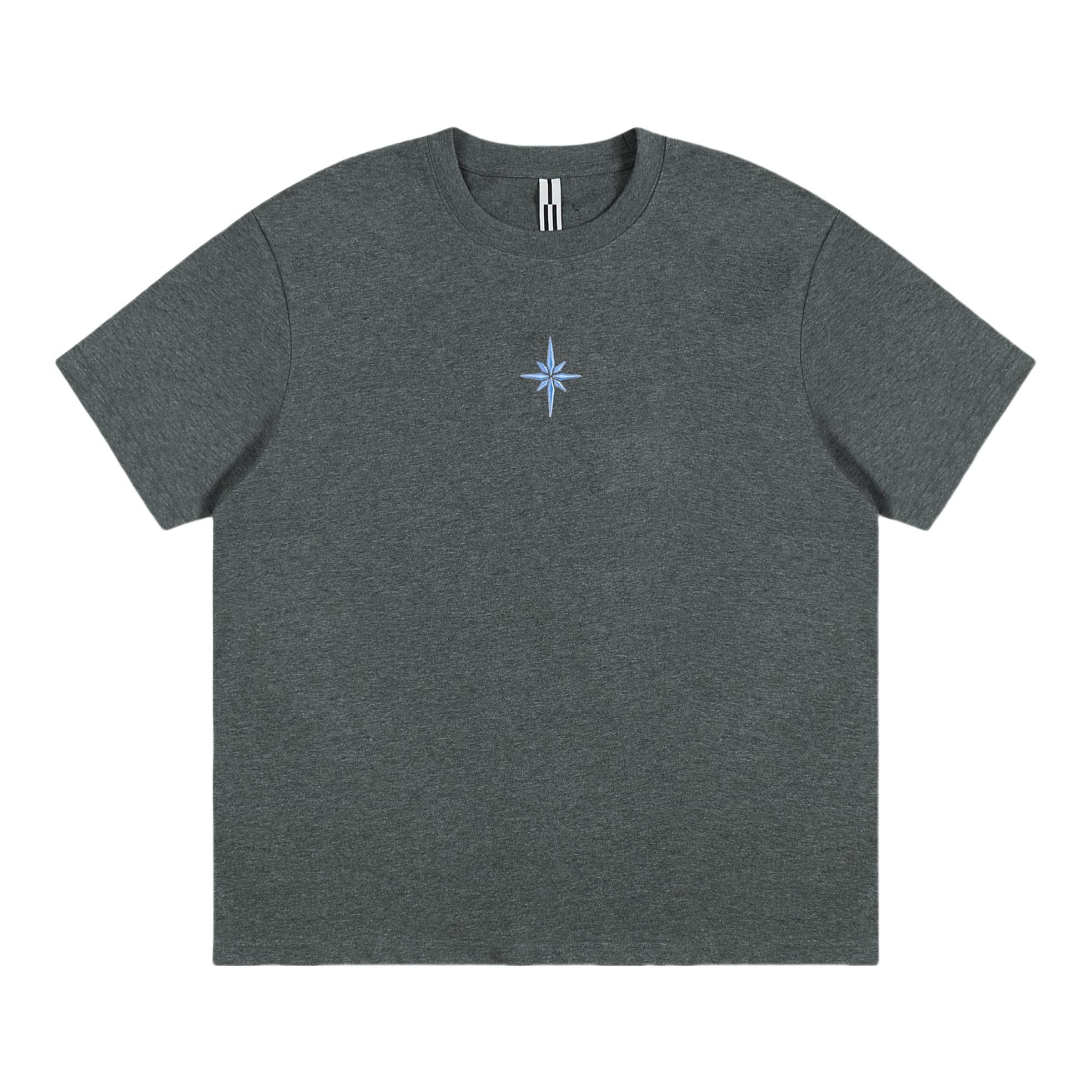 救命!这件深灰T恤直接焊在我身上了🤣 面料是那种有点厚度但又不闷的,夏天穿完全不热,深灰色也巨显瘦!胸口的星芒刺绣很精致,不会掉也不会扎人,搭个浅蓝牛仔裤就是韩系男主那味儿了,日常穿或者约会穿都合适,闭眼冲就完事!