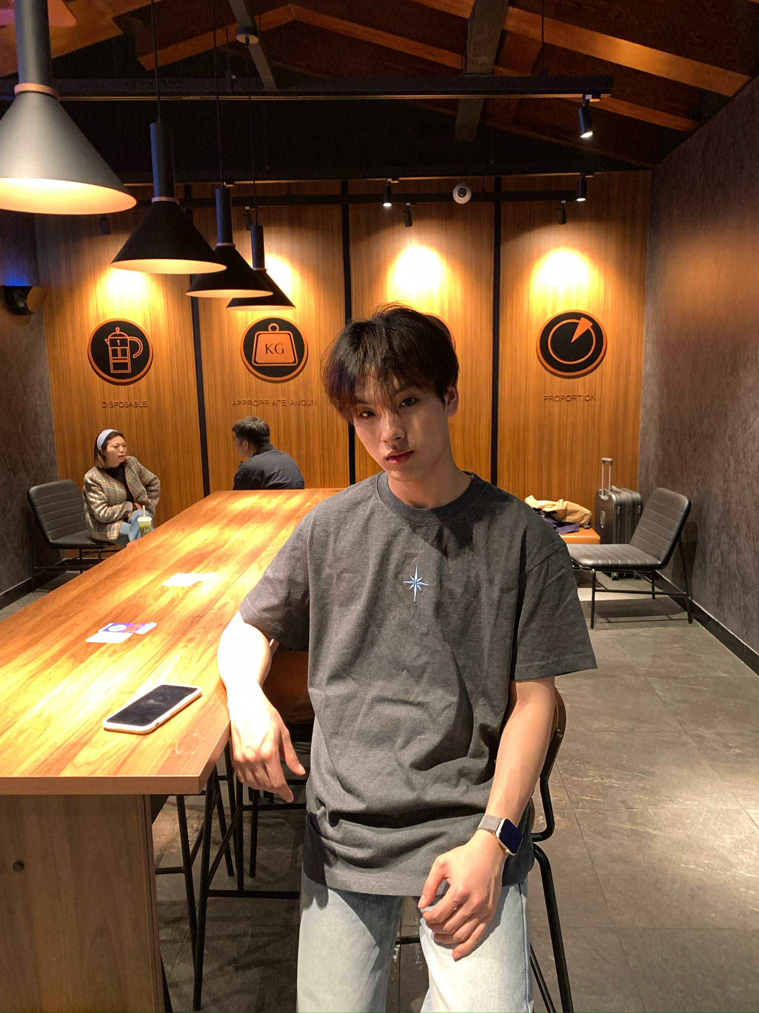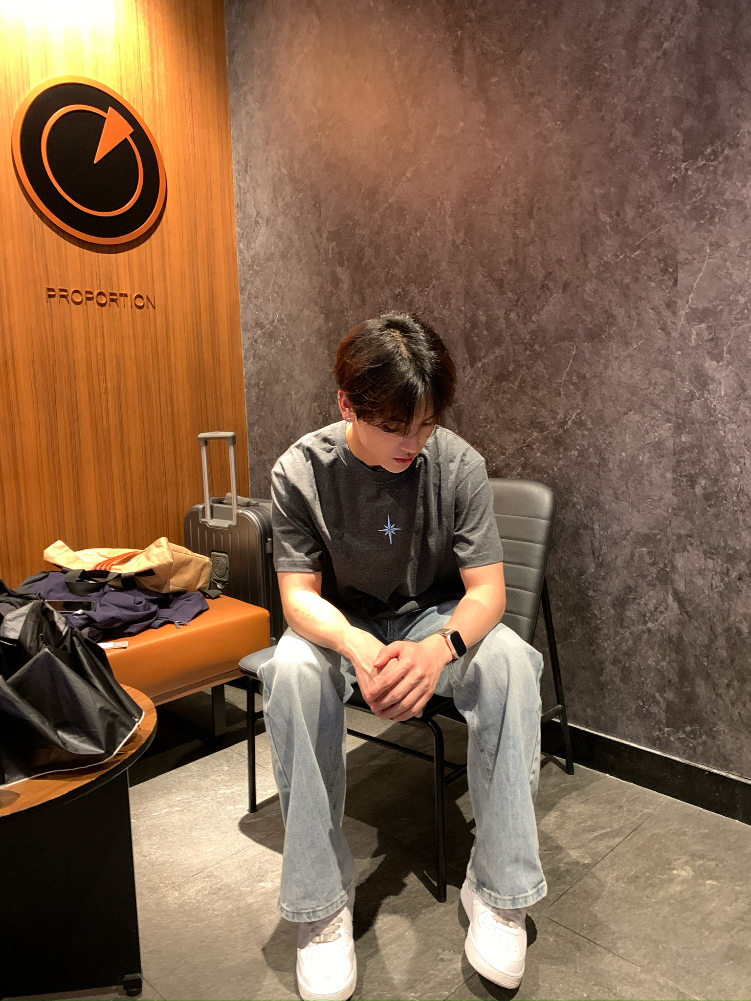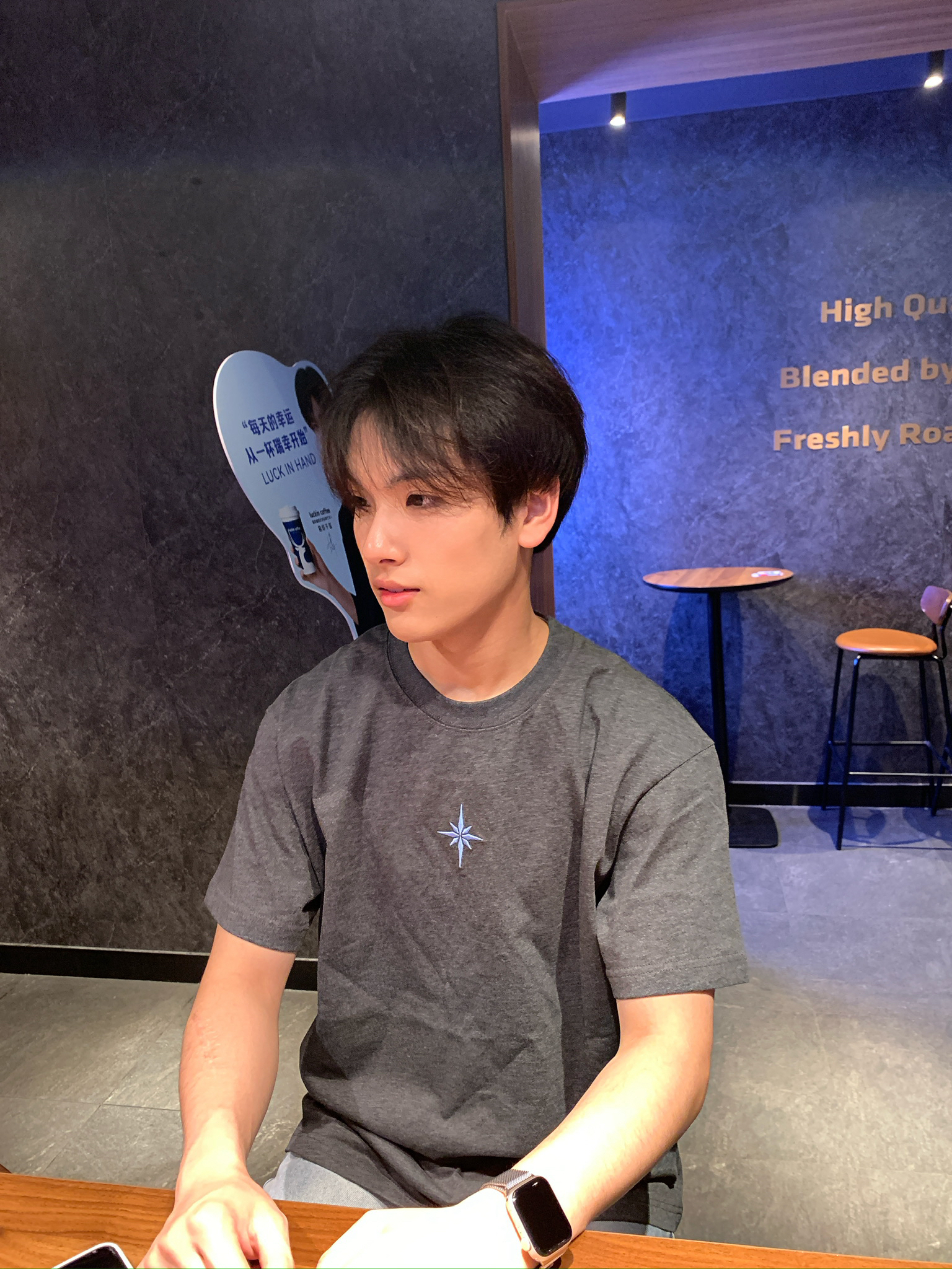 救命!这件深灰T恤直接焊在我身上了🤣 面料是那种有点厚度但又不闷的,夏天穿完全不热,深灰色也巨显瘦!胸口的星芒刺绣很精致,不会掉也不会扎人,搭个浅蓝牛仔裤就是韩系男主那味儿了,日常穿或者约会穿都合适,闭眼冲就完事!