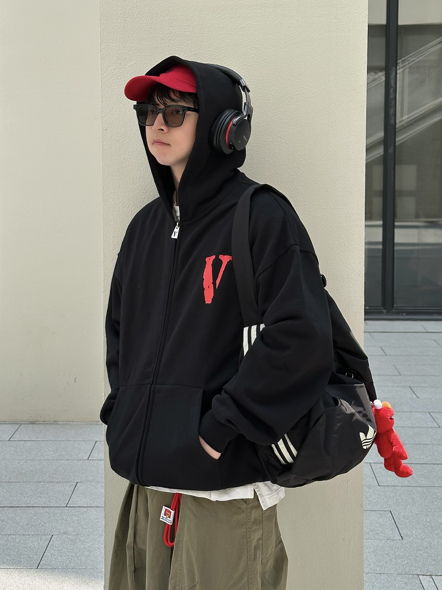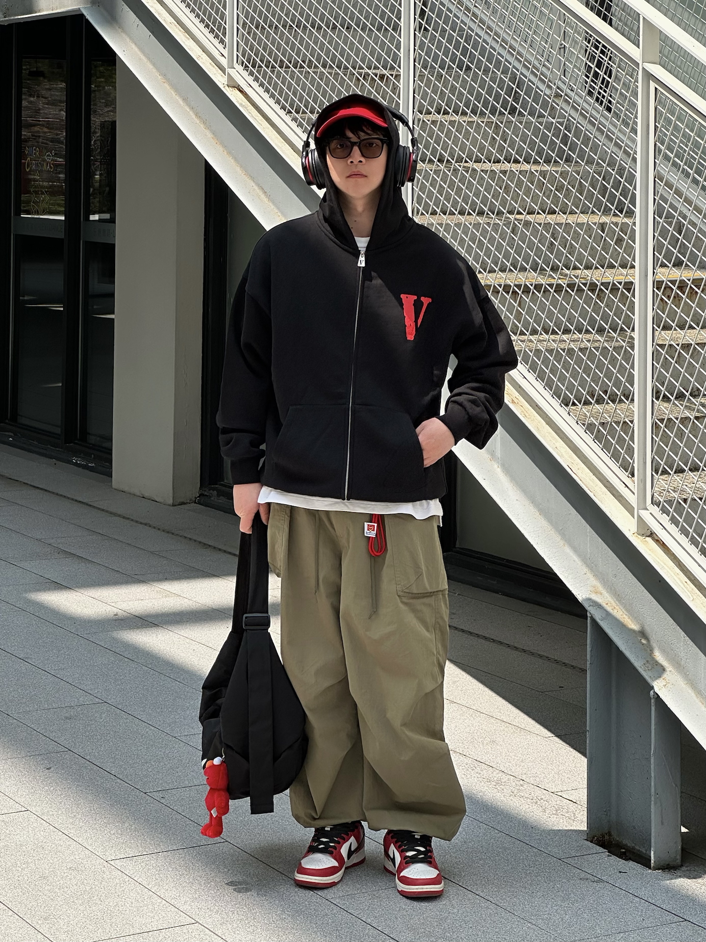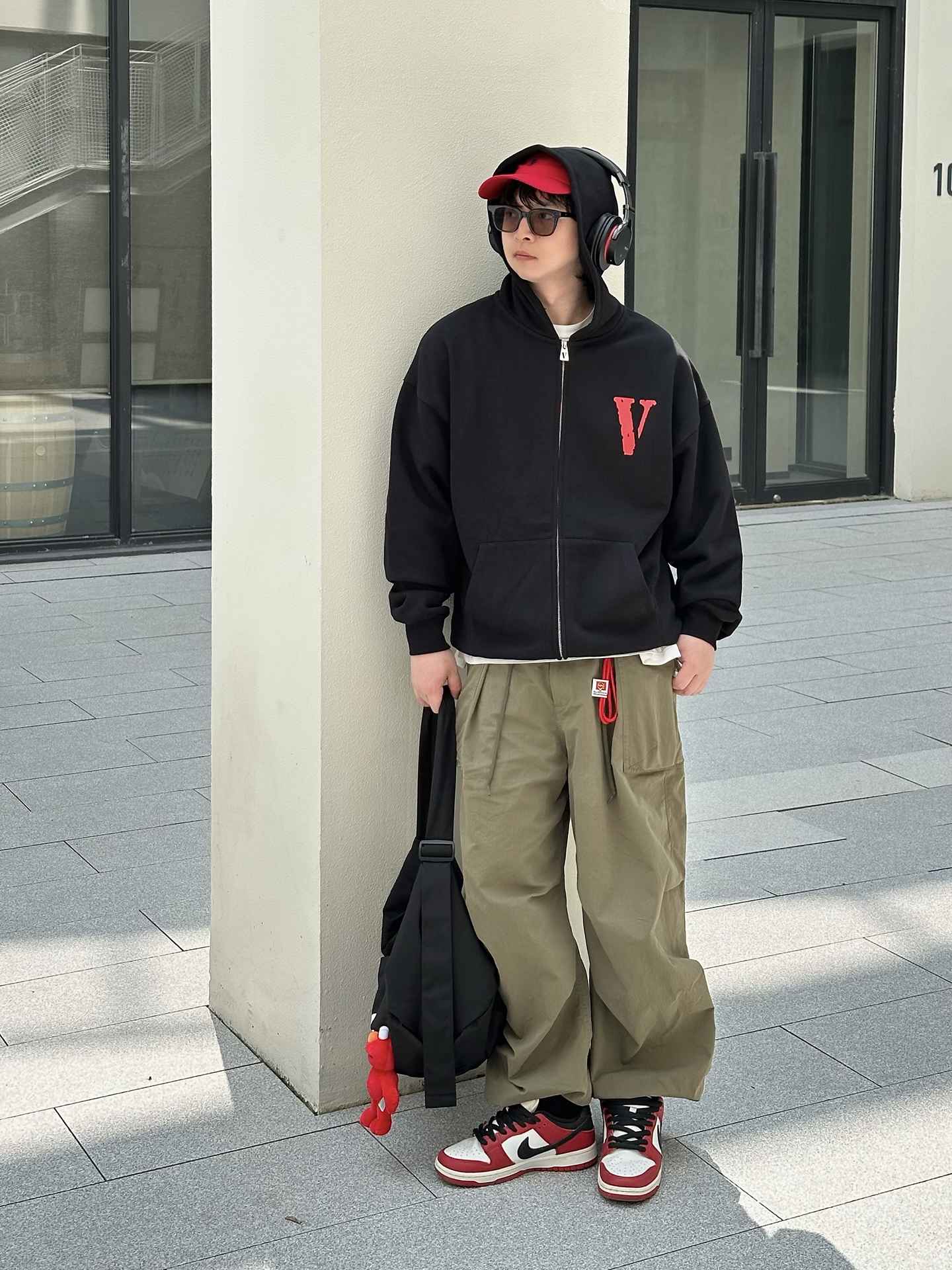 哈喽👋🏻大家好哇 这里是🪨石地夫的穿搭小日记📝 - 今日份美式街头ootd 上身 黑色V字拉链卫衣 正面红色V标➕背后经典VLONE印花 视觉冲击力拉满👀 oversize版型不挑身材✨ 内搭白T露出下摆,层次感get住🤏🏻 📏本人173,70kg穿L很合适☑️ 下装选了一条 军绿色宽松工装裤 阔腿裤型不紧绷 脚踩红黑白拼色 芝加哥sb dunk运动鞋👟 和上衣颜色呼应💡 整体色调统一...