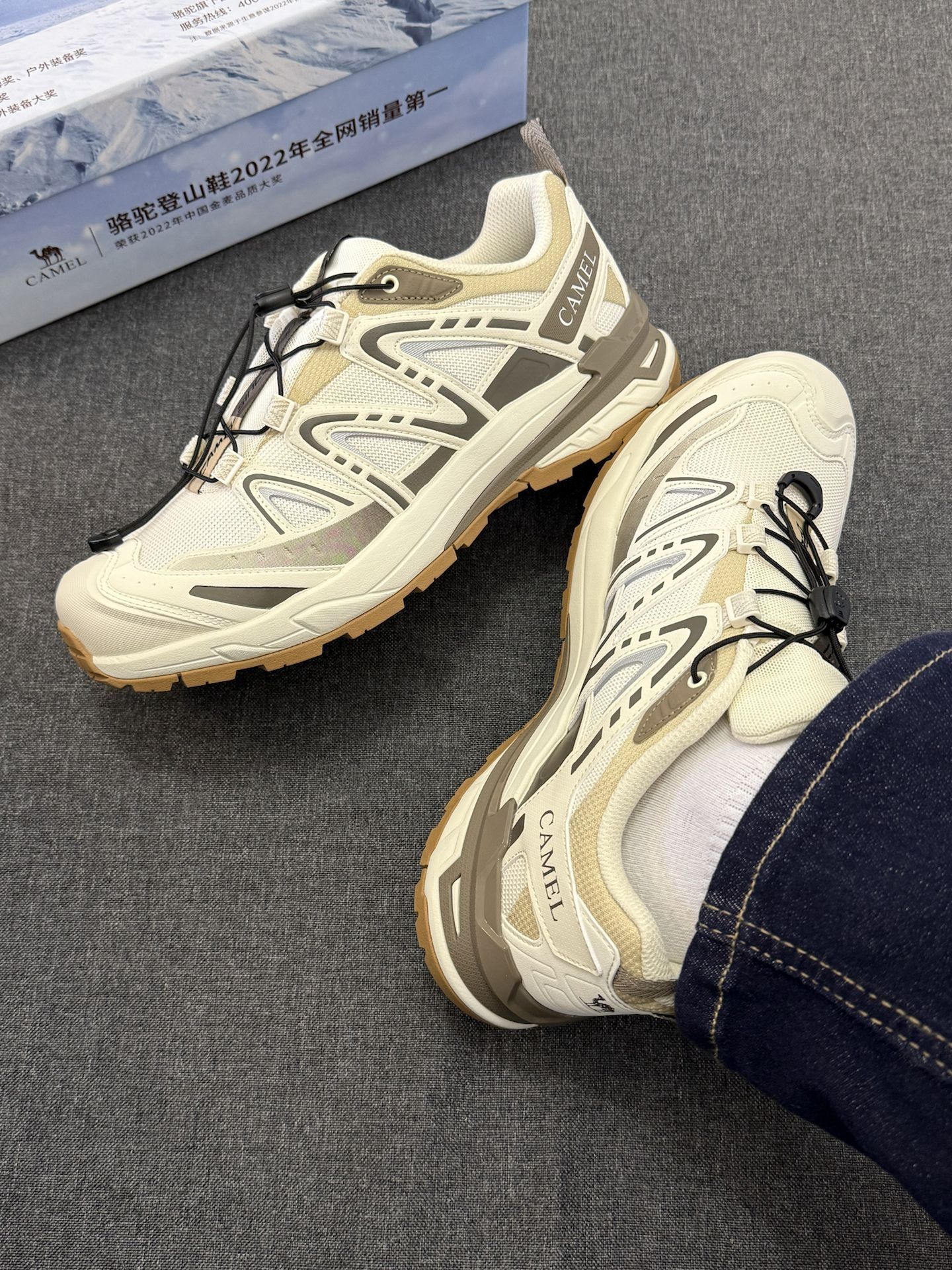 家人们!挖到宝了!骆驼这双登山鞋真的是今年挖到的最香的鞋! 奶fufu的米棕配色也太戳了吧!网面+拼接设计,上脚巨显脚小,完全不笨重! 自带的快穿鞋带太方便了,一脚蹬直接出门,懒人狂喜! 鞋底是防滑耐磨的生胶大底,抓地力超强,日常通勤、周末爬山徒步都能打! 网面透气不闷脚,春夏穿完全不闷汗,搭配牛仔裤、运动裤都巨好看! 骆驼的品质真的没话说,2022全网销量第一不是吹的,性价比直接拉满! 学生党、...