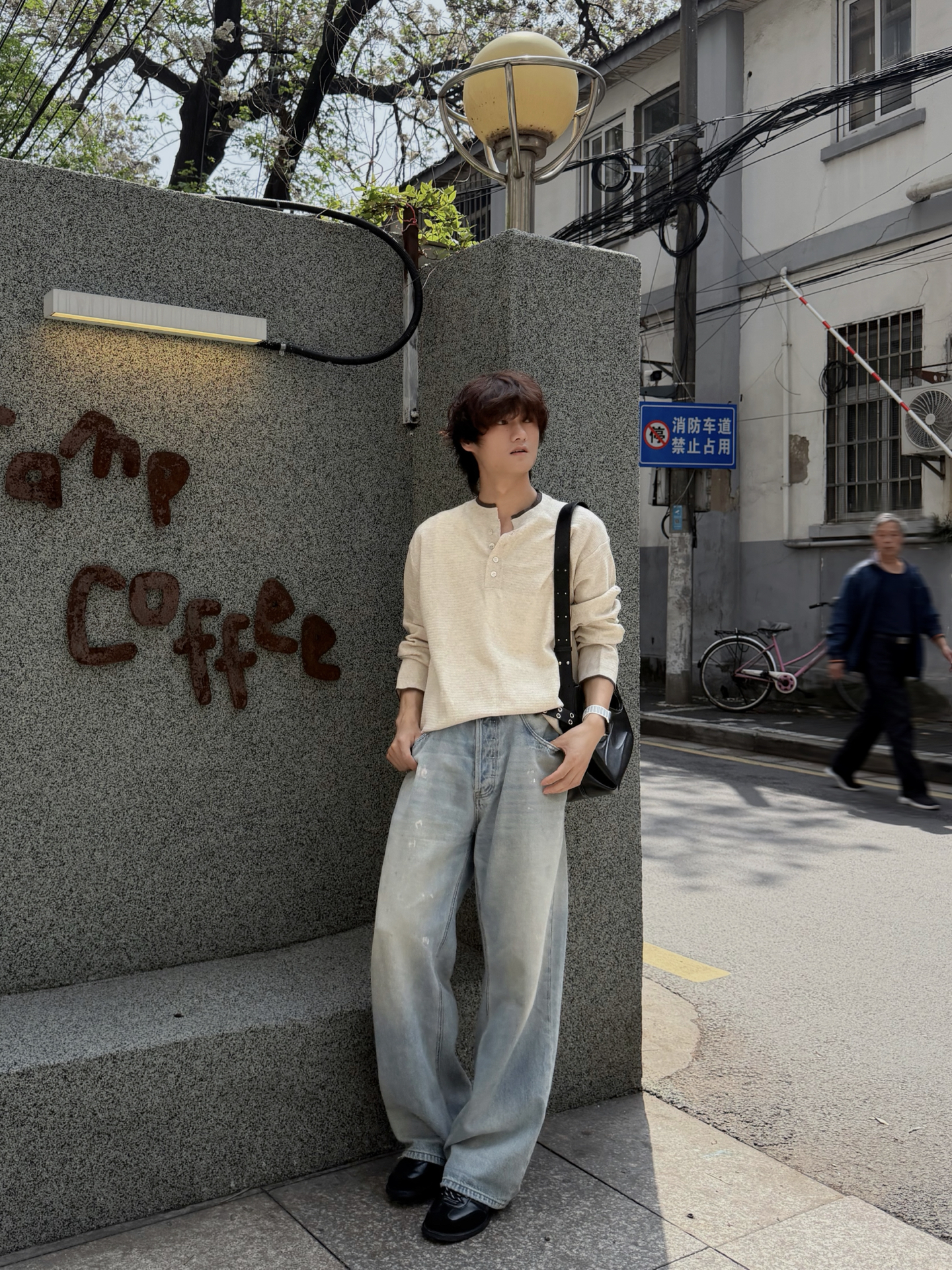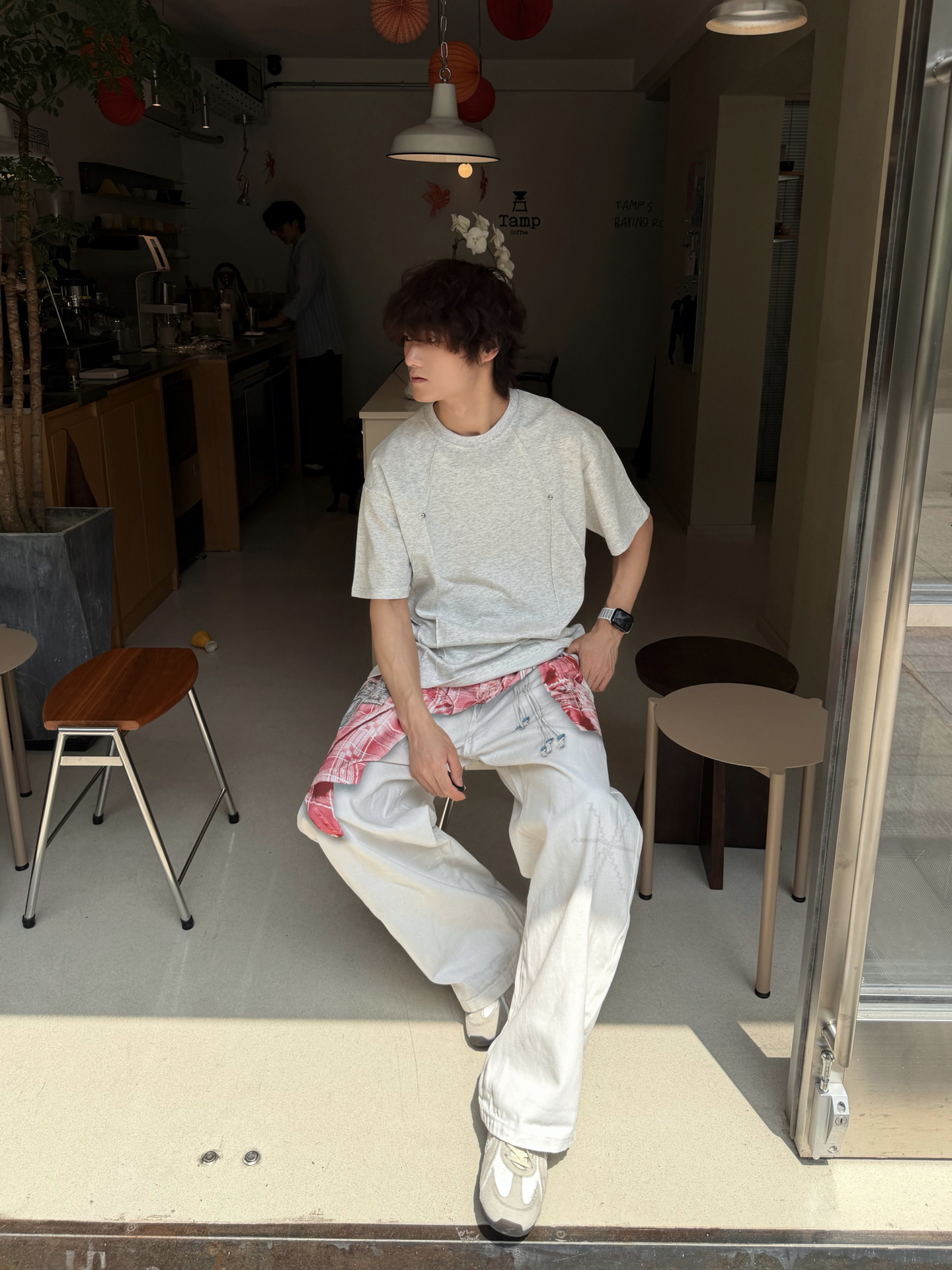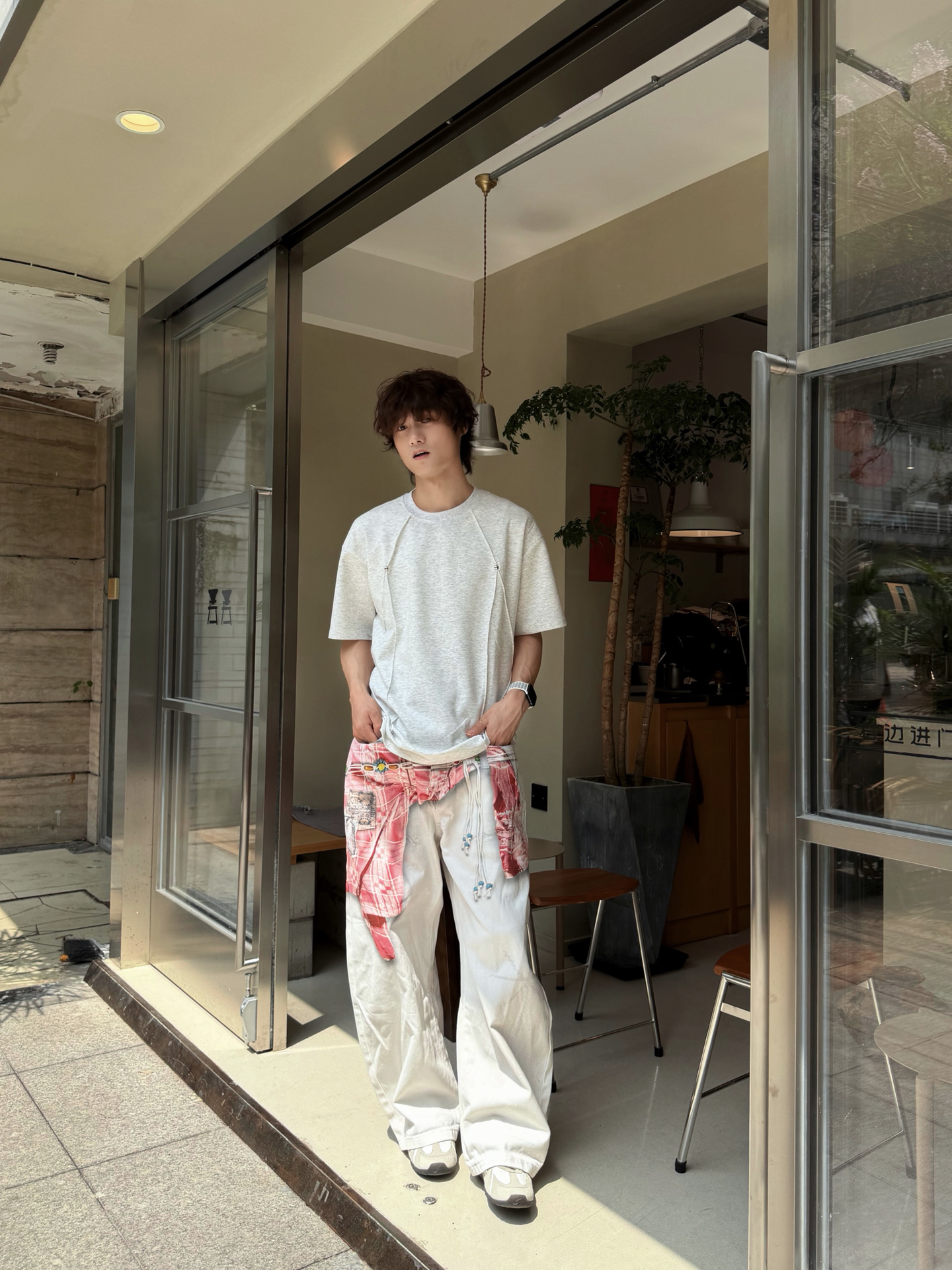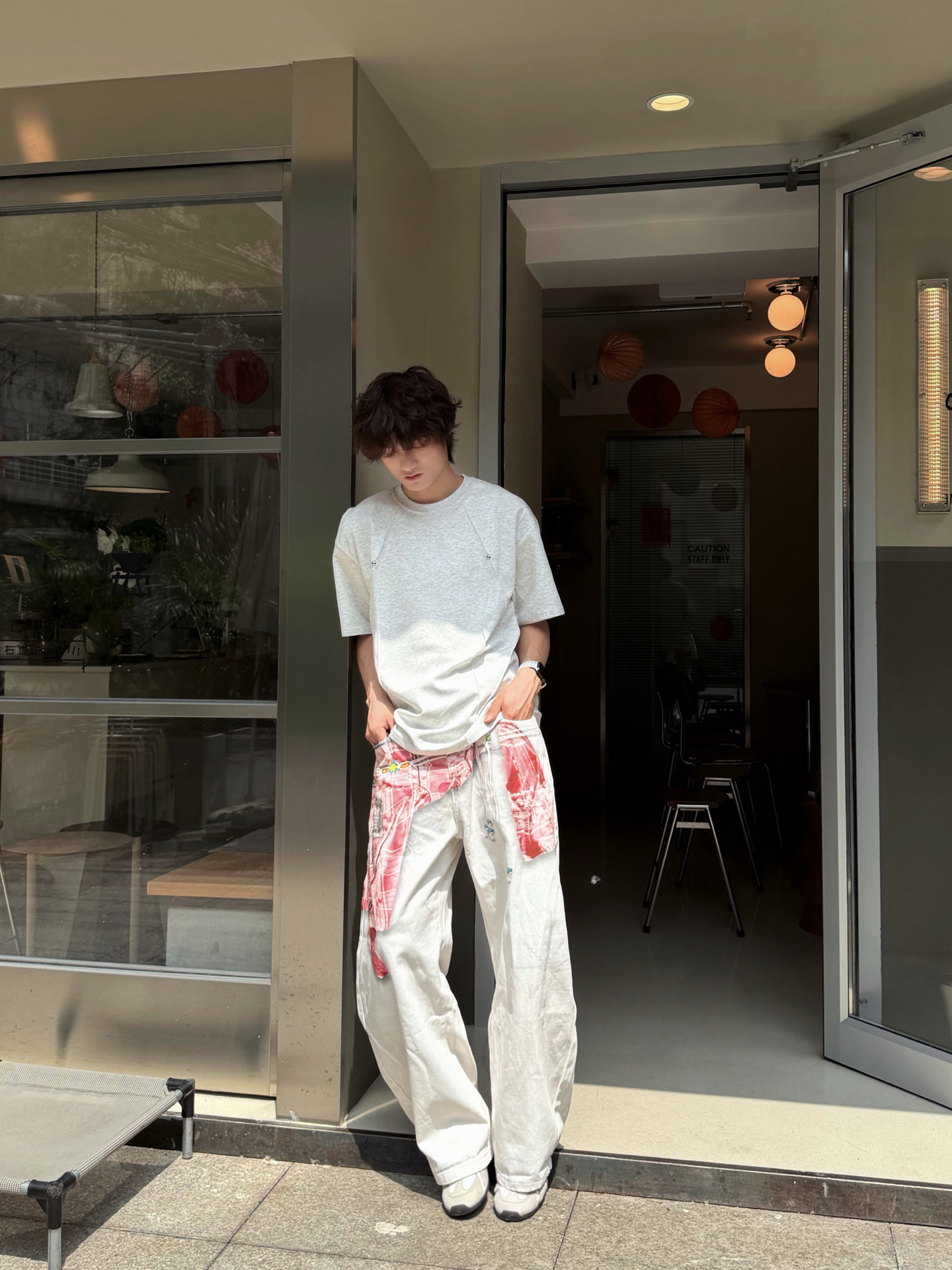 浅色系一套真的把春日氛围感焊在身上 基础T恤小众立体做工,面料柔软上身舒服,单穿内搭都好看 搭配做旧白工装阔腿裤松弛感拉满 咖啡店/街头随拍都很出片, 日常通勤、出门逛街都适配,懒人穿搭福音😆