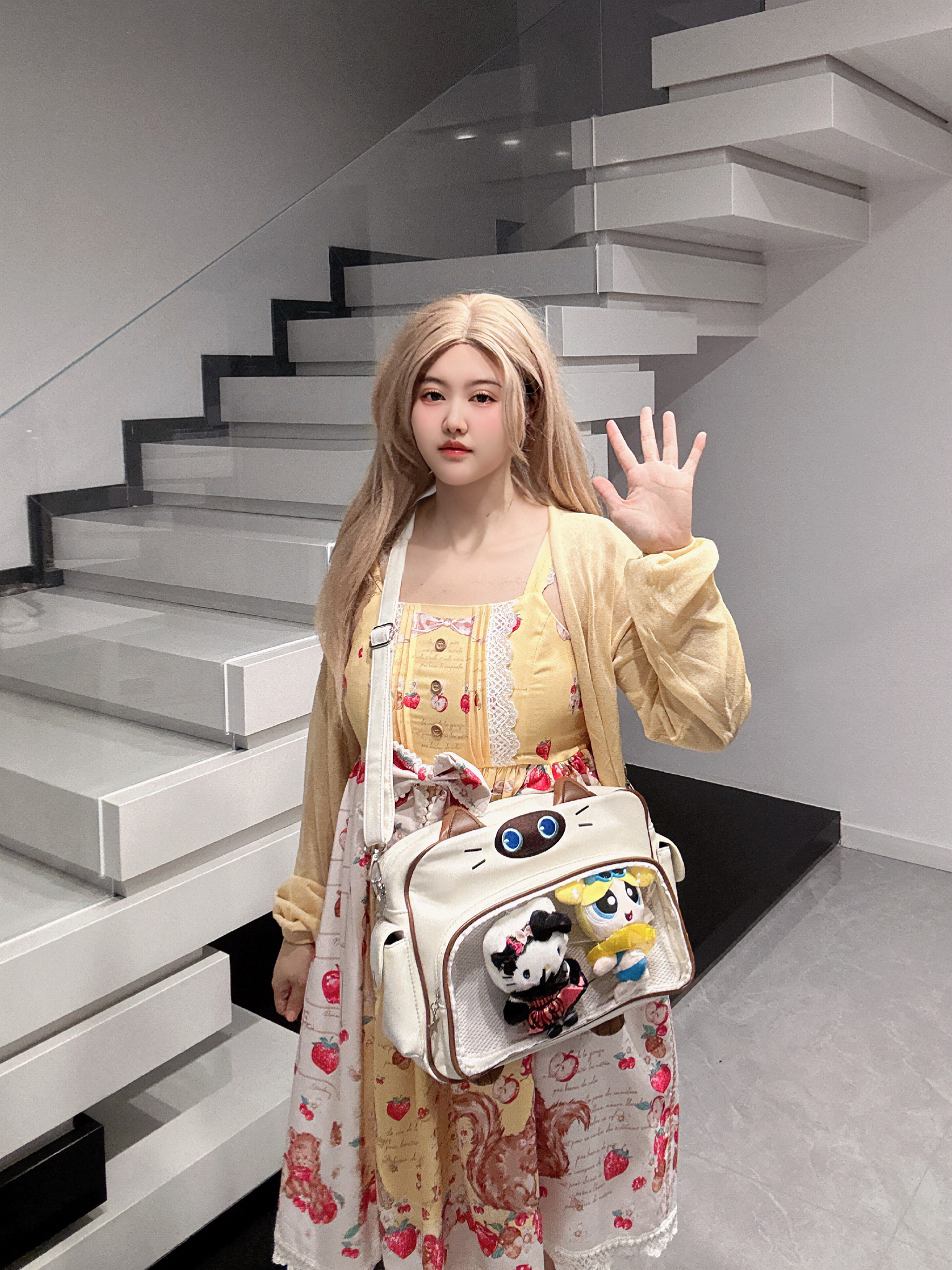 痛包发明者简直不要太聪明!! 既能自己diy可以吧自己的娃娃展示出来! 又可以堪称时尚单品💖 每次挎着出门心情都贼好, 他整天是小猫猫造型面料超好, 挎着舒服又吸睛! 追星妹二次元尊嘟拒绝不了~