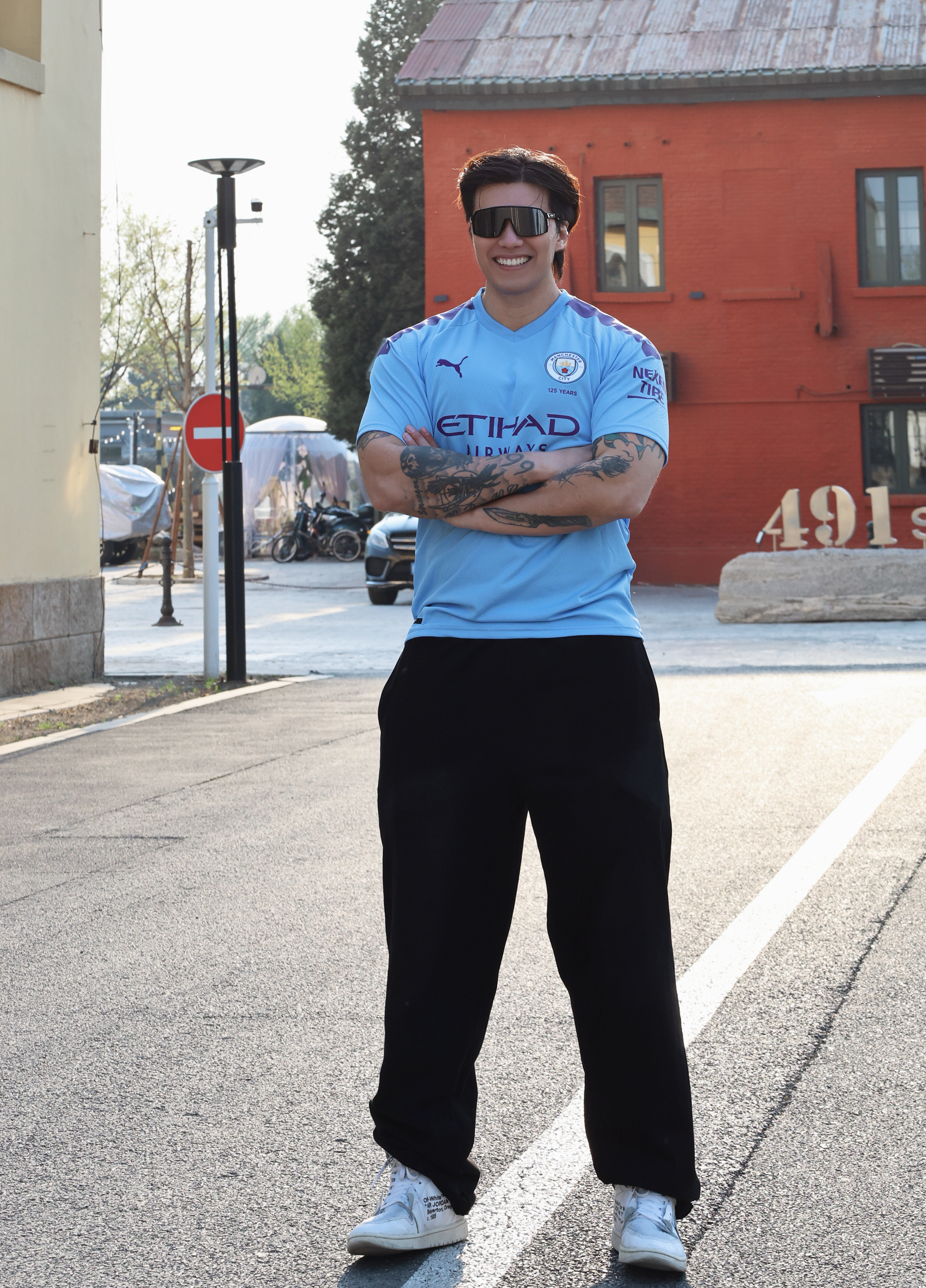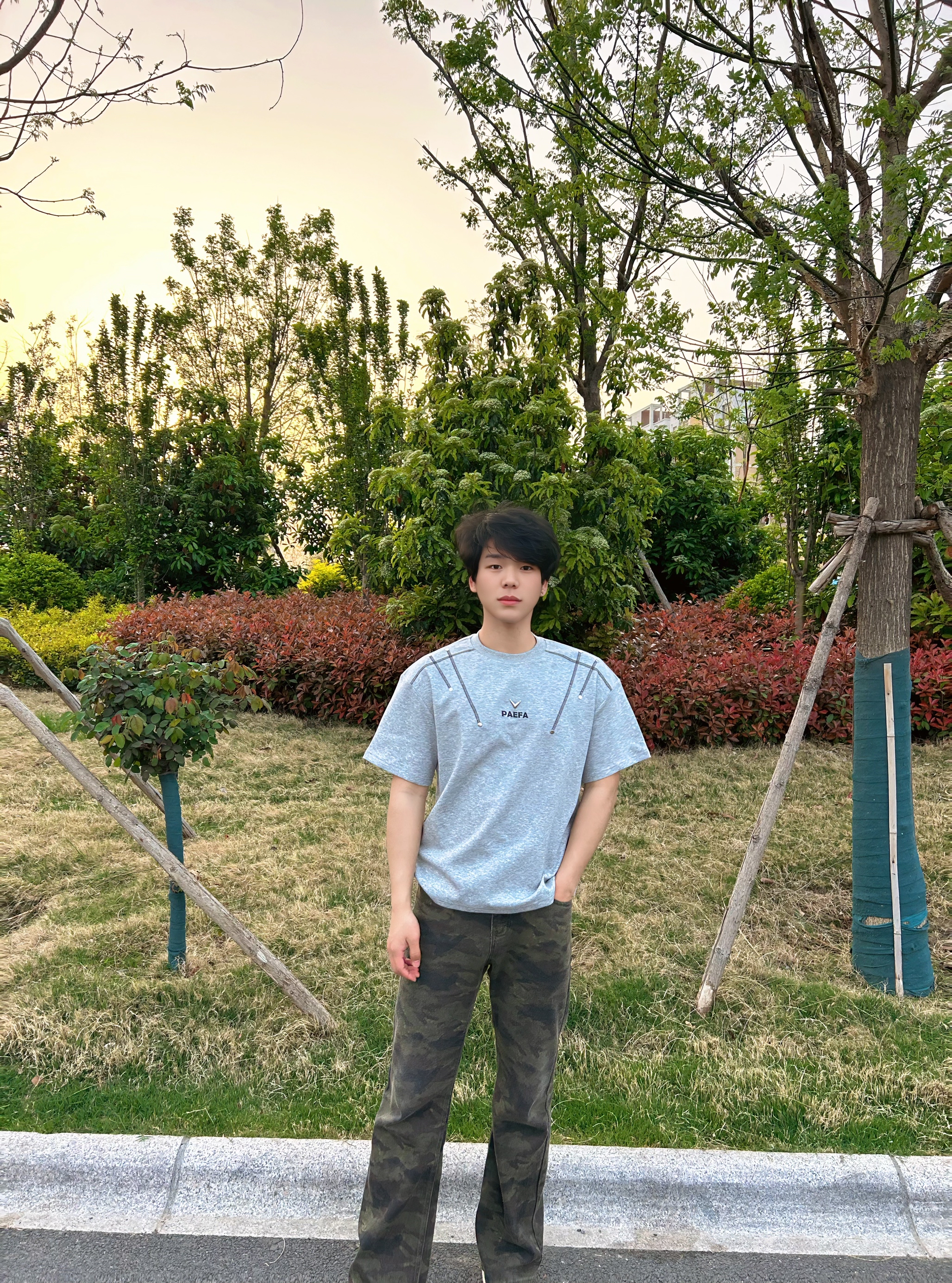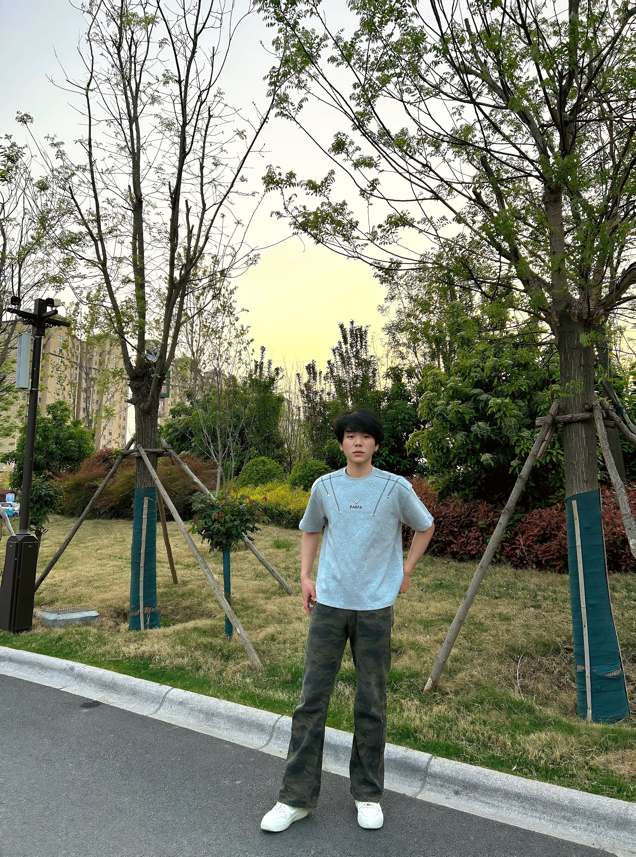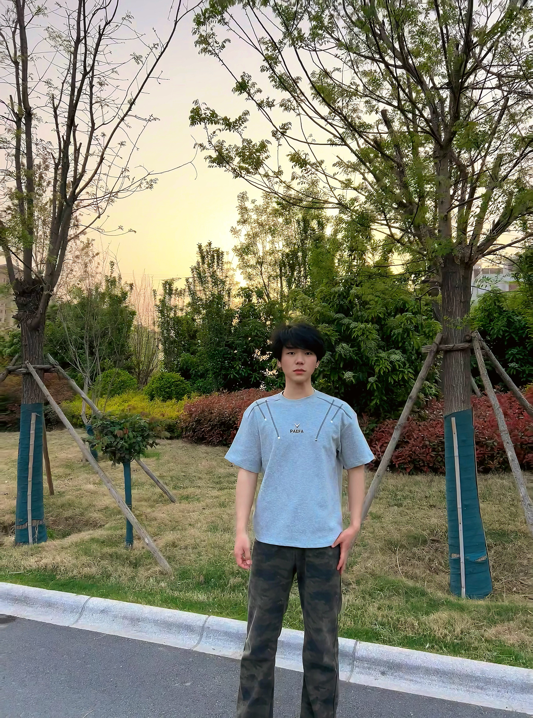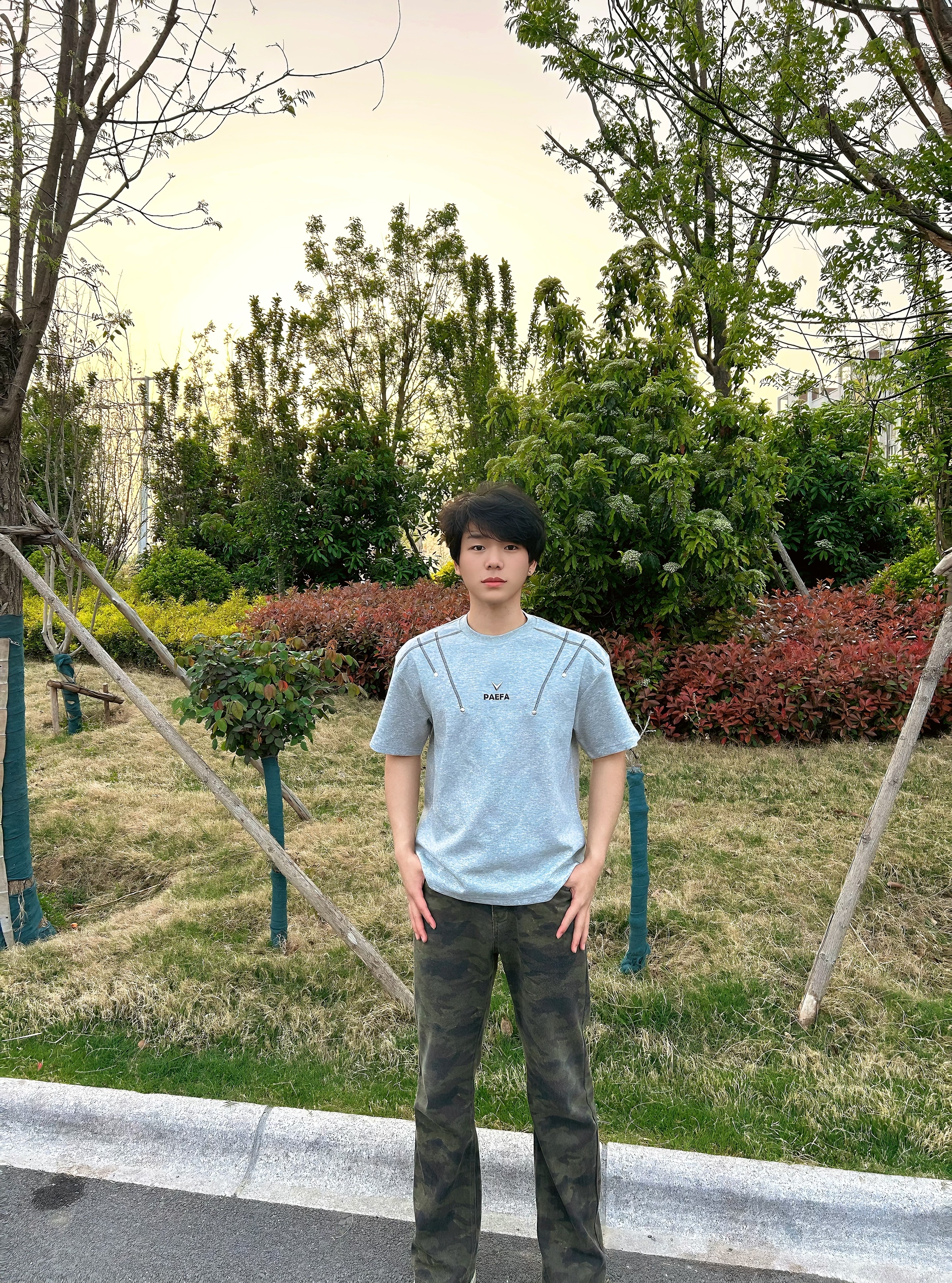 上身这件浅灰色短袖,面料亲肤透气,日常穿完全没有束缚感。领口的线条干净利落,胸前的小字母和线条设计很有细节感,简约又不单调,随便搭都很出彩。