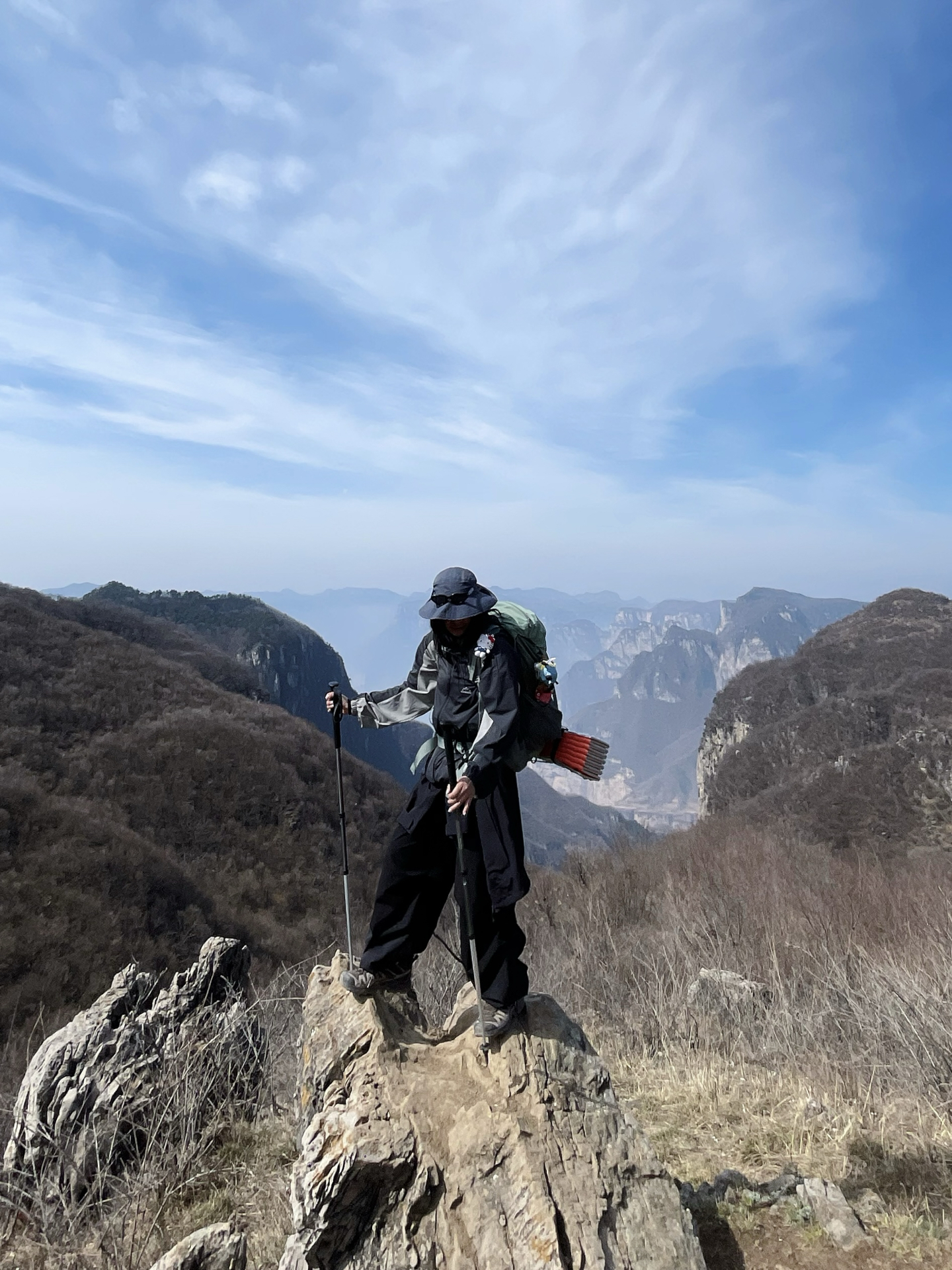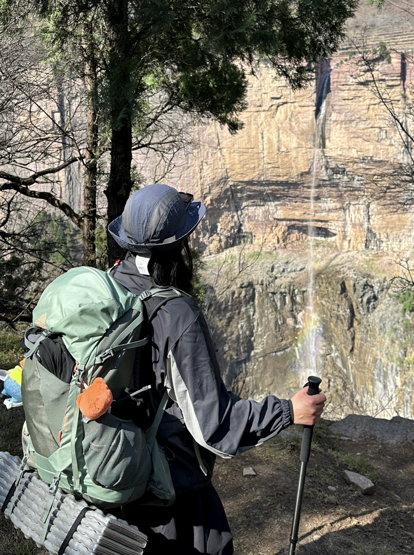 南太行徒步的正确打开方式! 黑灰机能风冲锋衣+速干裤,透气不闷汗 宽檐渔夫帽+墨镜 全方位防晒不晒黑~ 换了个格里高利琥珀登山包 背负真不错 这次重装出行走完全程都不怎么累! 在悬崖边看瀑布、在山巅拥抱云海 穿搭舒服又出片,徒步党直接抄作业