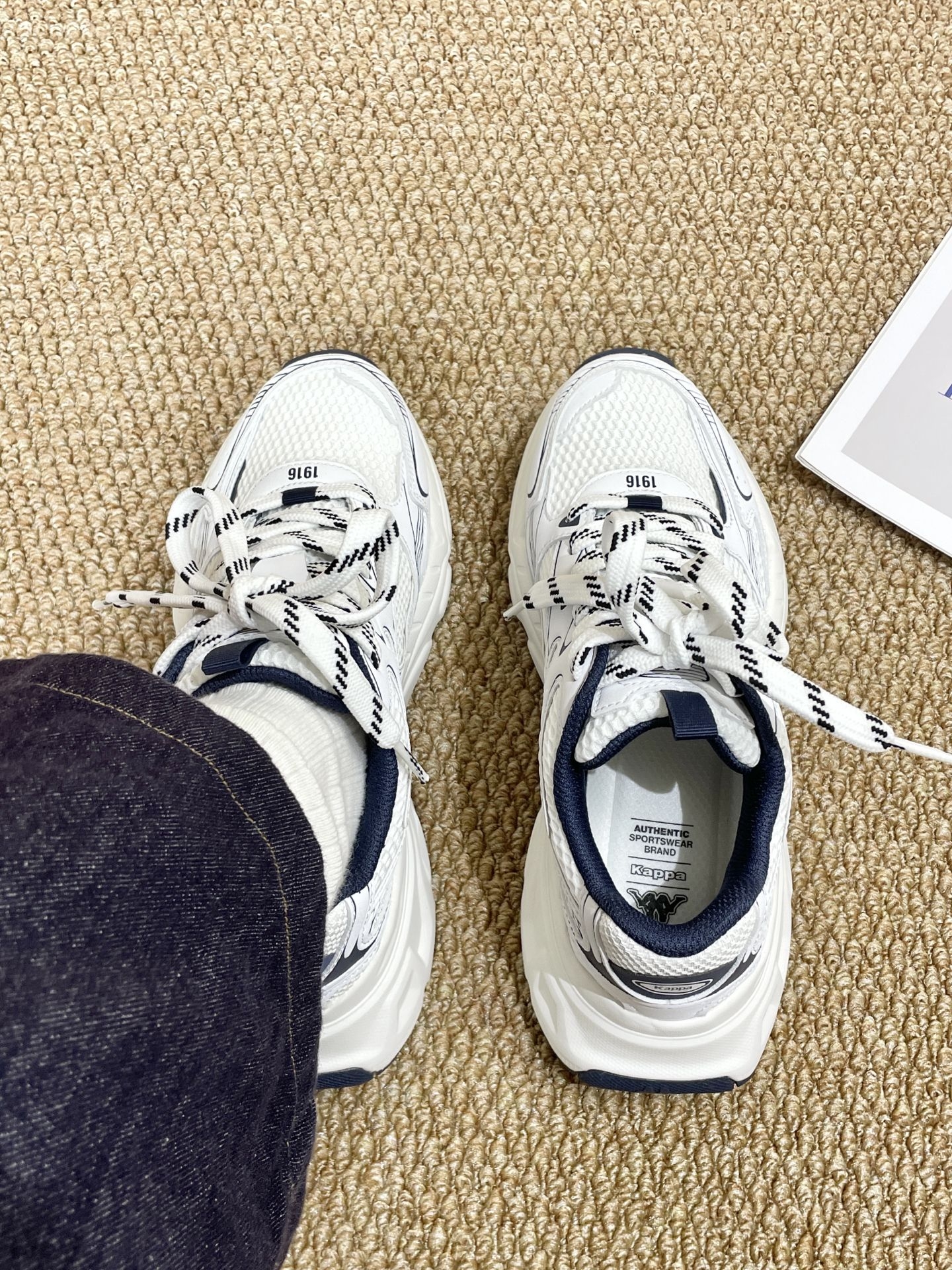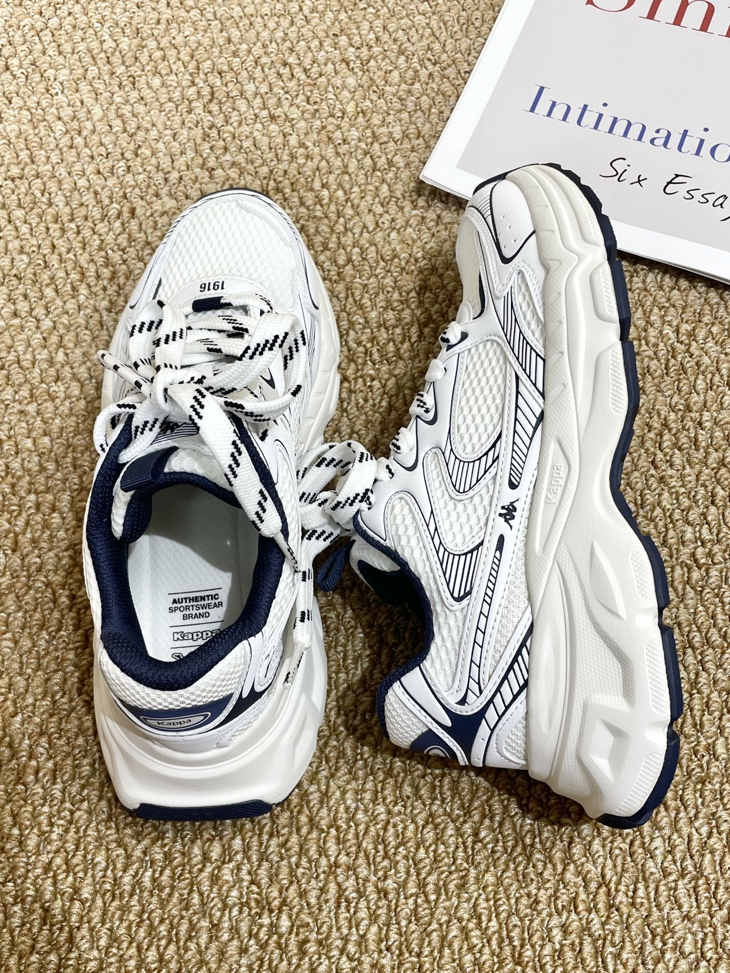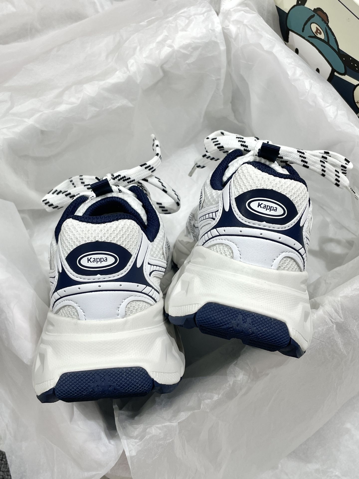 奶白+藏青的撞色也太绝了!经典背靠背logo,复古千禧感直接拉满,甜酷女孩直接拿捏 大网眼鞋面超透气,夏天穿完全不闷脚,上课赶课、操场跑步、周末citywalk暴走一天都干爽 厚底设计直接隐形增高4cm+,小个子秒变漫画腿,显腿直绝了! 宽鞋带设计超有辨识度,上脚巨显脚小,完全不笨重 搭牛仔裤、运动裤、百褶裙、工装裤都巨好看,衣柜里所有衣服都能搭 Kappa老牌子品质超稳,百元价位就能get的快乐...