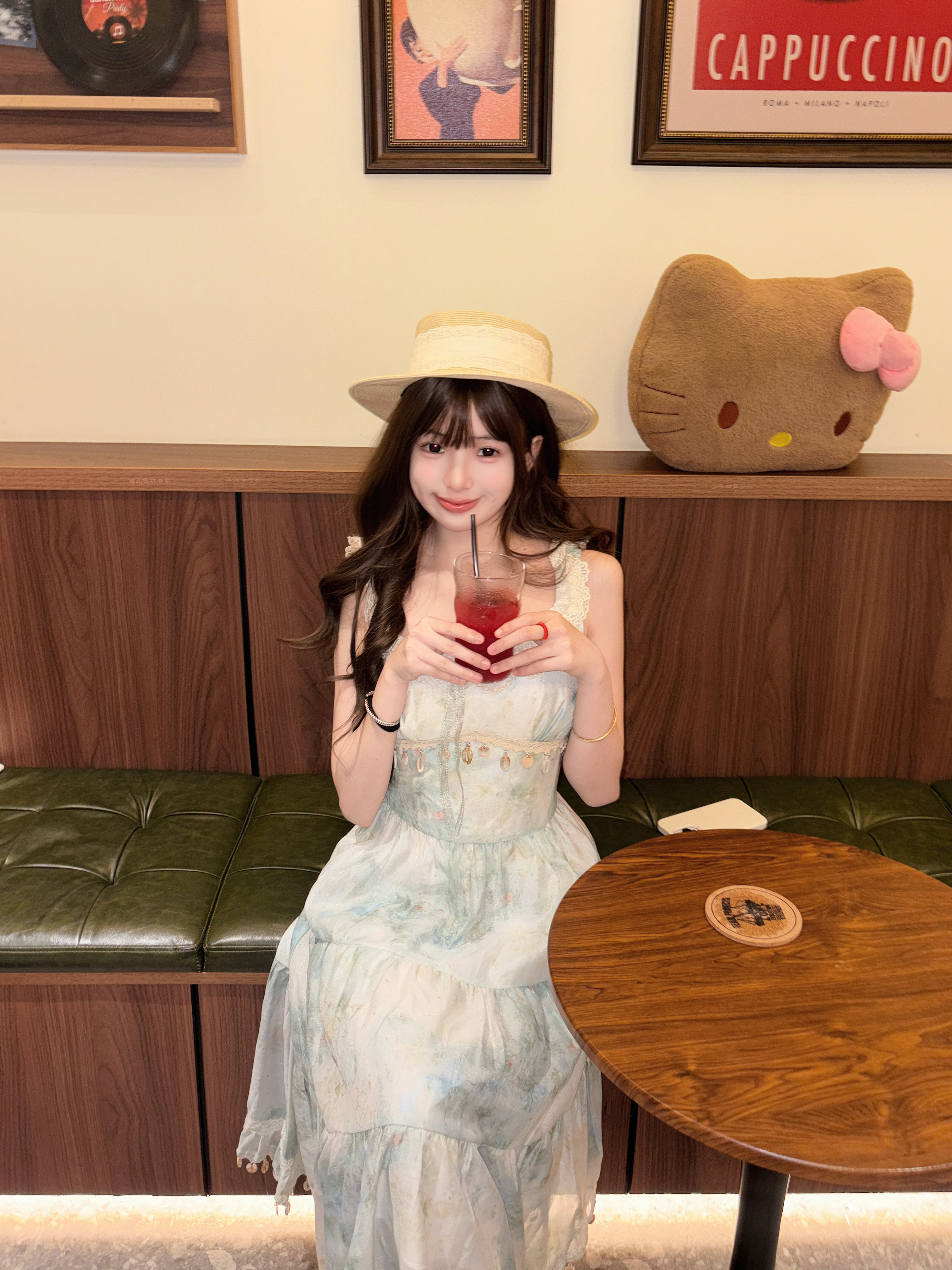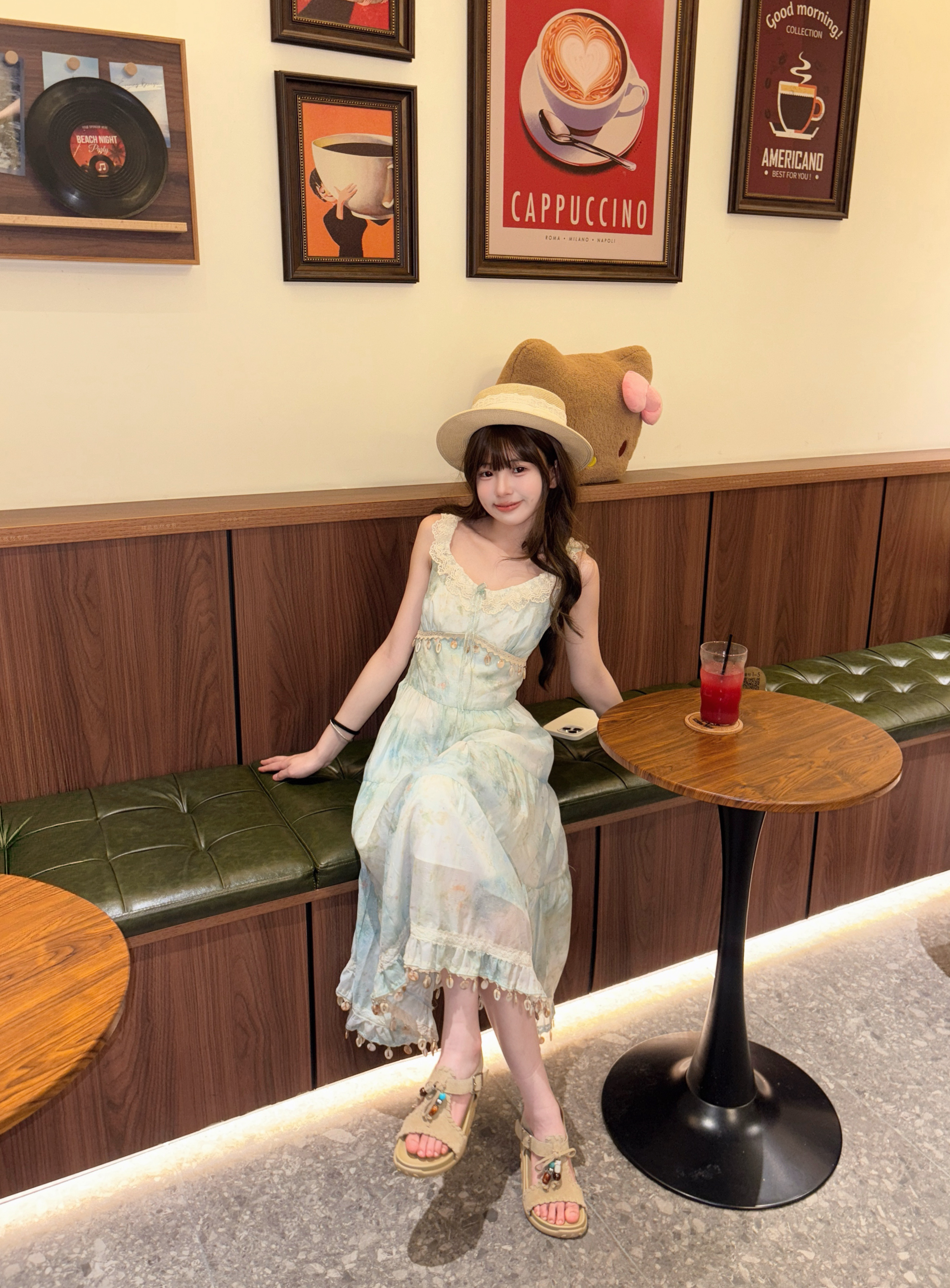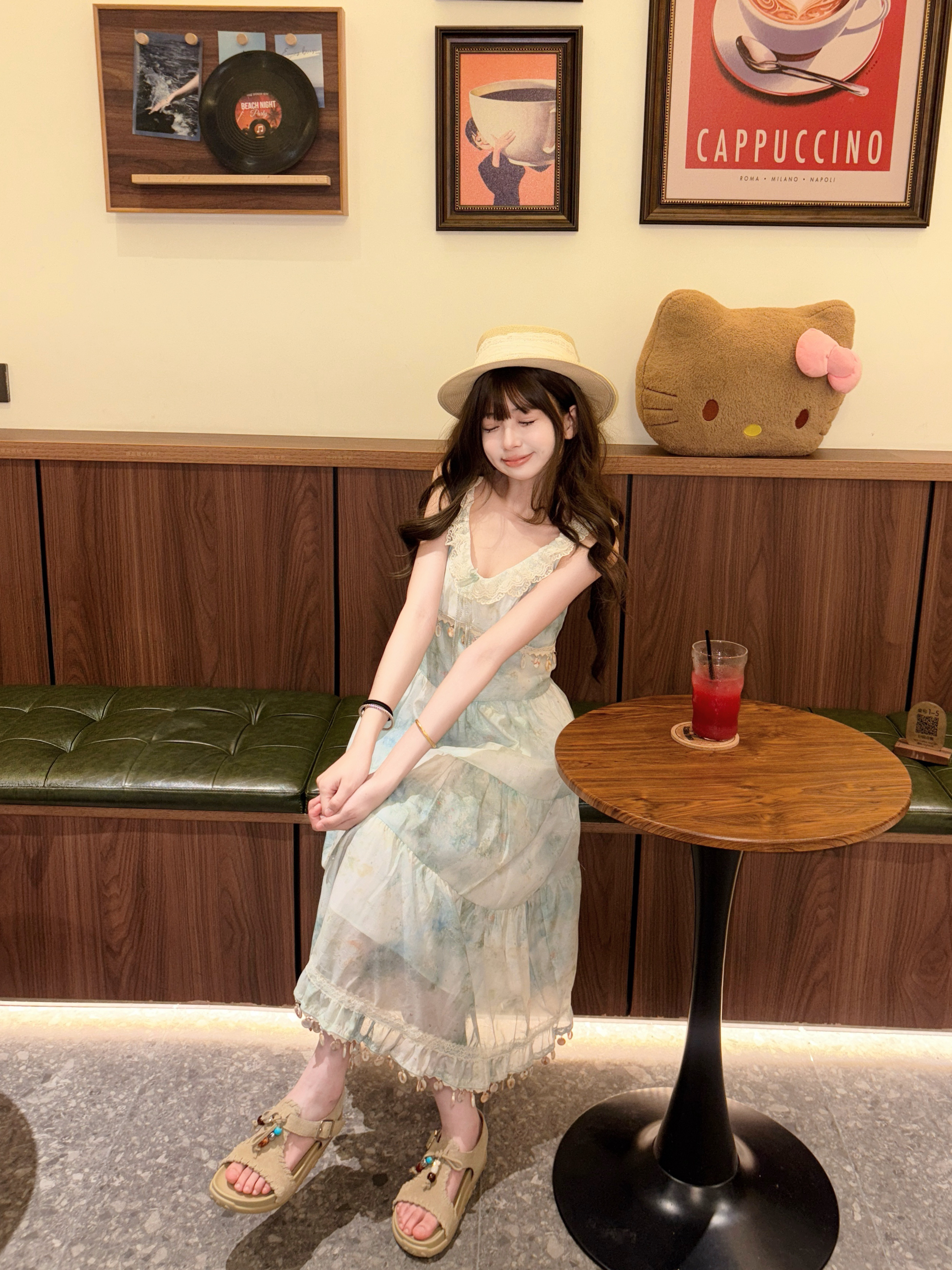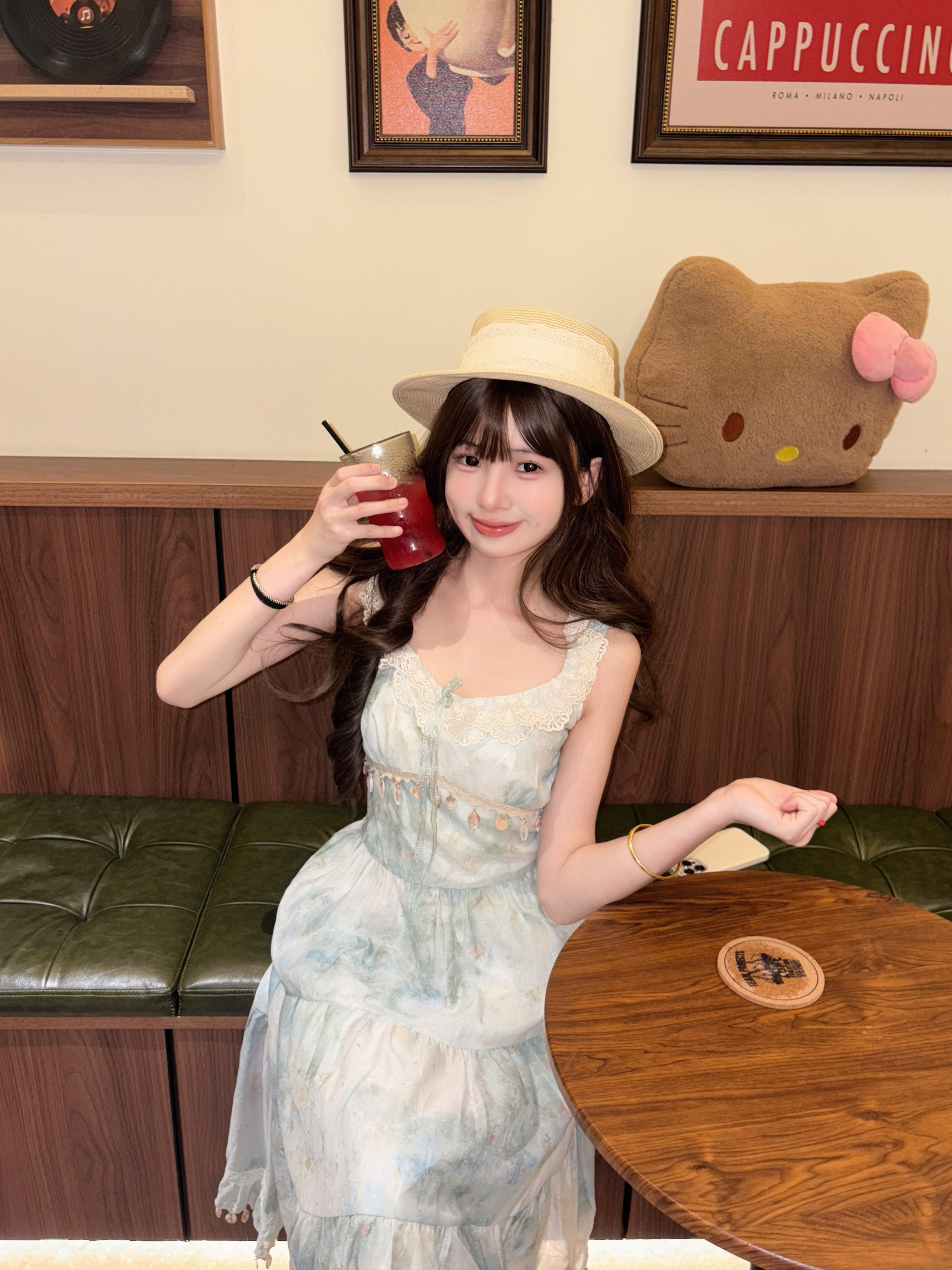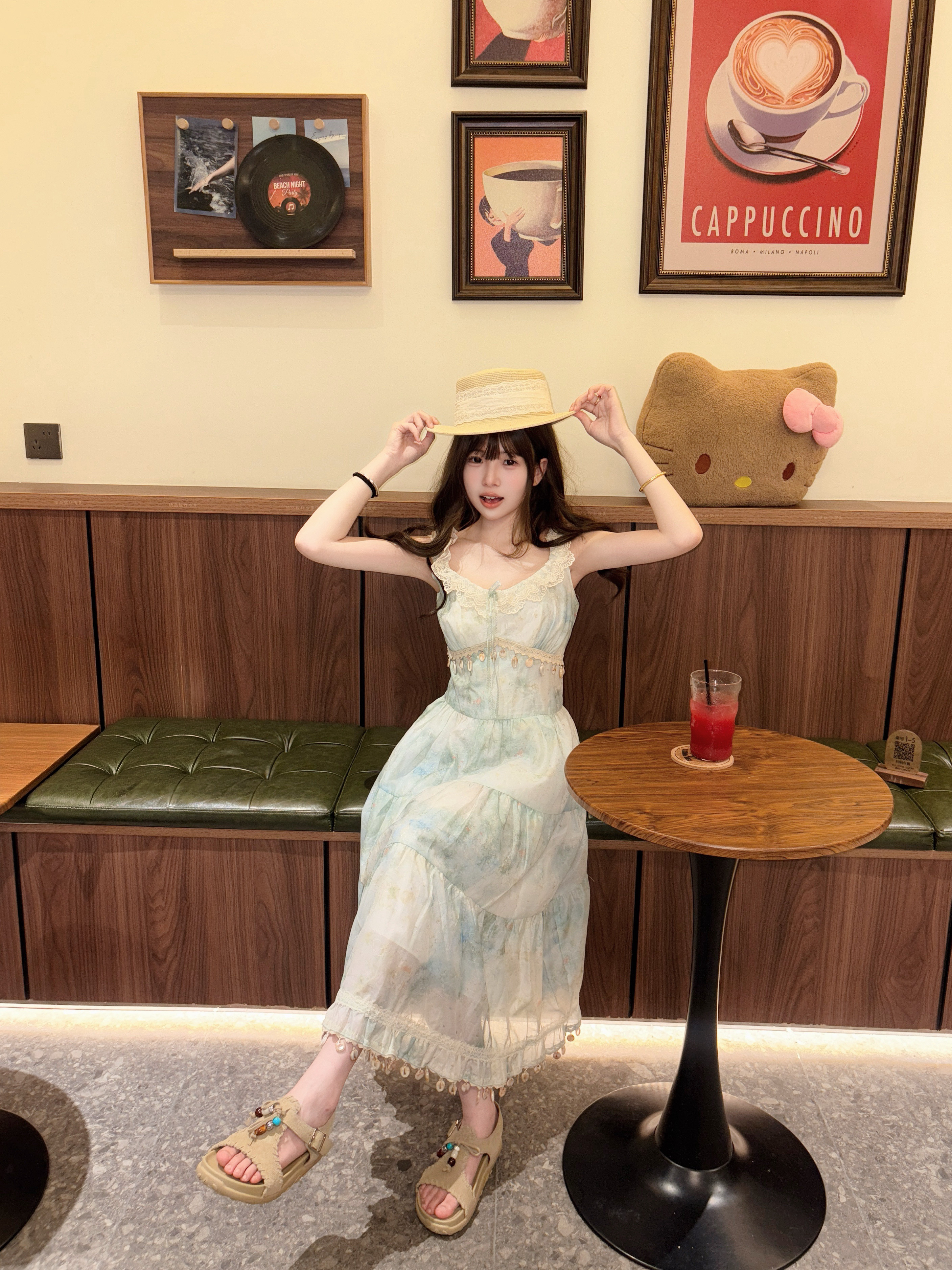 是连风都舒服的季节🍃要像风一样自由 Ps: 裙子真太好看了 薄荷绿晕染吊带裙太绝了 贝壳🐚和流苏元素真的度假风拉满啦~ 咖啡厅拍照都出片别说海边啦🌊