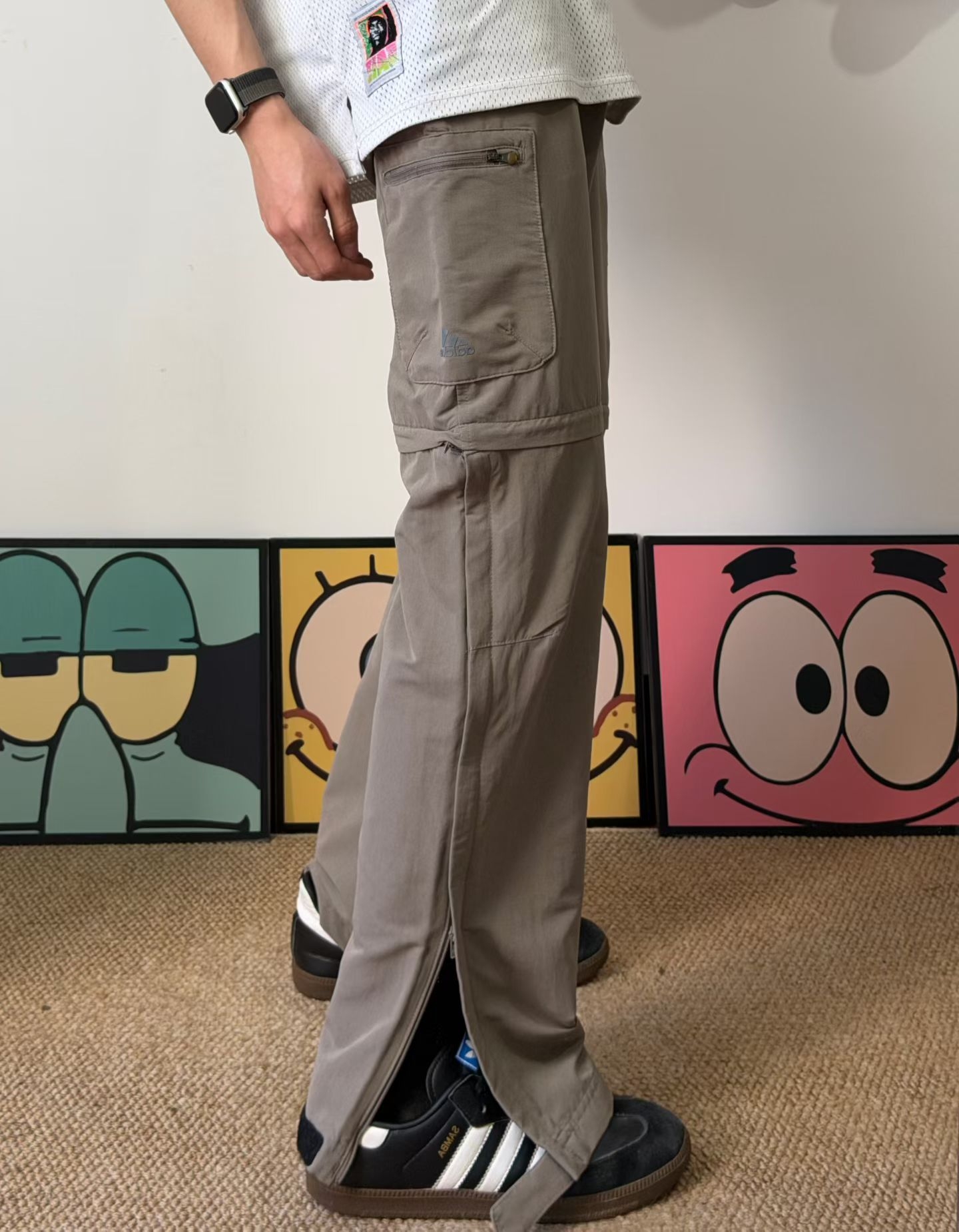 膝盖那里做了立体剪裁,蹲下走路不绷着。 两边大口袋很能装。面料防风、防泼水,还透气速干,耐磨不怕刮。 平时上班或者周末爬山露营都能穿,随便配个T恤或冲锋衣就挺好看。