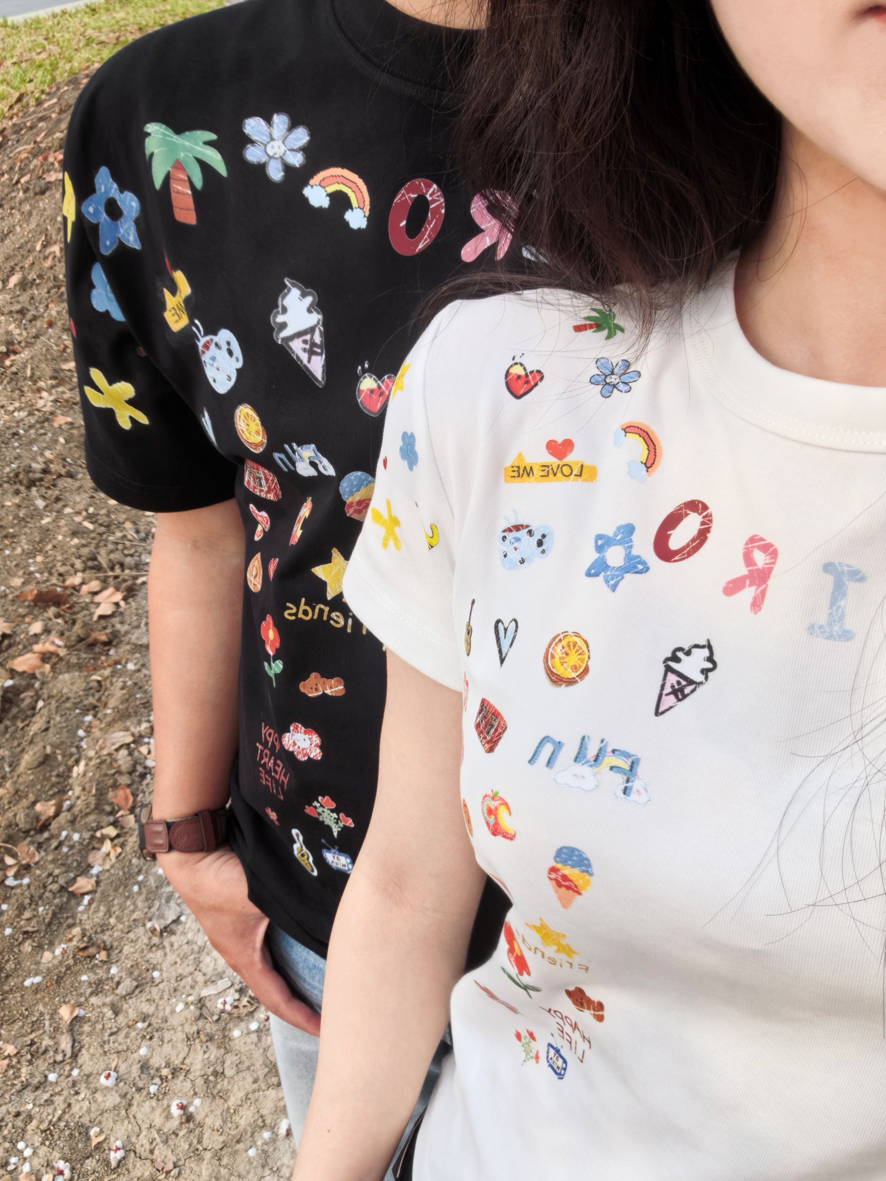 家人们 夏天真是穿情侣装的好时候 最近到手了这套情侣装 真得太好穿了 版型很喜欢 超级合我的身 女生身高165110斤穿得m码 男生身高169140斤 穿得码 大家可以做个参考 黑T白T各有各的好看 满印小图案又甜又有设计感 不撞款还藏着小心思 校园里回头率直接拉满! 日常出街、操场约会都适配 情侣氛围感这不就拿捏了嘛