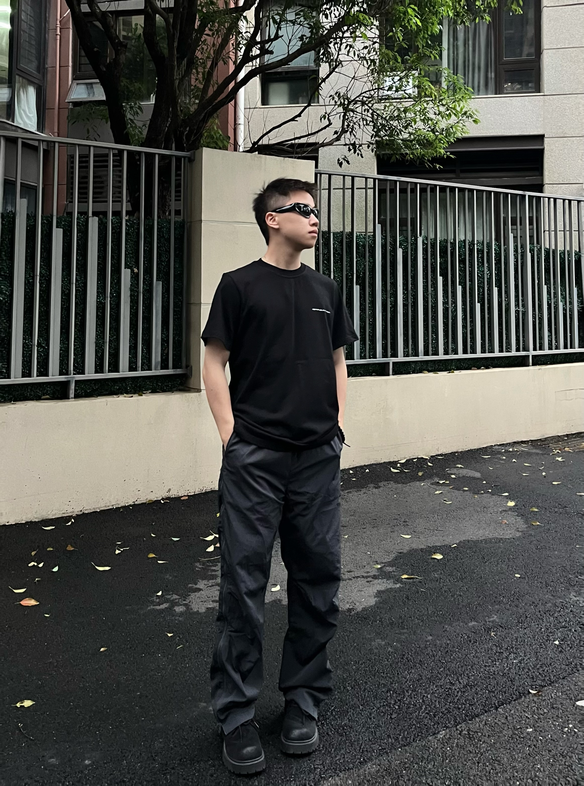 Off-Duty无界穿搭美学分享来啦!主打极简机能+松弛随性,打破场景边界,适配通勤、citywalk、轻运动等多场景。 • 上衣:黑T后背字母印花短袖,胸前小标+后背赛博风字母+蓝标设计,低调又有细节感,宽松落肩版型慵懒随性,是Off-Duty穿搭的灵魂单品。 • 下装:深灰垂感工装阔腿裤,立体剪裁+多口袋设计,宽松版型修饰腿型,垂坠感面料舒适透气,兼具休闲感与实用性,完美呼应无界穿搭的松弛...