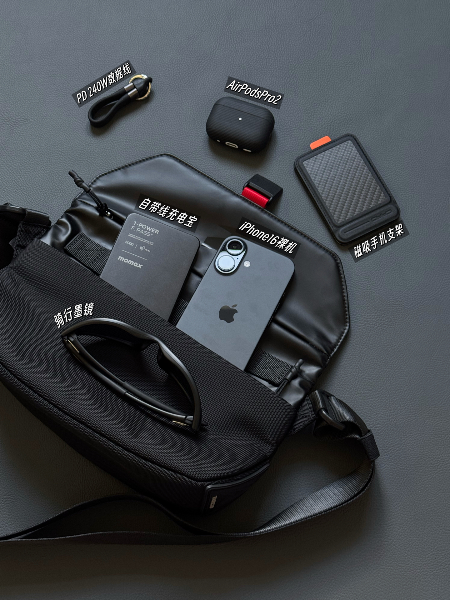 Every Day Carry, What's in my bag? - 一直想找个磁吸不充电但自带线的充电宝, 分享自用磁吸自带线+3C+铝合金材质的充电宝 我挑数码都是以产品设计+实用性平等的原则! - 🔘「EDC/数码装备」👇 ◼「2.5升MINI斜跨包」 刚好放下日常必需的数码小物,极简通勤的好搭子。 - ◼「iPhone 15PM + iPhone 16」 日常主力机拍摄剪辑+工作兼商务...