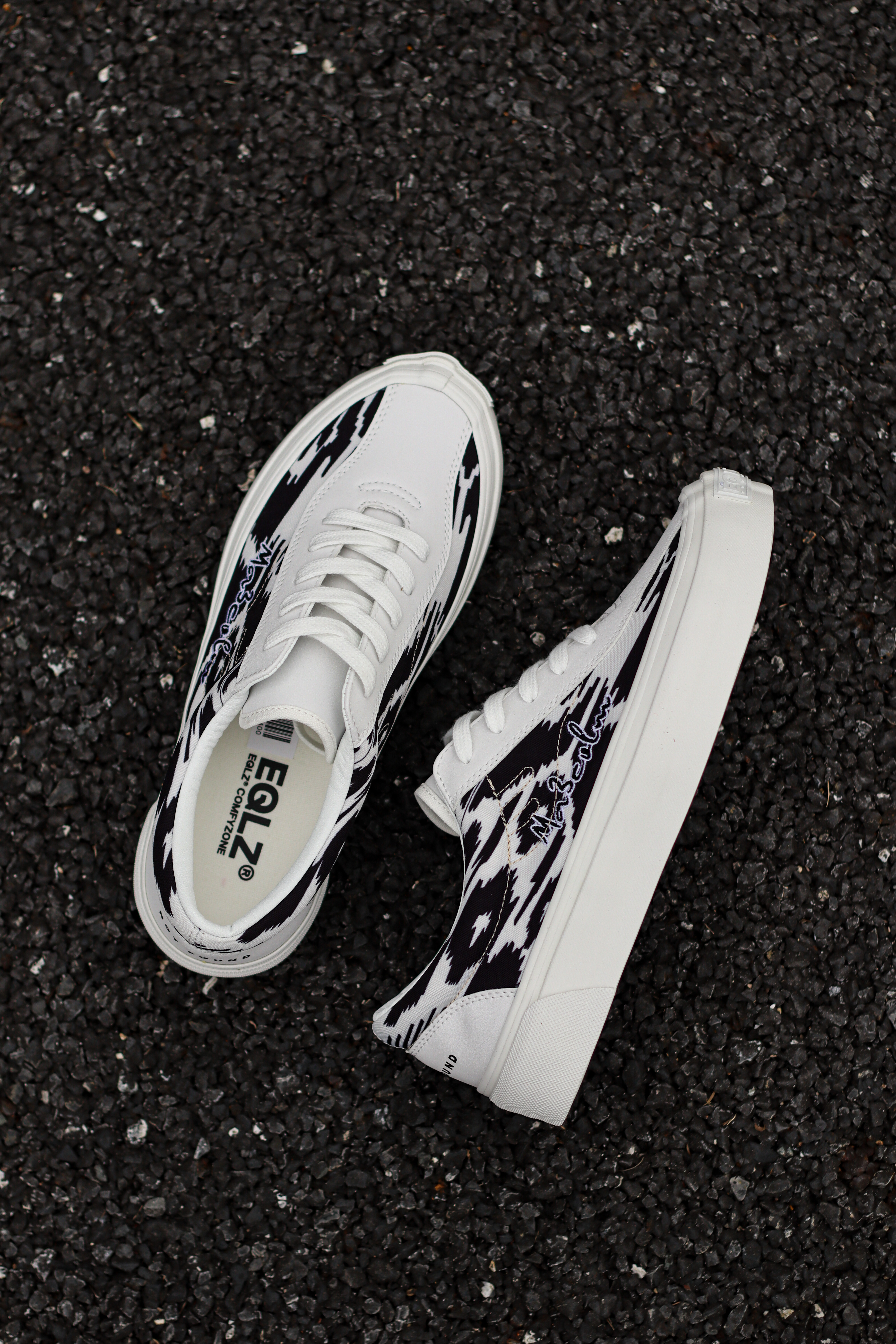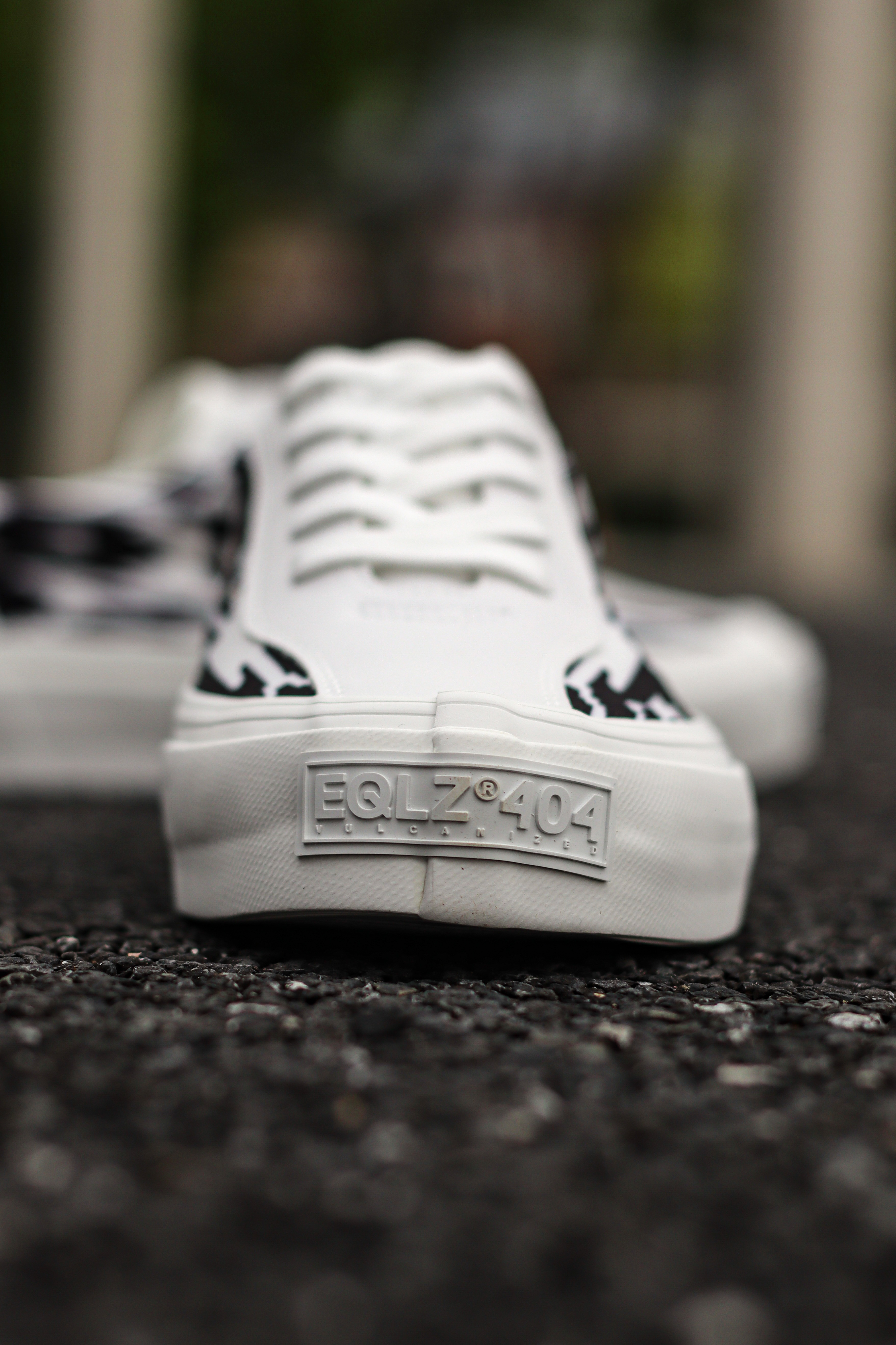 黑白配色的EQLZ 404确实是踏春出片的百搭复古板鞋~ 整体很干净利落的感觉,鞋侧黑色的民族风图腾,搭配质感刺绣细节,简约而又不简单! 脚感挺舒适,日常通勤&出街搭配,这双都是不用费脑筋的选择~