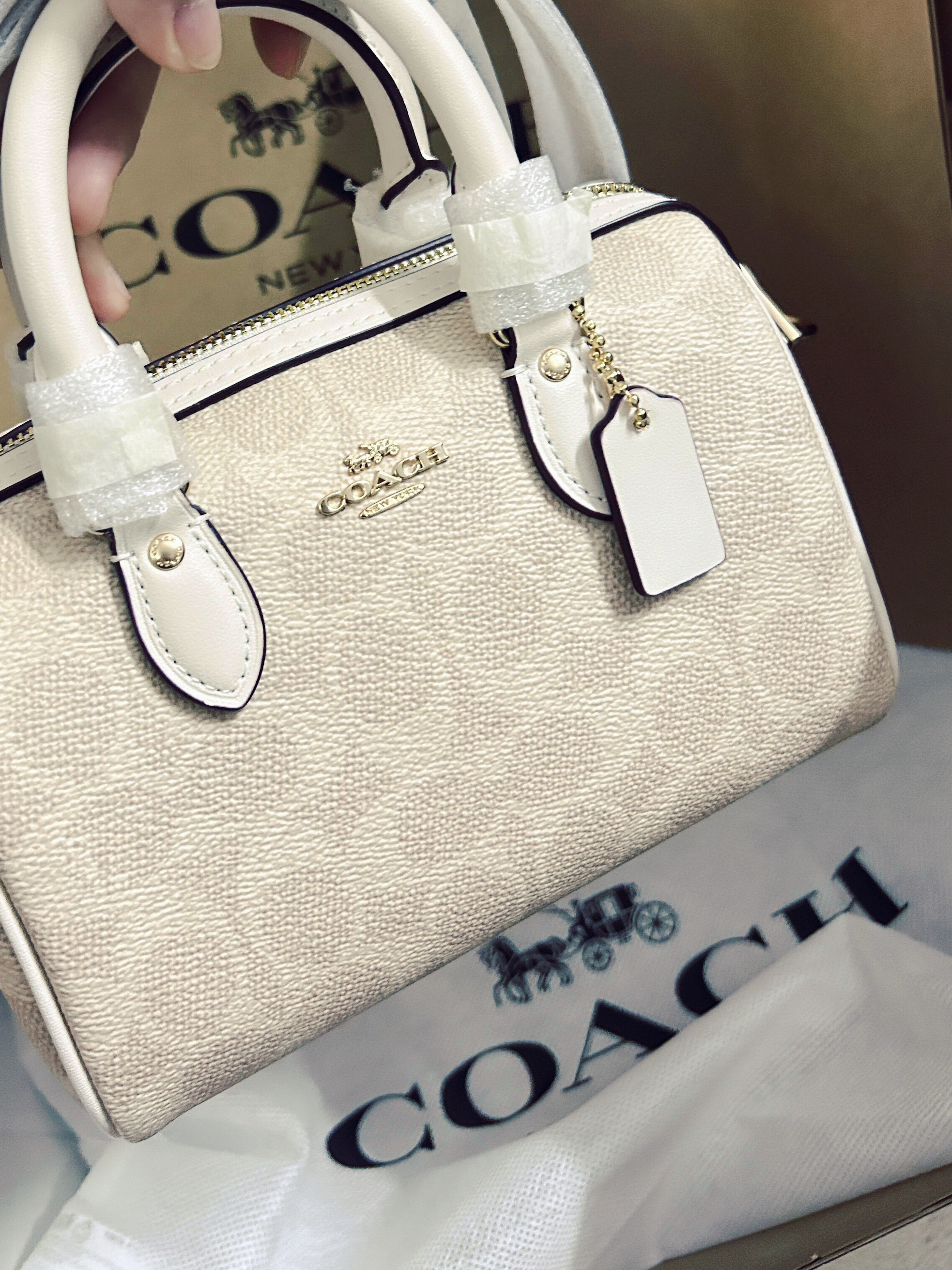 本篇笔记关联了Coach Rowan 18 小号 涂层经典老花印花拉链开合PVC拼皮单肩斜挎手提包 奶茶拼白、Coach Rowan 大号 品牌徽标拉链开合皮革单肩斜挎波士顿包手提包 豆沙色等商品,为用户提供真实的使用体验和购买参考。
