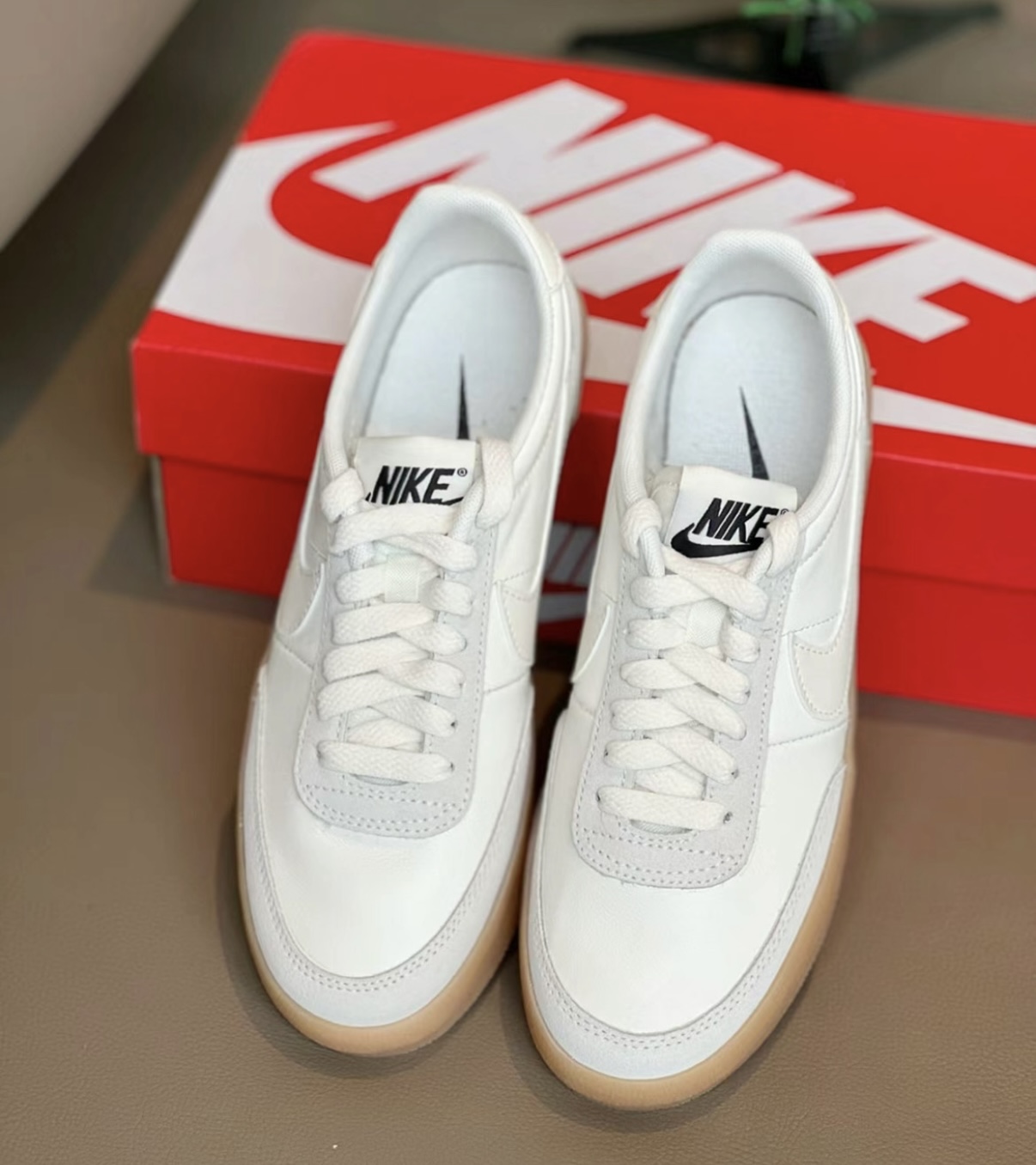 耐克新款板鞋春夏季复古百搭小白鞋~ Nike Killshot2复古百搭小板鞋来啦 喜欢复古风格,脚型秀气的宝宝们不要错过哦~ 耐磨的橡胶大底,浅色系外观 春夏秋上脚很好搭配,复古感满满。 上脚轻盈舒适,不磨脚。 码数:正常尺码。