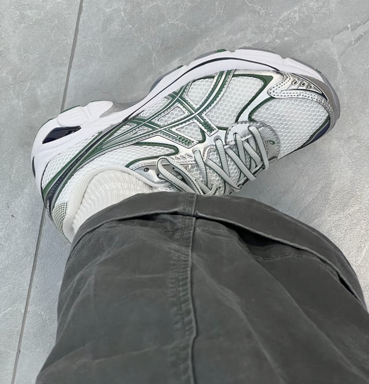 亚瑟士GT-2160复古跑鞋,白绿银配色超有Y2K千禧风,网布+合成革拼接,透气又有支撑力✨。GEL缓震+耐磨橡胶大底,走路跑步都很舒服,低帮设计日常穿搭无压力,复古又百搭,随便配休闲裤、牛仔裤都好看!男女同款,颜值与性能兼备,时尚实用两不误💚