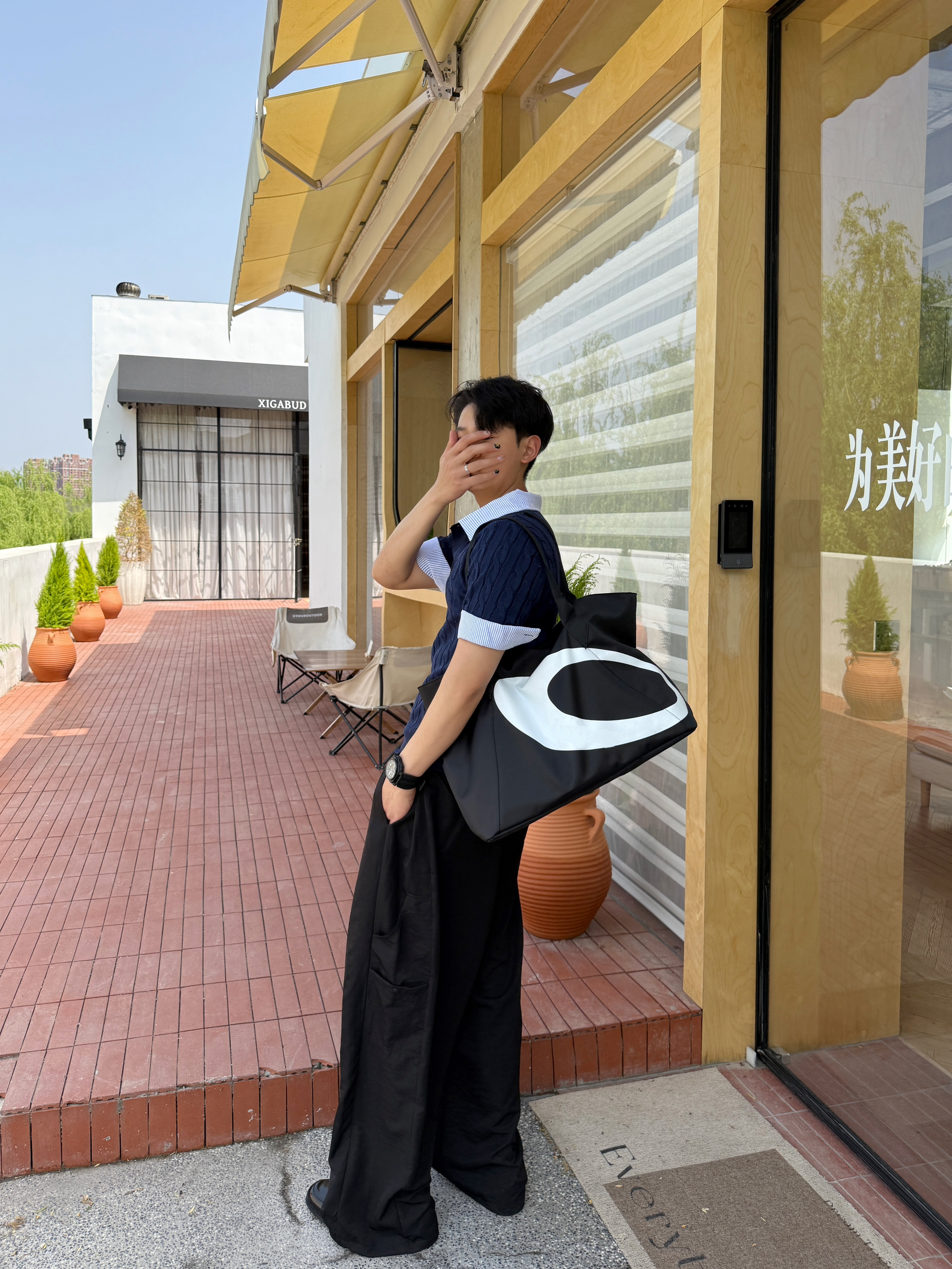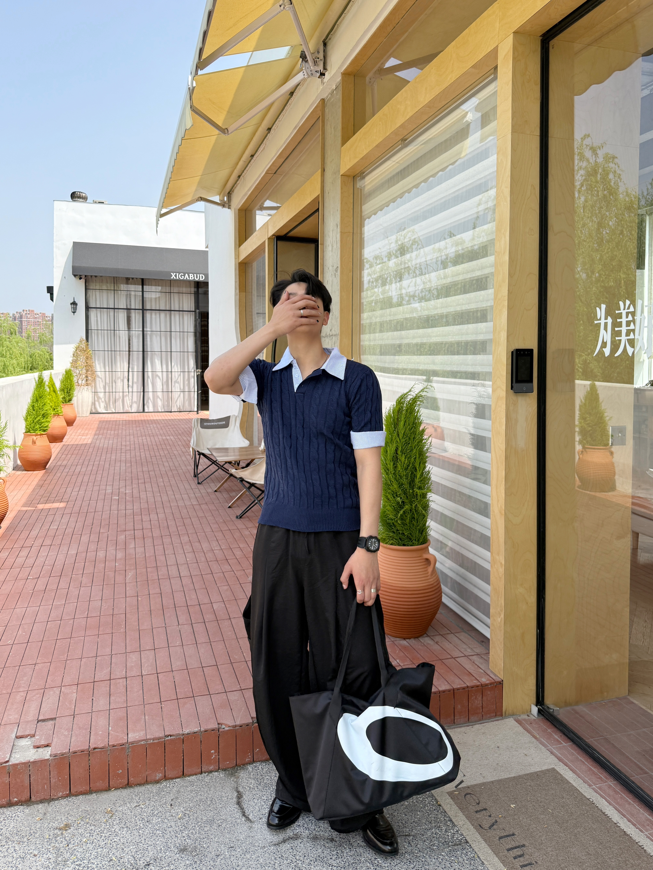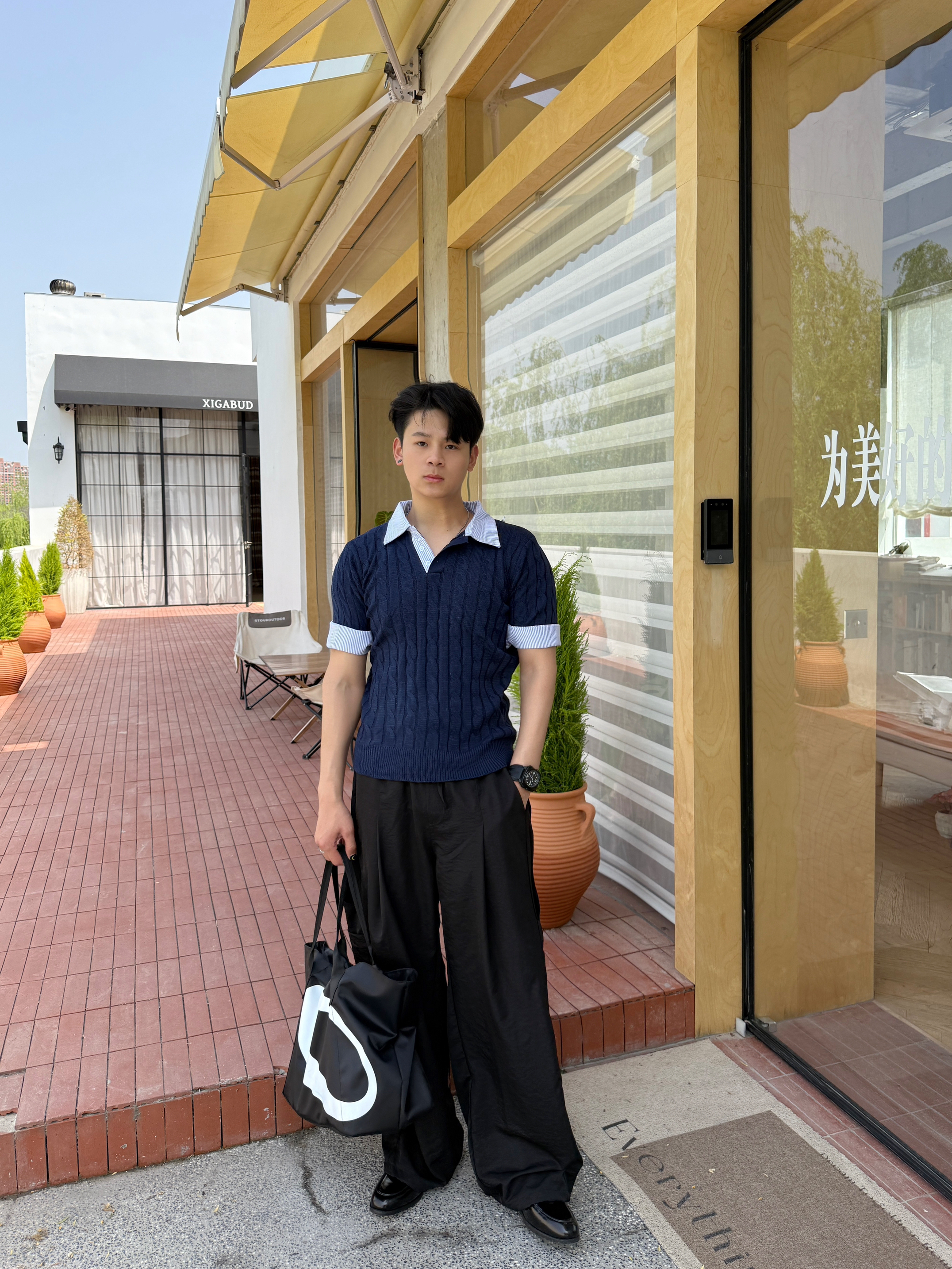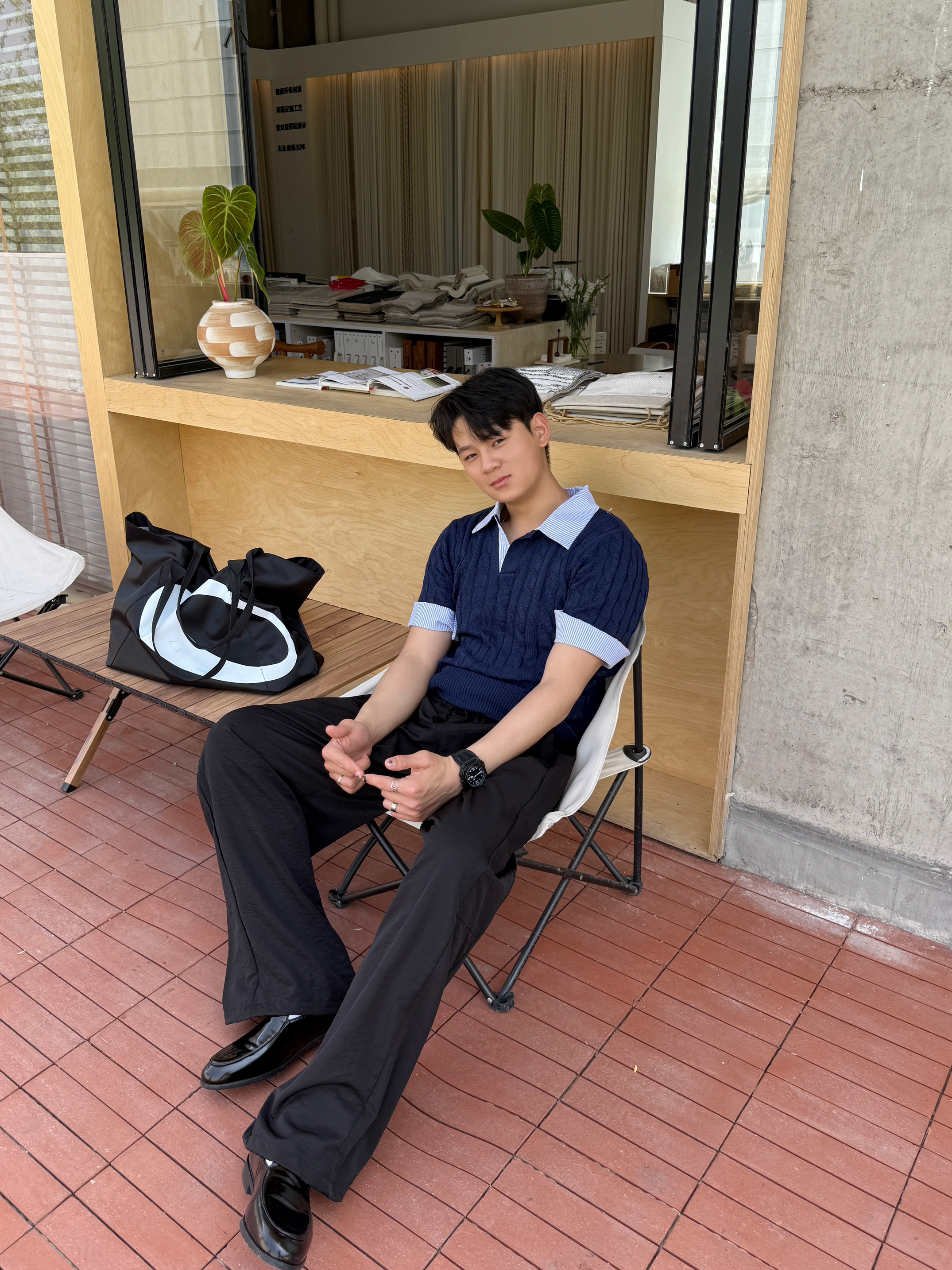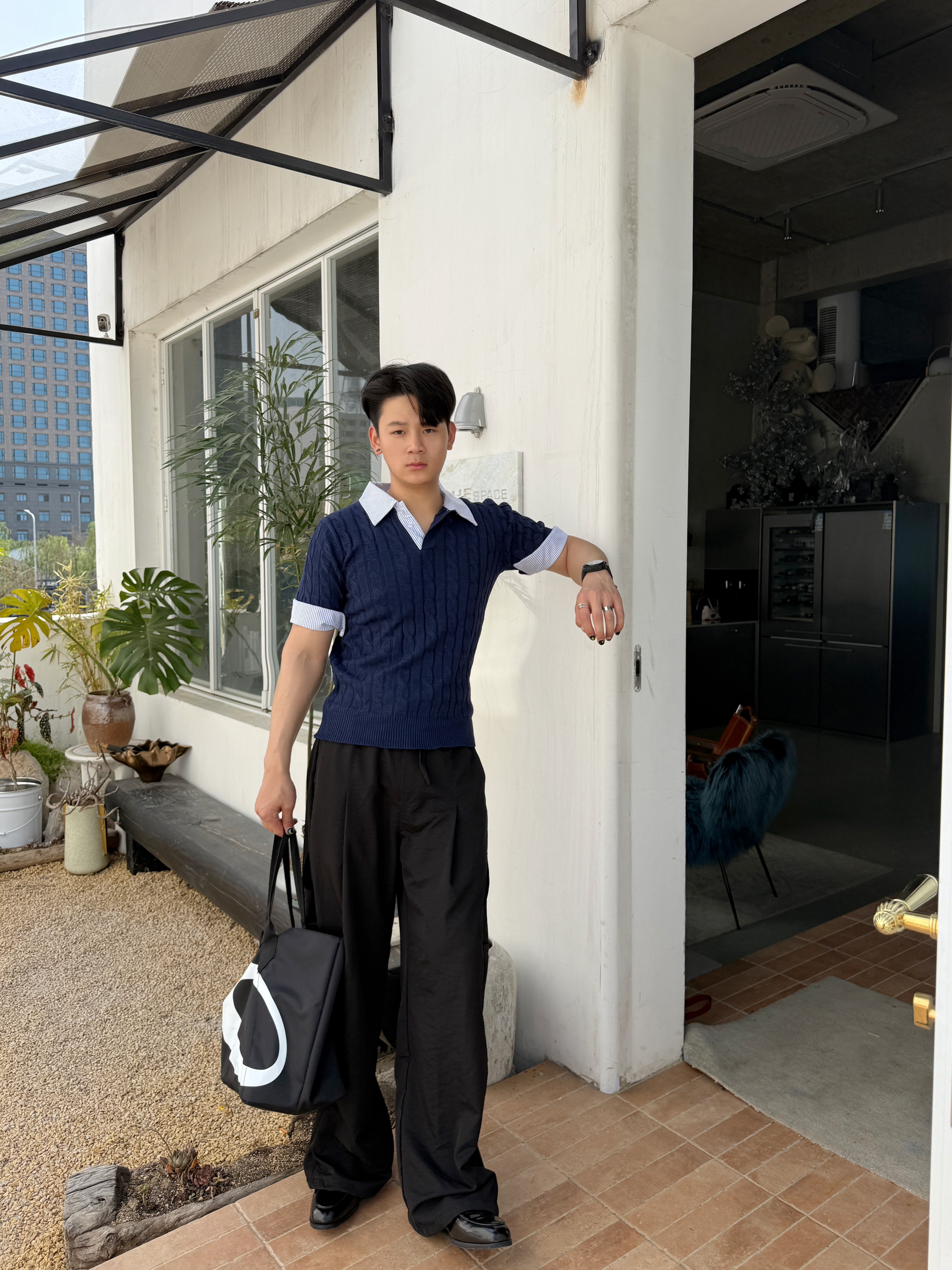 夏天的穿搭我还是独爱老钱风 今日份ootd 上衣我选择一件假两件翻领针织短袖 老钱风的款式加上翻领设计,上身板正还有型 裤子我选择一条轻薄垂感直筒休闲裤 直筒的版型加上轻薄的面料 夏天穿起来再合适不过了 搭配尖头皮鞋这样给人一种高级老钱风 最后在背一个黑白托特包增加层次感 你认为这样一身下来怎么样?