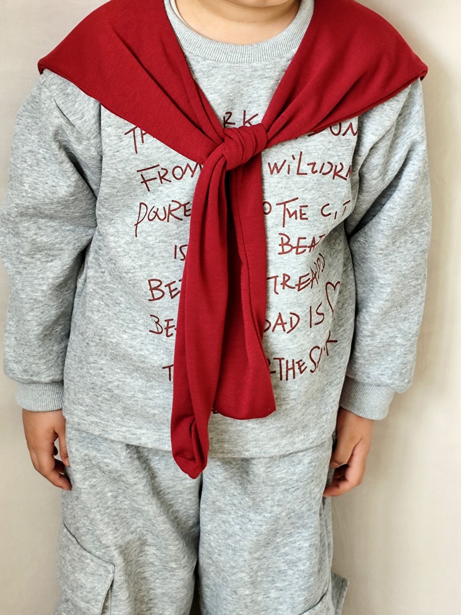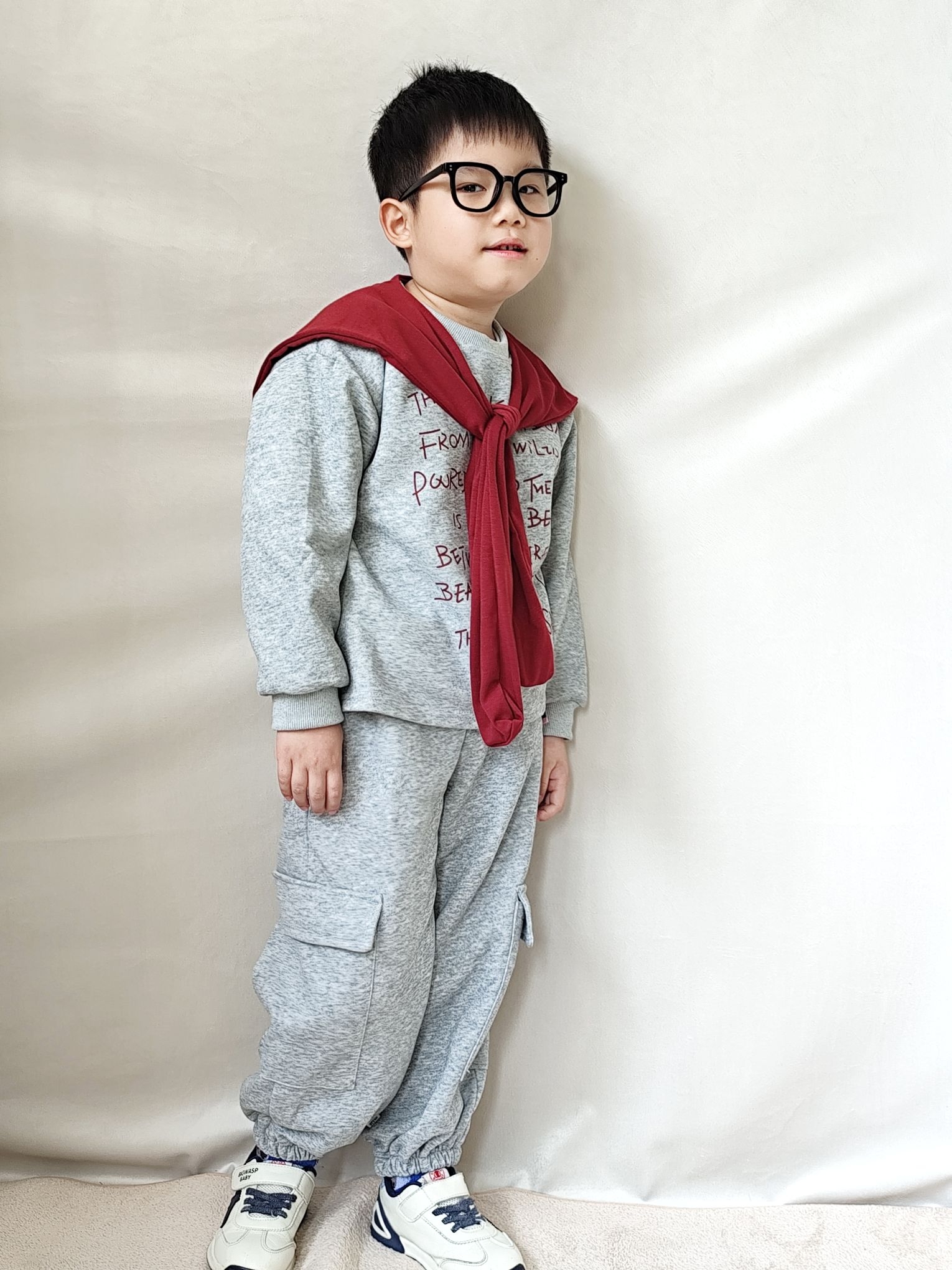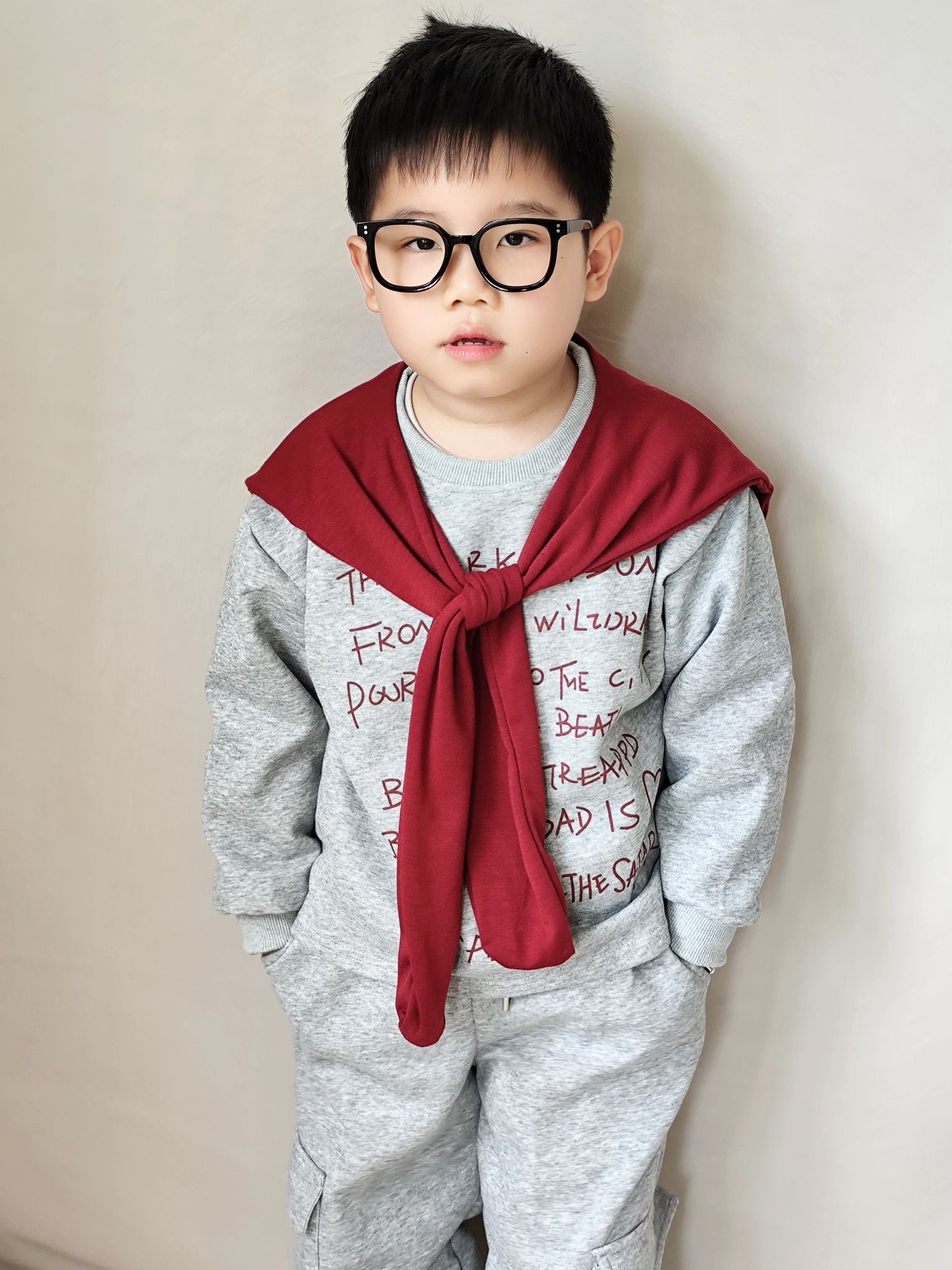 今天必须给你们按头安利这套我家宸宝穿了N次的早春穿搭!真的是闭眼入不踩雷的款,太适合男宝了! 先给你们唠唠这套的组成:灰色字母卫衣+同色系工装卫裤+酒红色披肩,一套直接搞定,不用费心搭配,懒人宝妈狂喜! ✨ 真实穿搭感受 1. 舒适度拉满,娃穿了完全不抗拒 卫衣和裤子都是软糯的毛圈棉材质,摸起来软乎乎的,贴身穿完全不扎。宸宝属于敏感肌,穿这套玩了一整天,后背也没闷汗,透气性绝了!裤子是宽松的工装大...