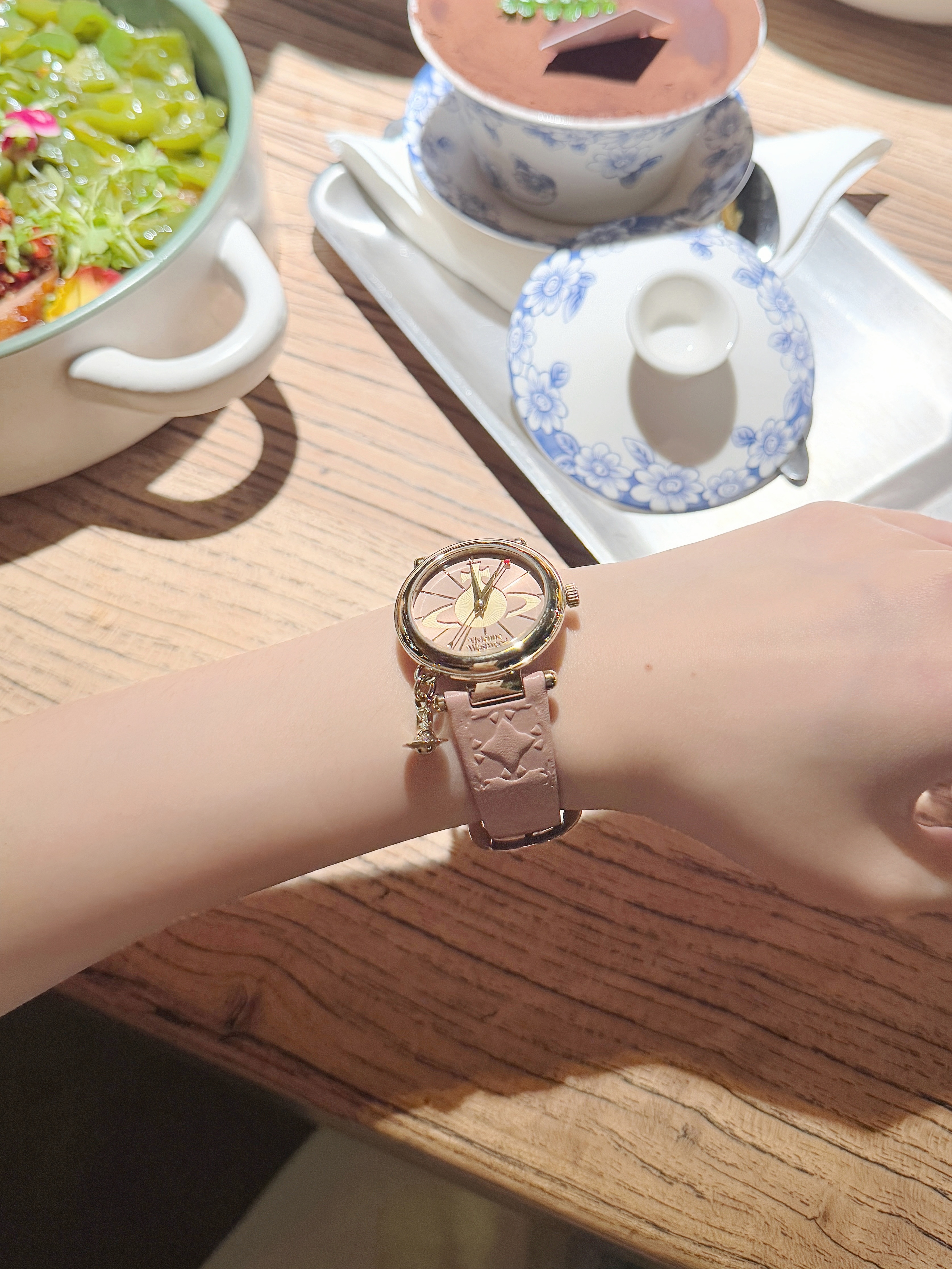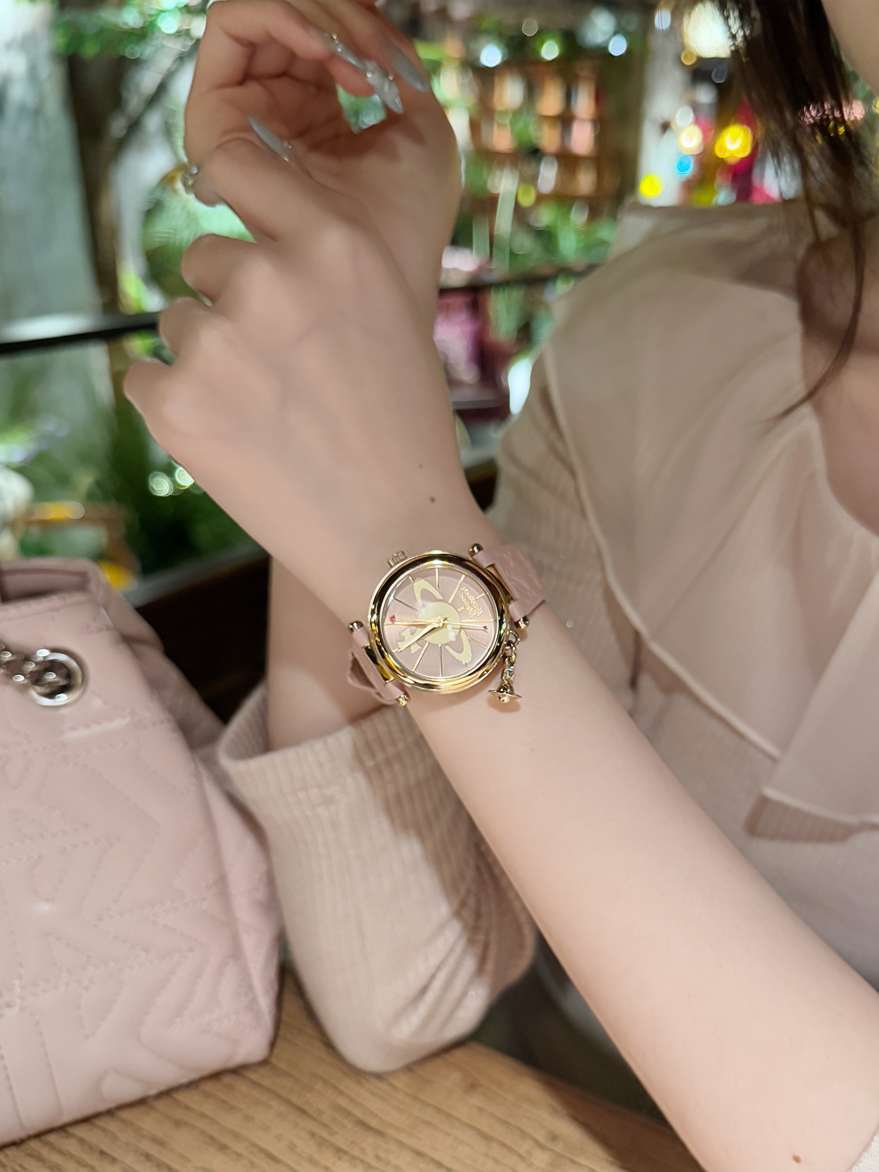 谁懂啊!西太后这块粉金手表💖直接长在我审美上啦~ 金色表盘⚜️奢华高雅🎀 秒针末端的小红心💗超灵动👻 正中镂空🪐土星logo辨识度满满✨ 土星吊坠随手臂晃动💦优雅又灵动☁️哦~ 瑞士进口石英机芯⌚️走时精准✅ 真皮粉带🌸软乎乎不勒腕🍃 得物入手性价比超高的 日常通勤、约会👛戴都超提气质👒 甜妹辣妹👭🏼都能搭耶~