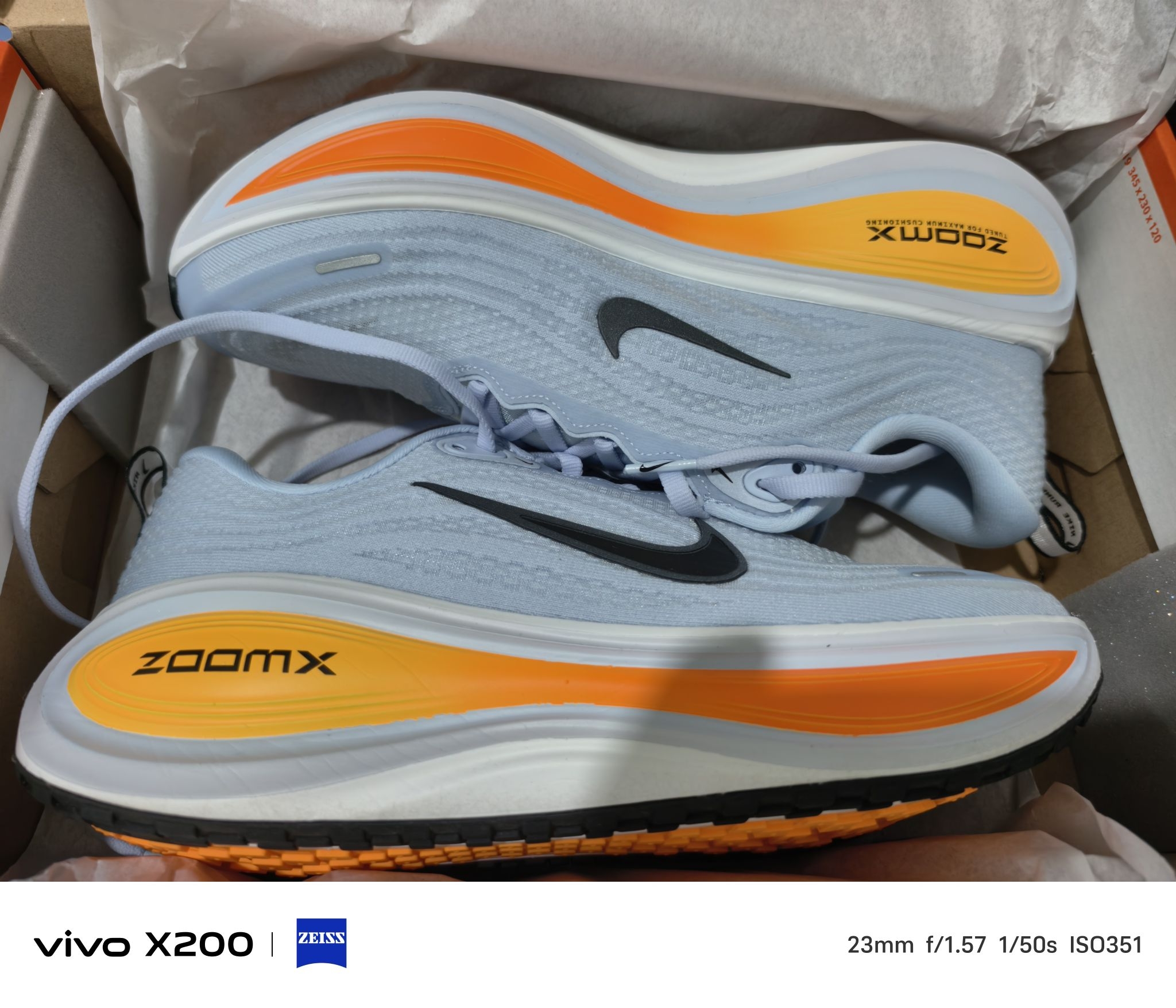 去年最火的耐克跑鞋,非vomero plus莫属,全掌zoomx中底,是tpu超临界发泡材质。 先说尺码,鞋楦正常略偏宽,内长正常略长一点点,微宽脚正码选择,大宽脚大半码选择。 脚感软弹,一上脚就能感觉到满满的软弹感,体感坡差大概8mm,vomero plus对比vomero18,改为全掌zoomx后,前掌明显加厚,非常软弹,扎实的脚感,没有普通迈柔的上下双密度的割裂感。 初步试了下,4分30到7...