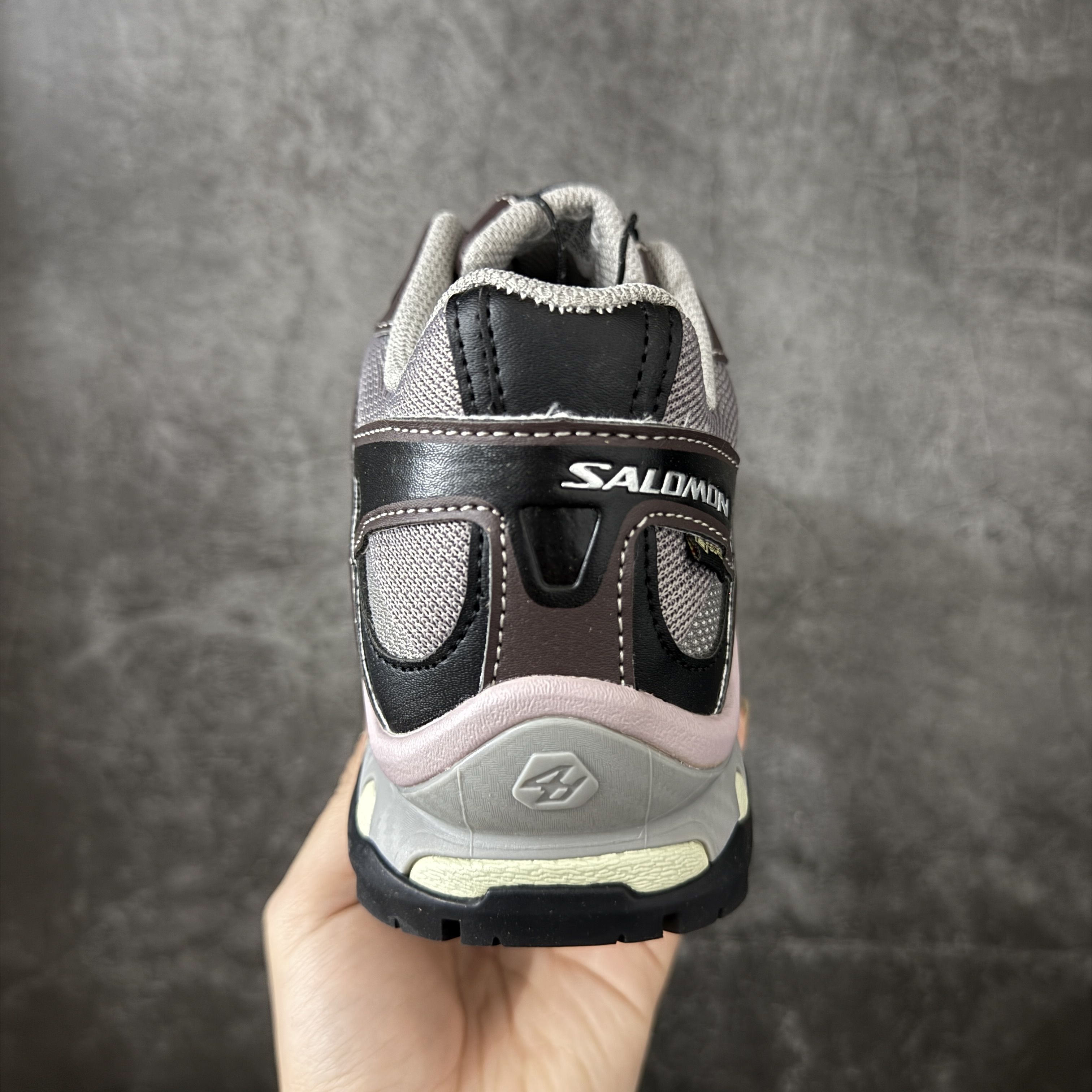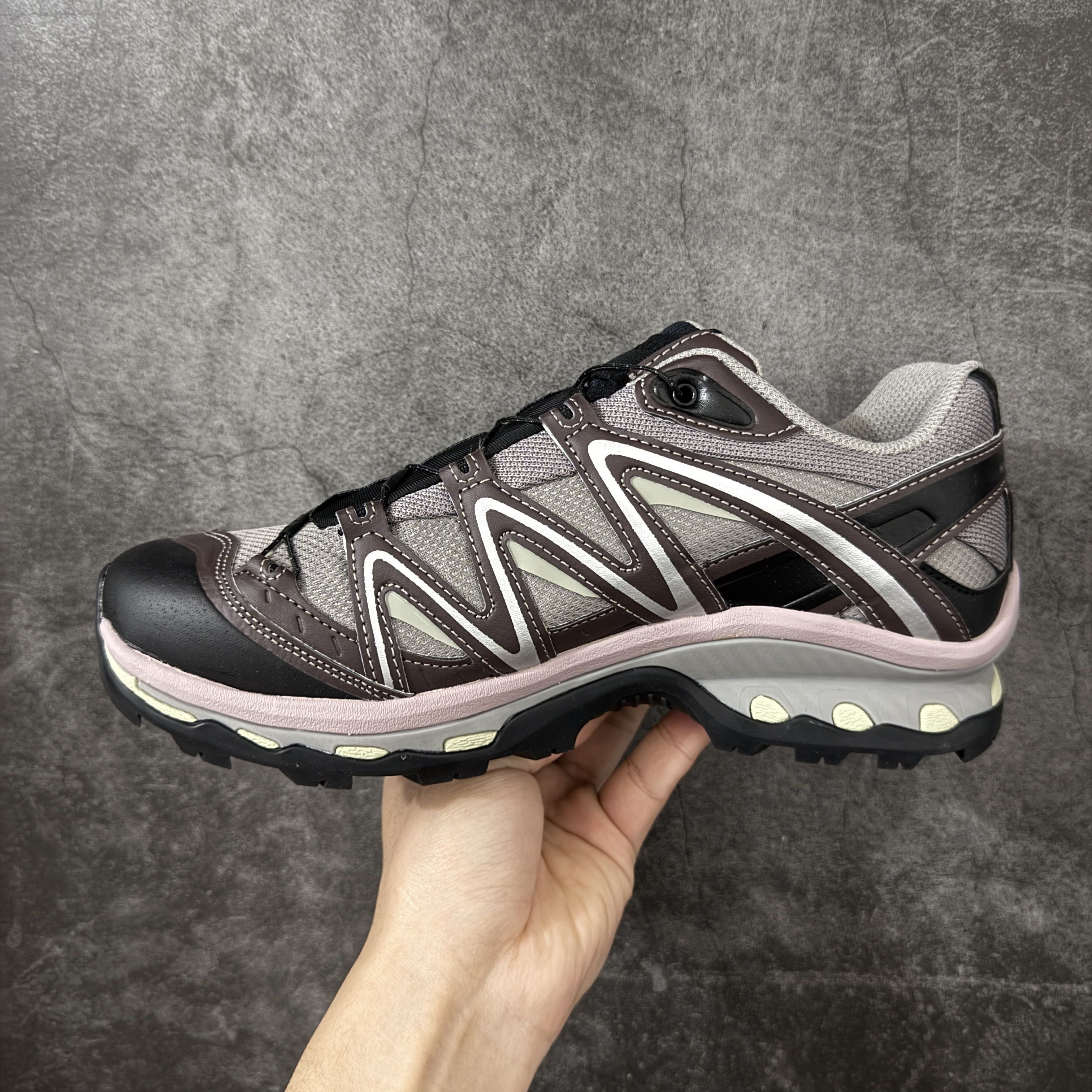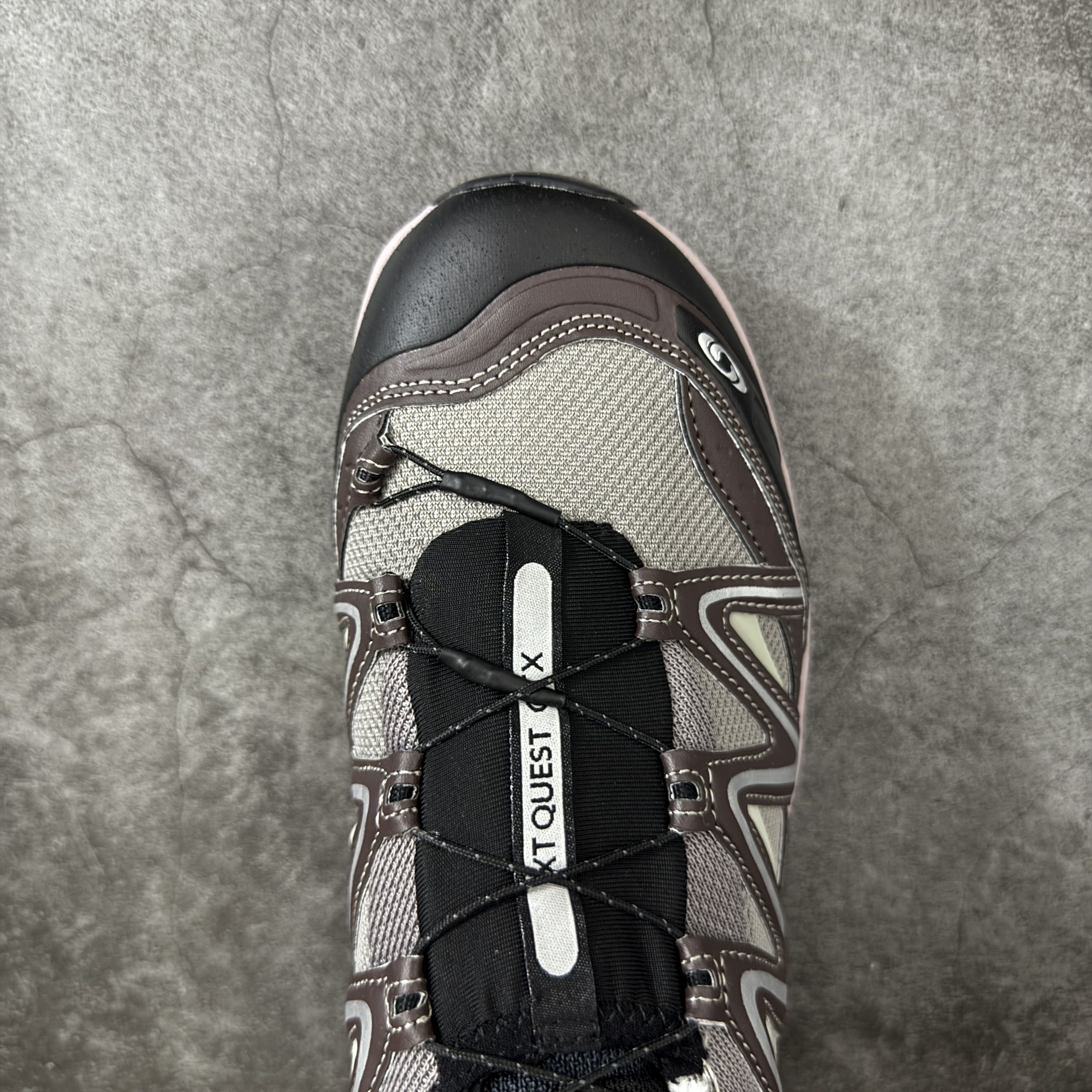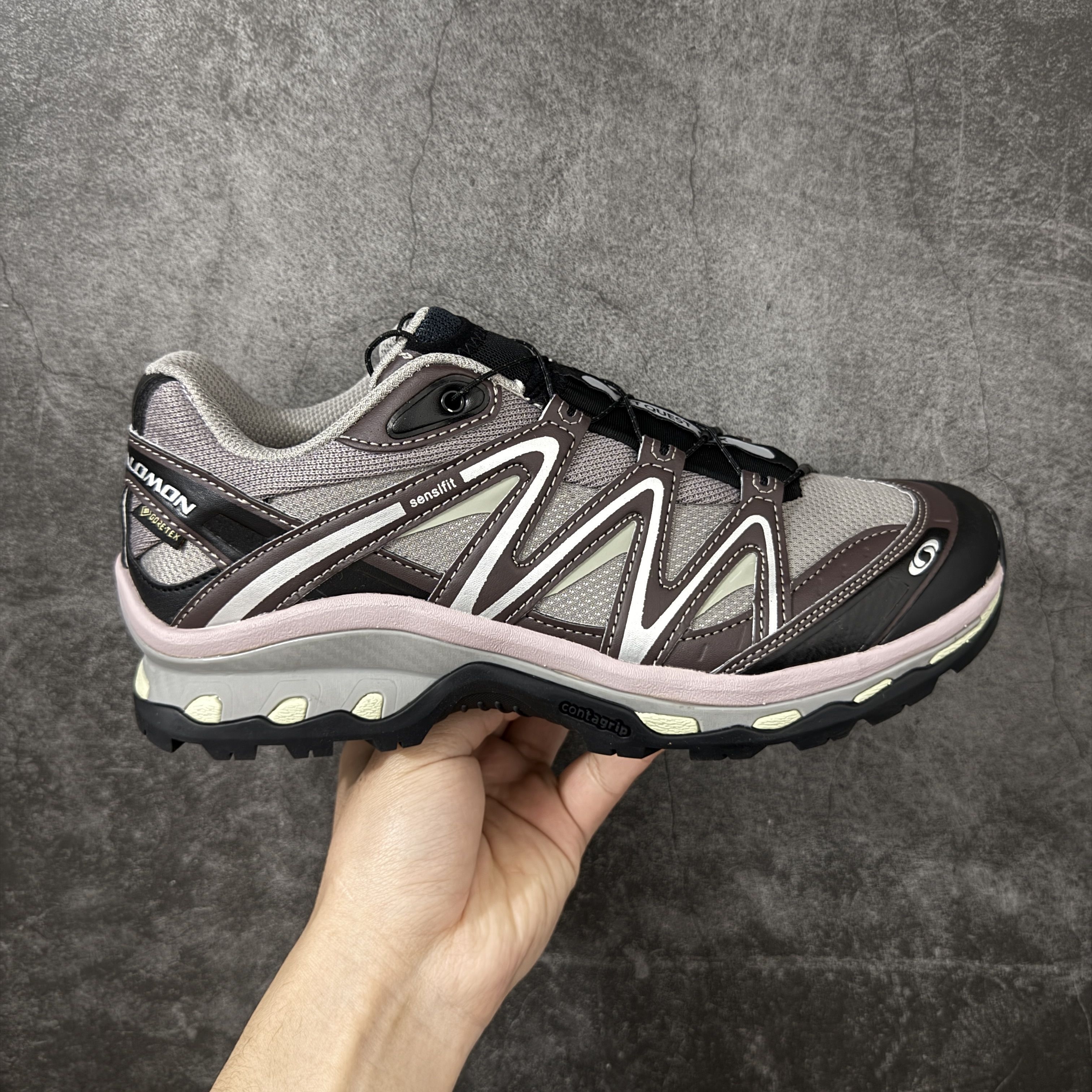这双Salomon XT-Quest新配色太戳审美! 低饱和灰棕打底,搭配脏粉中底与银白线条,完美平衡户外硬核感与潮流属性。 搭载Contagrip大底与Sensifit包裹系统,GORE‑TEX加持无惧风雨,实战性能拉满。 街头出片、户外通勤皆适配,颜值与实用性双在线,机能党闭眼冲。