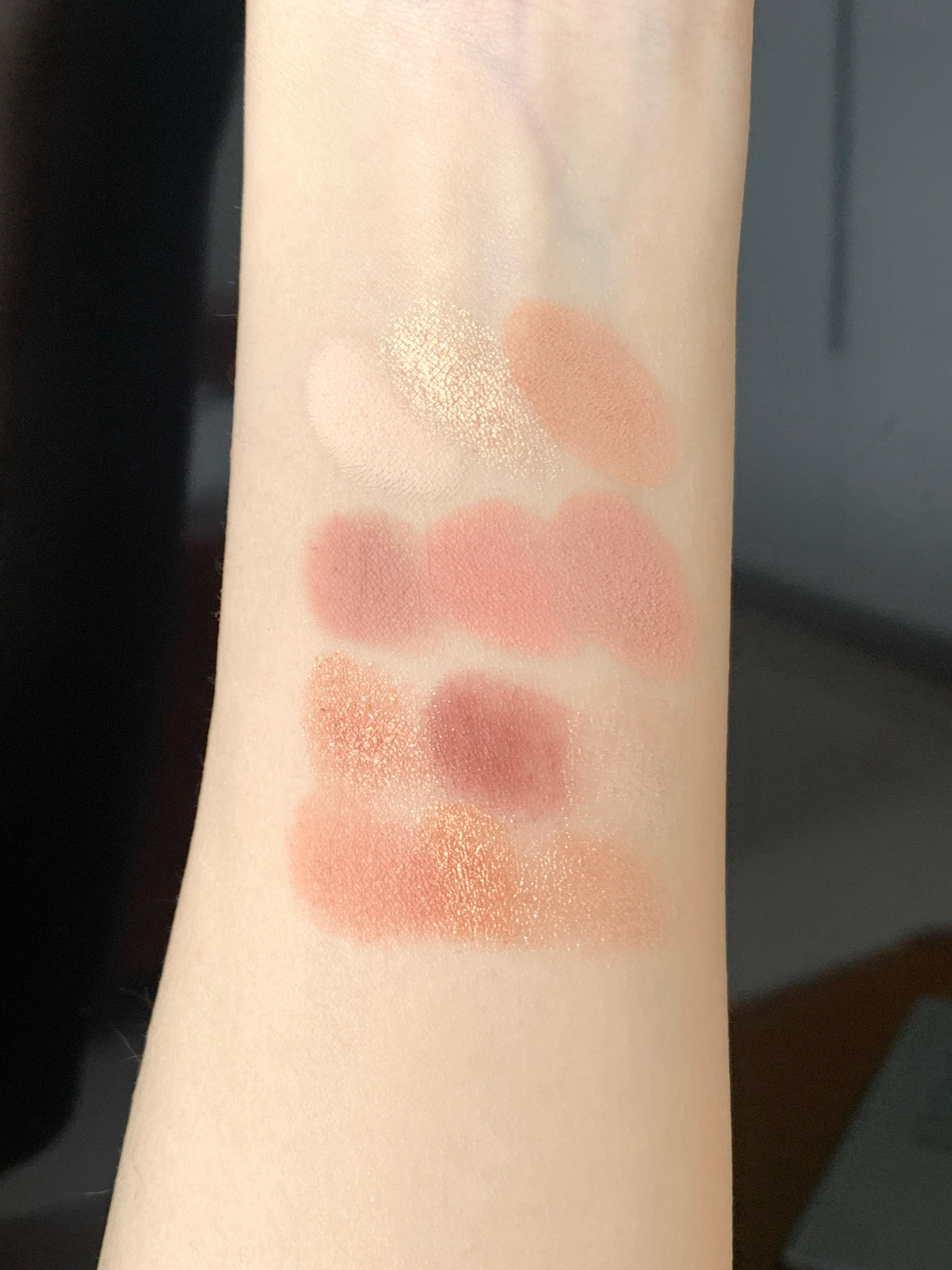 粉嫩的外包装搭配蕾丝绑带,好少女心💕的设计~ 整体是偏暖调的大地色,浅深色还有珠光色 还有一颗爆闪的啫喱和腮红,粉质我感觉都蛮细腻的 显色度也很不错!日常上妆对新手小白友好🥰 还送了一支双头眼影刷,推荐给学生党