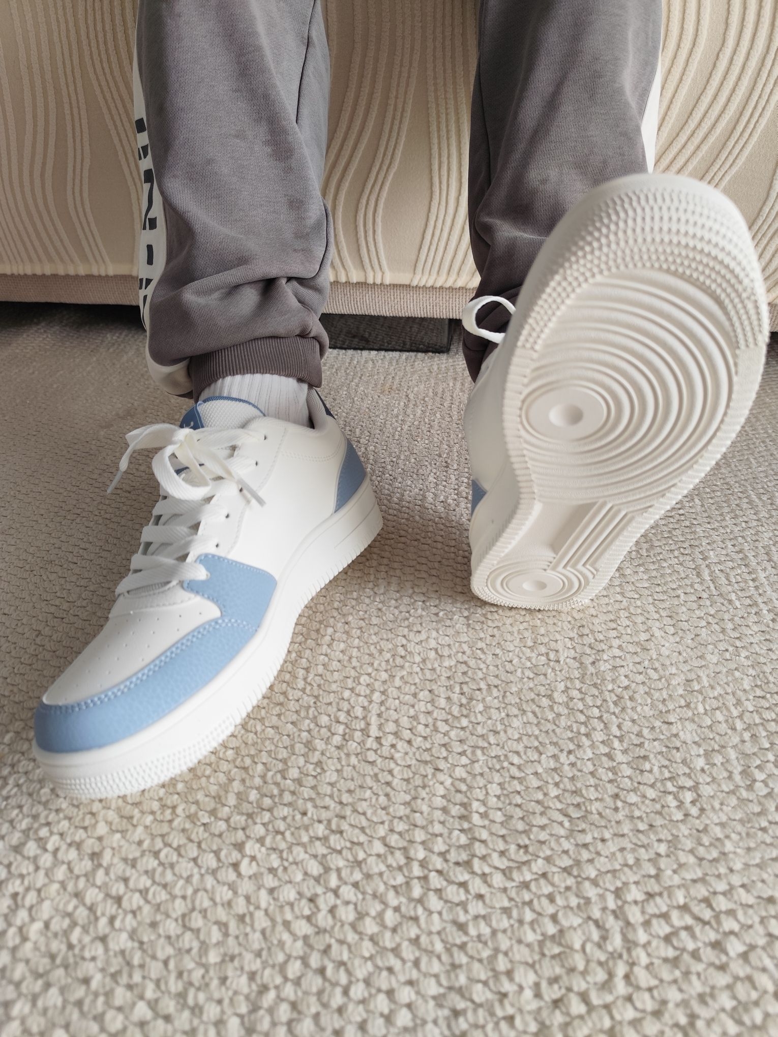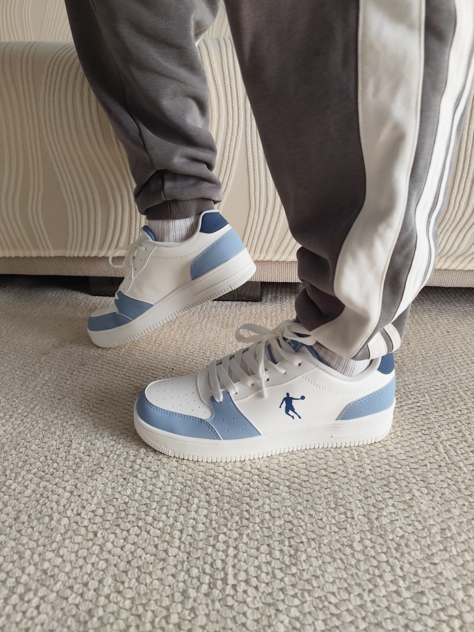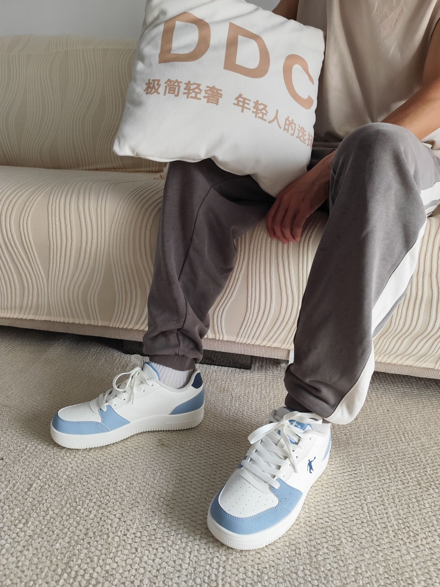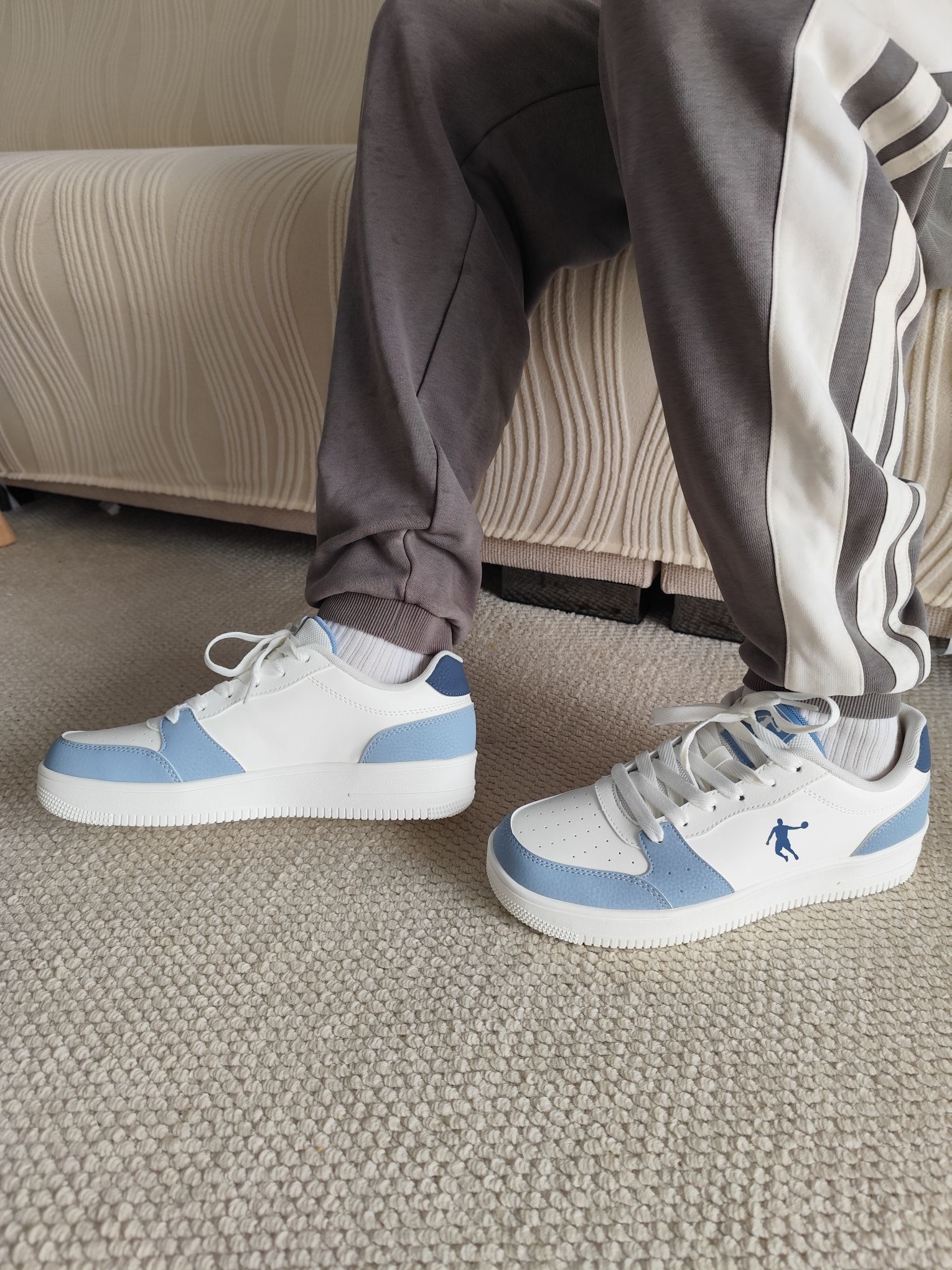 乔丹质燥这款白蓝碎冰蓝低帮板鞋颜值直击心巴! 清爽配色自带夏日氛围感,潮流又耐看,混搭长裤短裤都超适配。 上脚轻盈无负担,包裹贴合不挤脚,而且鞋底回弹给力、透气不闷脚,夏天久走也自在,舒适度拉满,妥妥能穿整夏的百搭神鞋!
