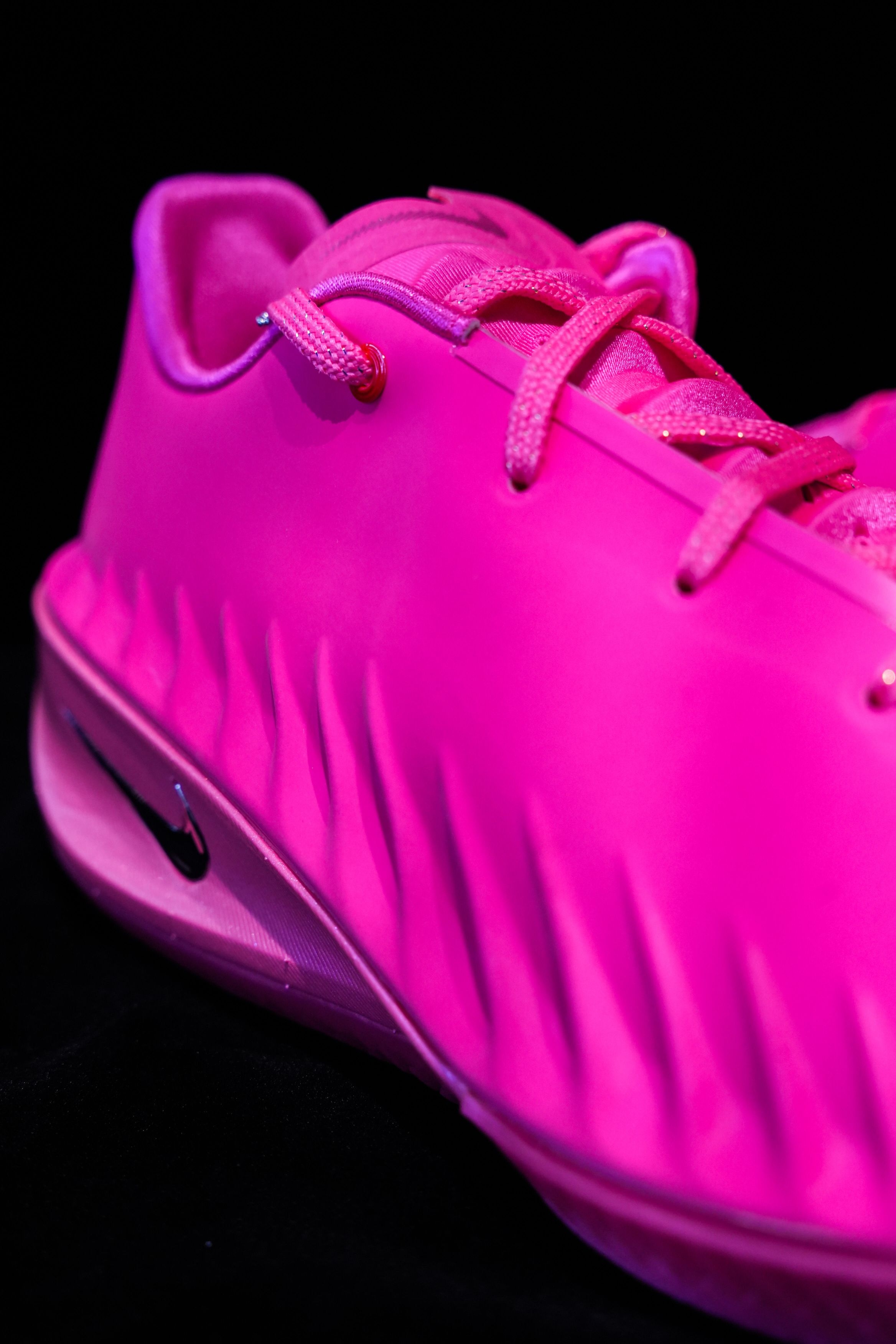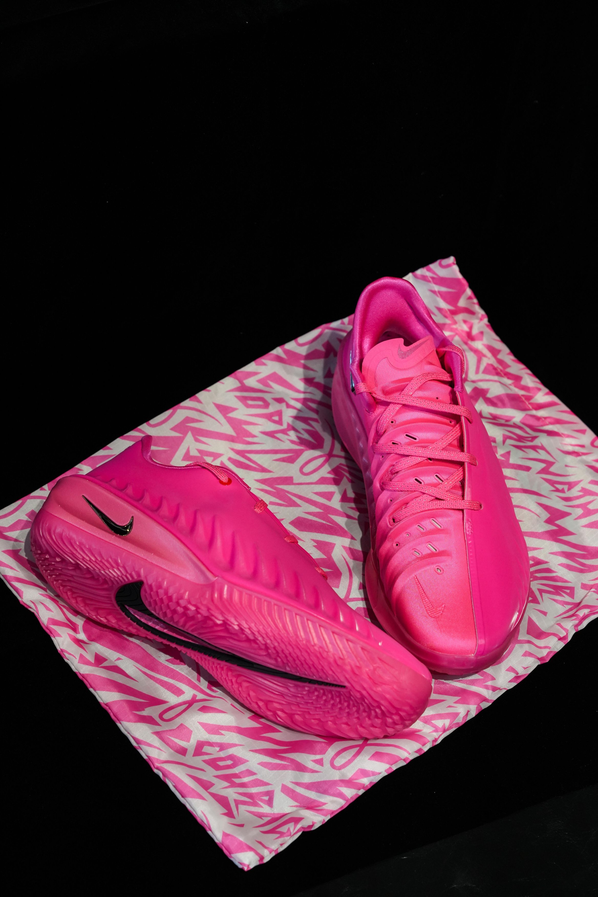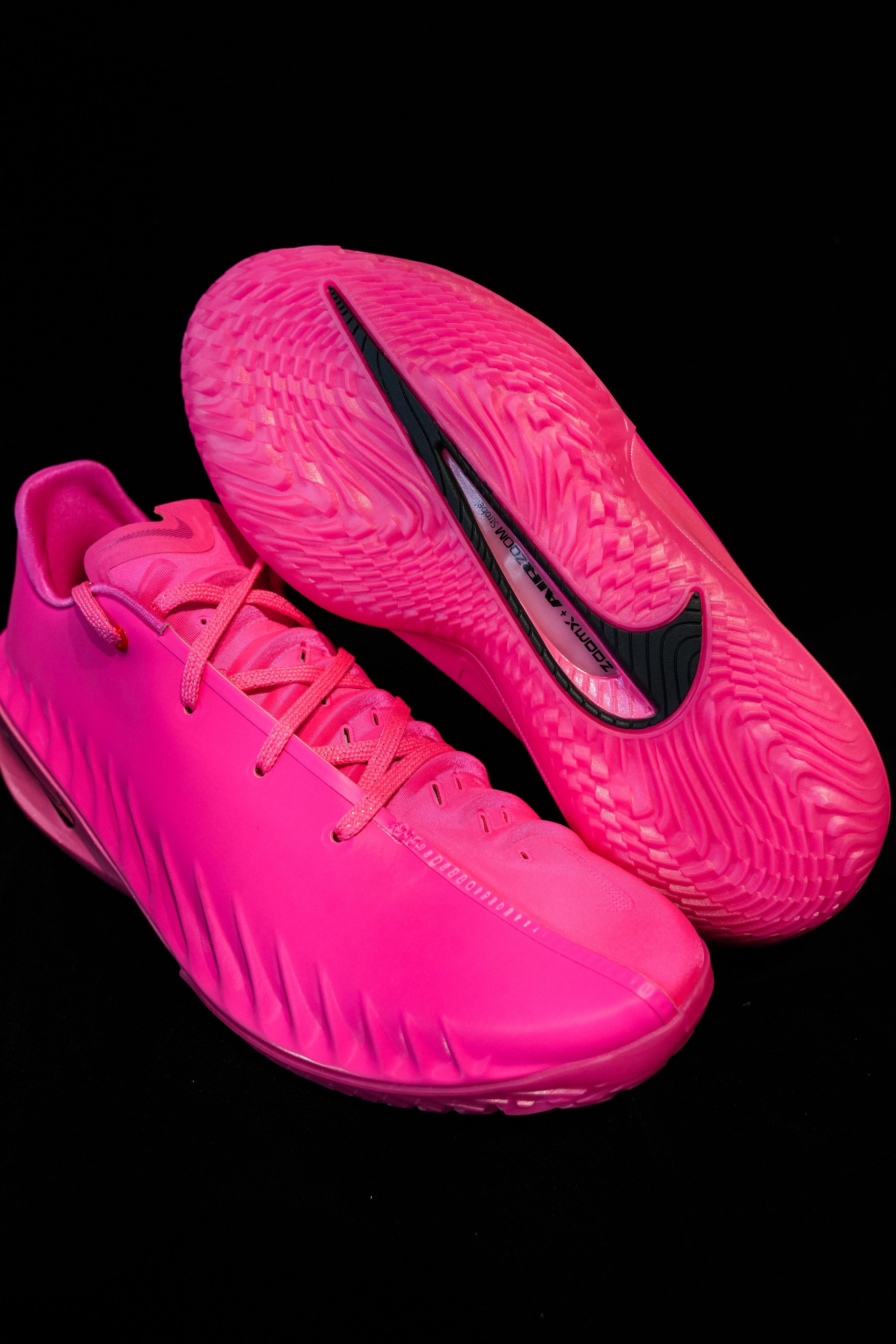 Nike G.T. Cut 4|粉色力量,不止于美 这抹热烈又坚定的荧光粉,从来不止是配色,更是对抗与热爱的宣言。 Nike G.T. Cut 4 PER EP "Kay Yow",以经典公益主题为灵感,用高饱和粉色,打破球场与日常的边界。 流畅热压鞋身在光线下自带细腻质感,鞋带间的闪光线迹低调又精致,后跟专属标识与金属Swoosh点缀,让整双鞋温柔却不失锋芒。 ZOOMX + AIR...