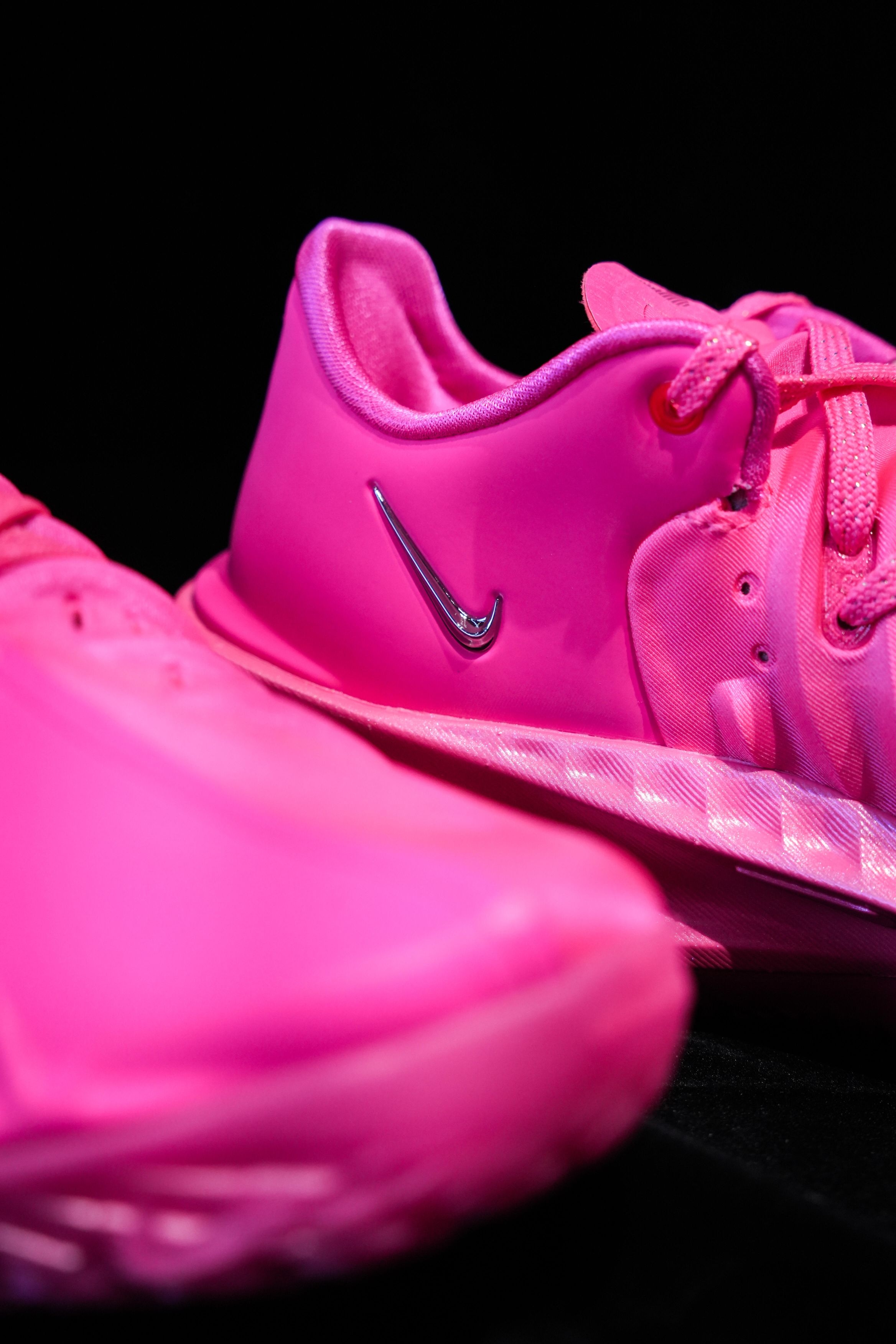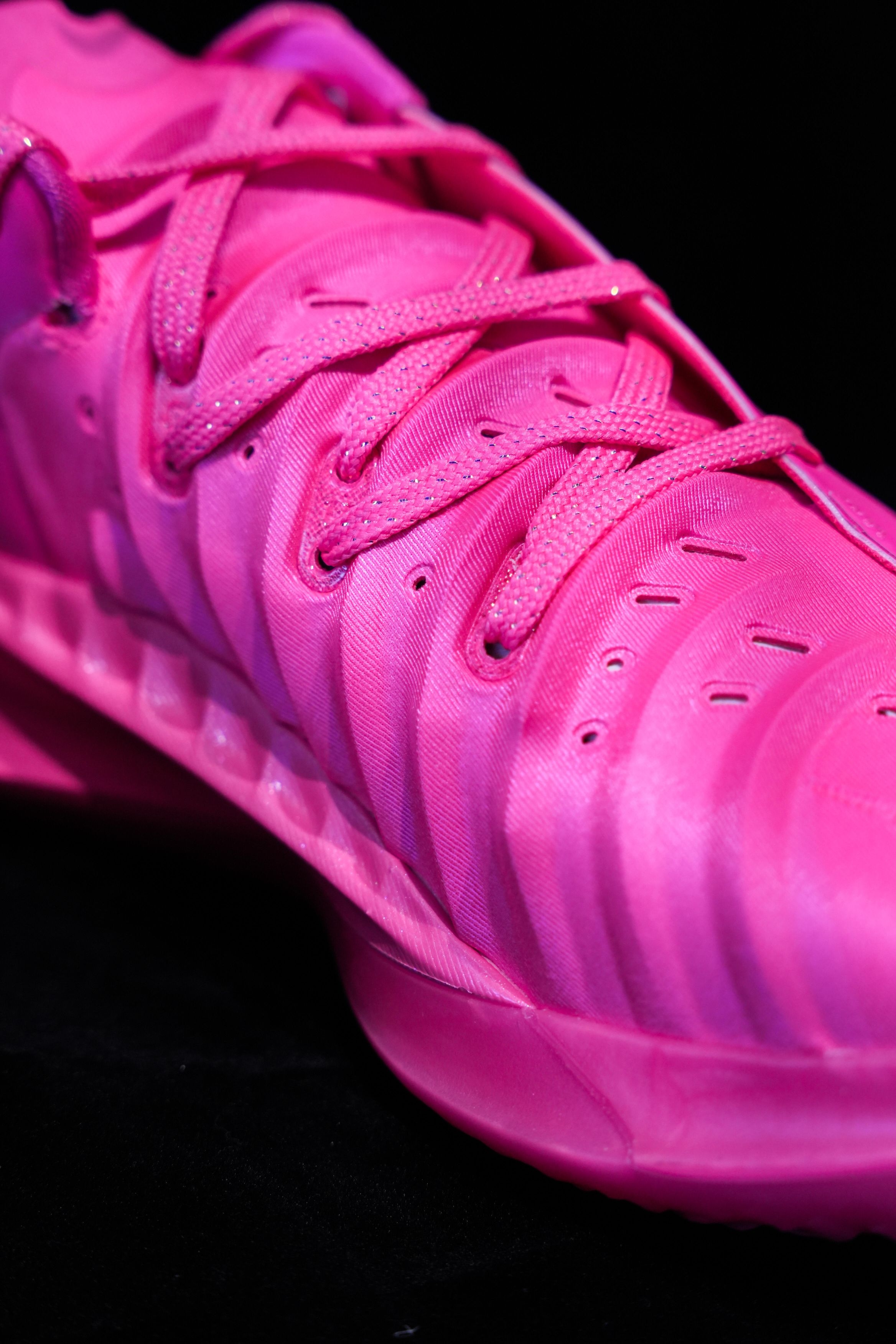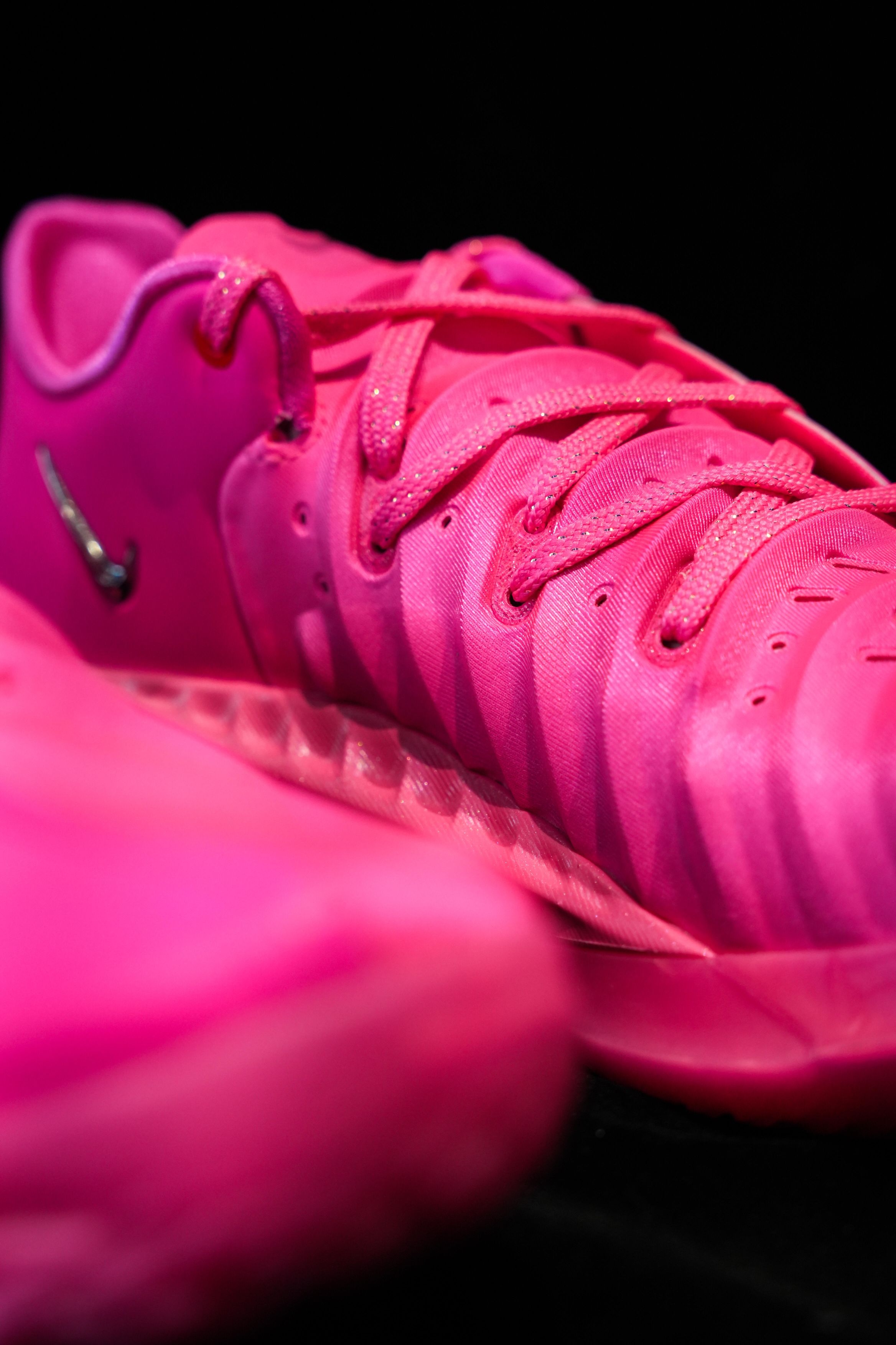 Nike G.T. Cut 4|粉色力量,不止于美 这抹热烈又坚定的荧光粉,从来不止是配色,更是对抗与热爱的宣言。 Nike G.T. Cut 4 PER EP "Kay Yow",以经典公益主题为灵感,用高饱和粉色,打破球场与日常的边界。 流畅热压鞋身在光线下自带细腻质感,鞋带间的闪光线迹低调又精致,后跟专属标识与金属Swoosh点缀,让整双鞋温柔却不失锋芒。 ZOOMX + AIR...