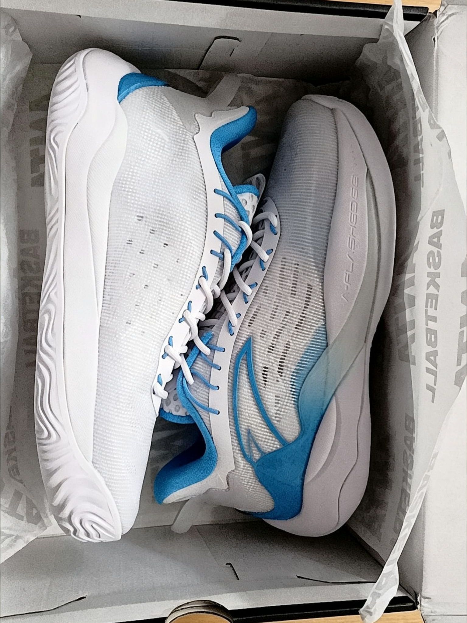 白蓝渐变颜值清爽,上脚显脚小,球场出街都能穿。 全掌氮科技中底韧弹不卸力,启动快、落地稳,全场跑跳不累脚。 透气网面夏天不闷脚,波浪纹大底抓地耐磨,水泥地随便造。 300+价位学生党闭眼入,后卫锋线全位置适配,外场实战首选口粮鞋!