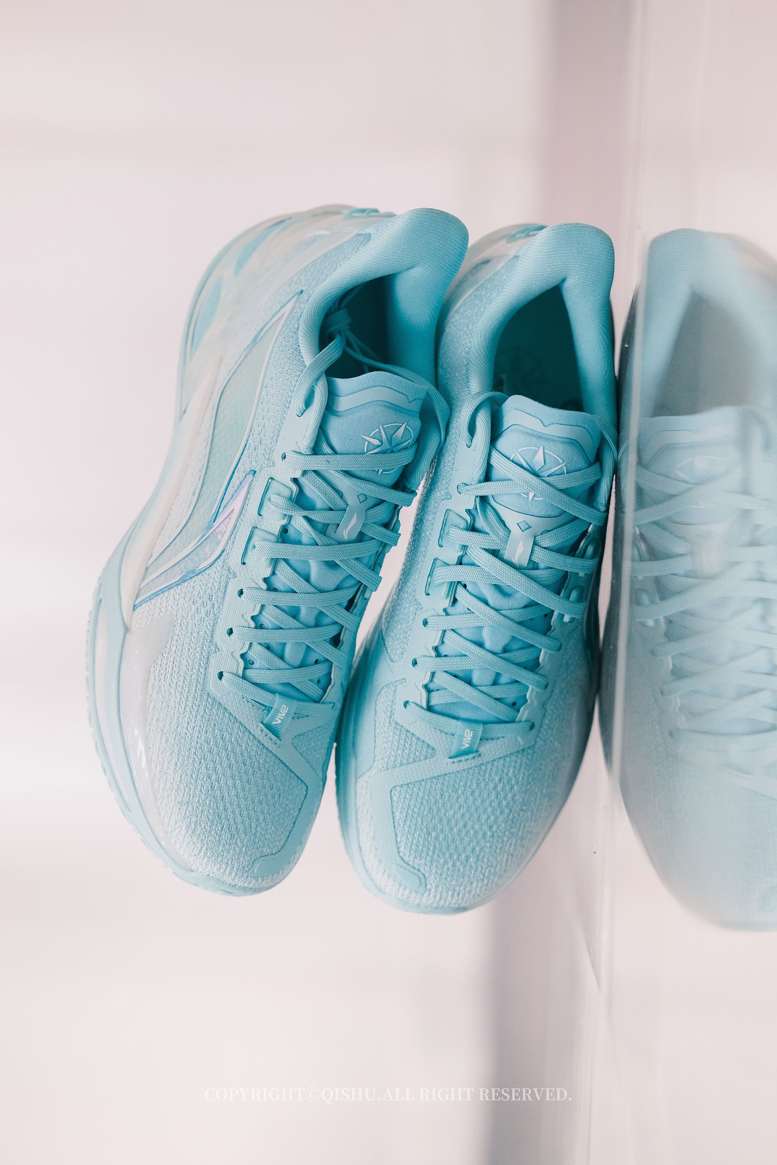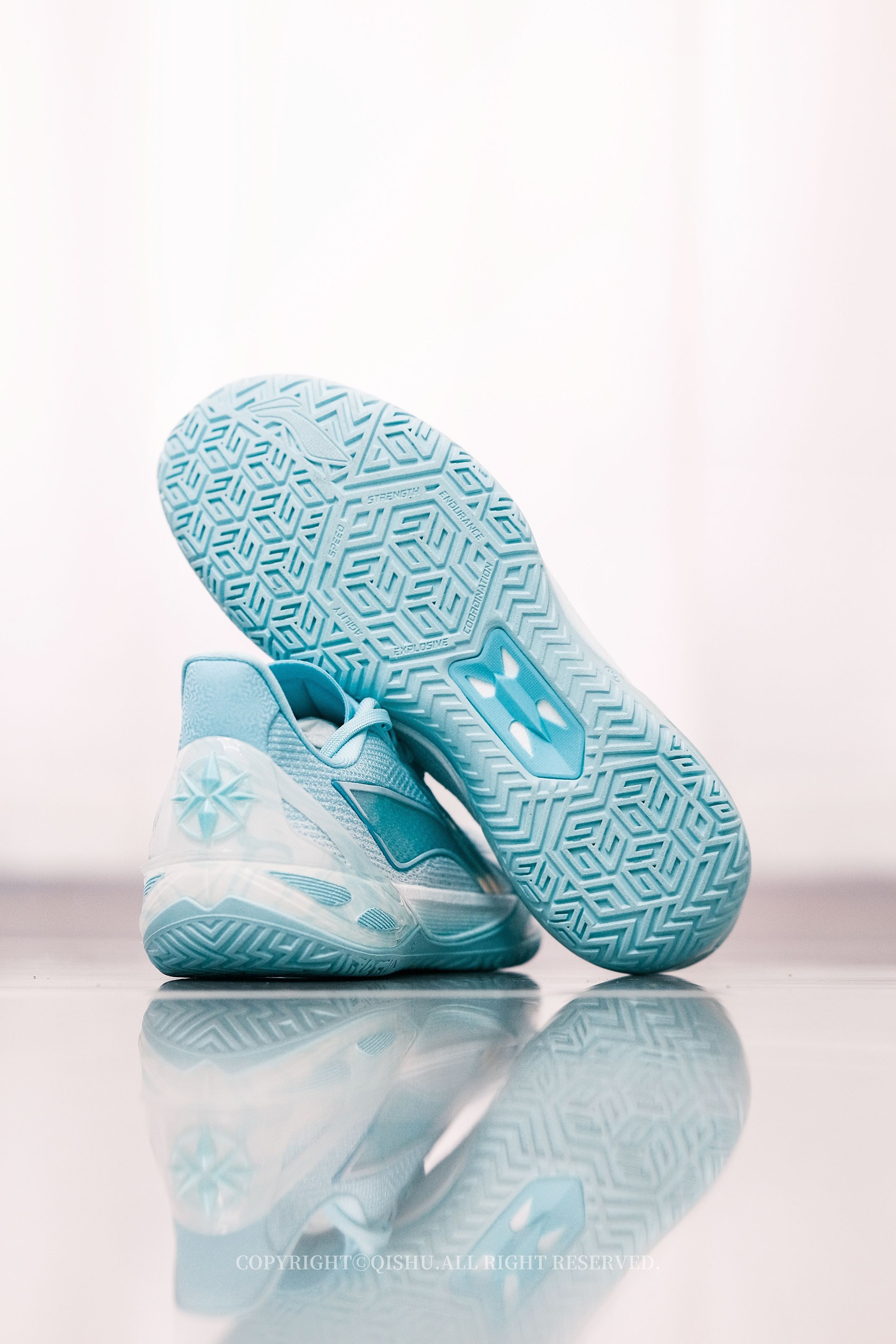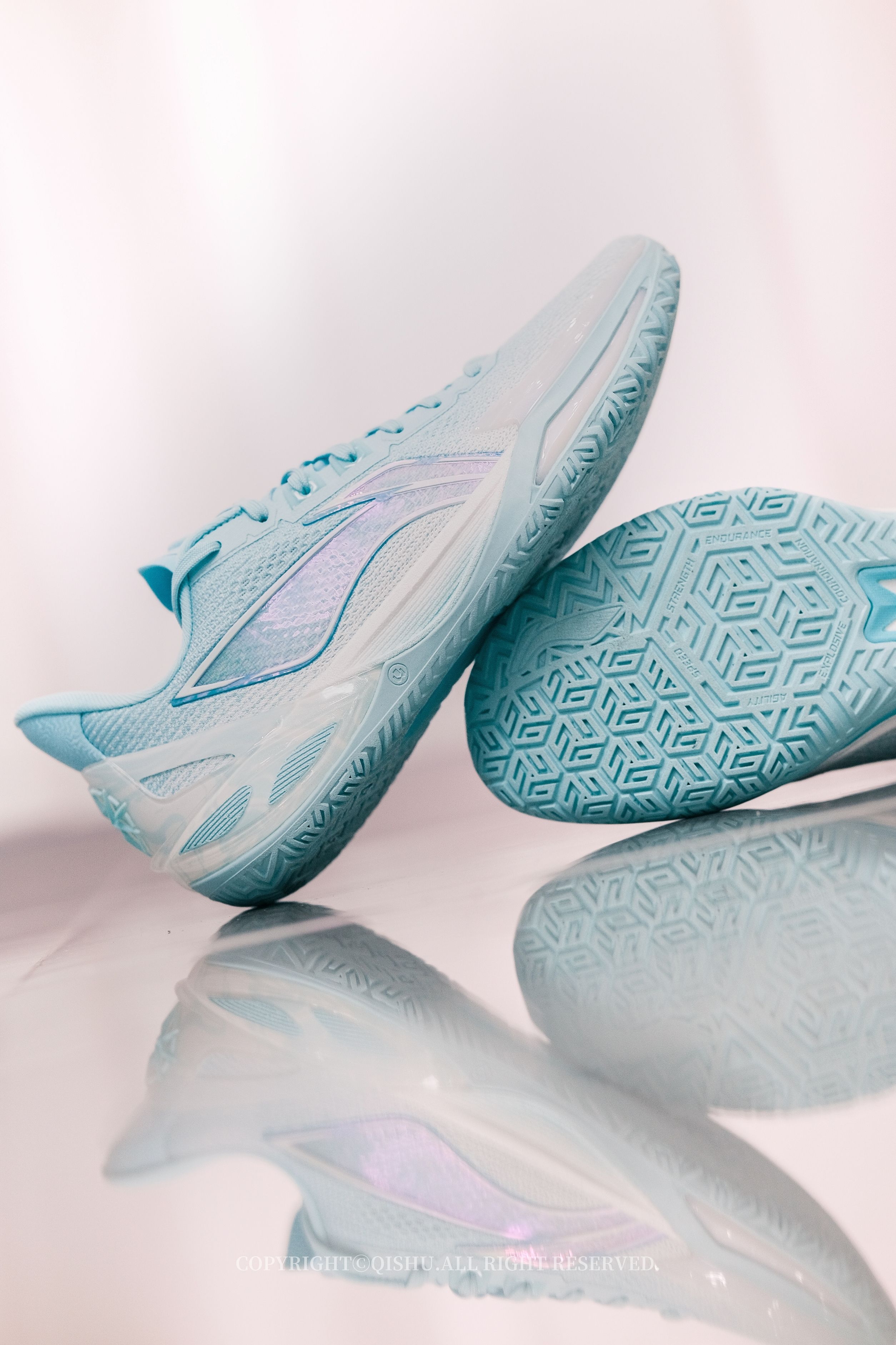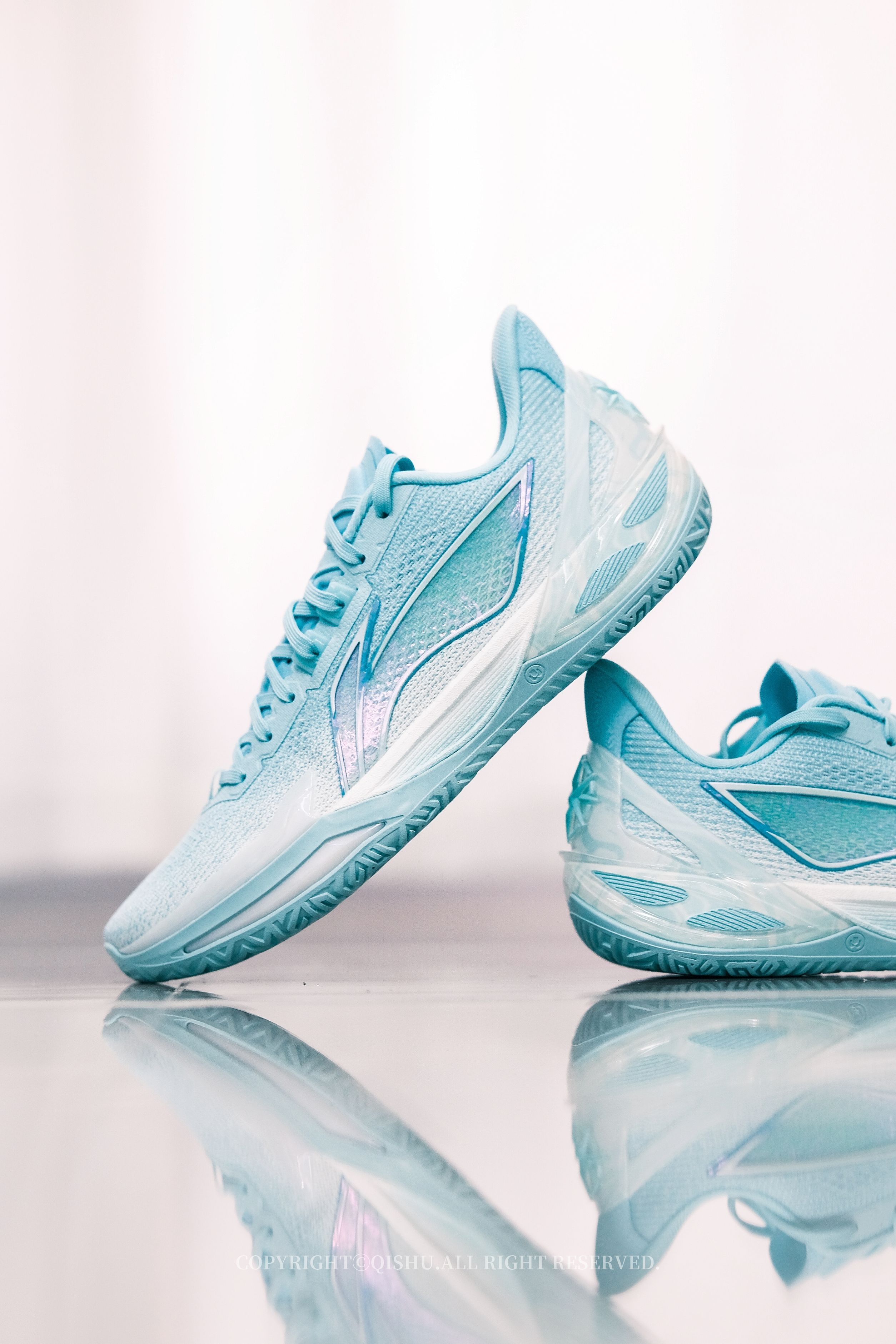 “碧落”一词,本就自带诗意——道教里指东方第一重天,也是万里晴空的颜色。 这双利刃6V2把天青色做得极清爽。鞋身从纯白渐变到湖绿,像晨光刚散、云层还没醒来的那一刻。侧面半透明Logo有镭射效果,光一转就泛出幻彩;后跟TPU藏着若隐若现的云纹,细节不张扬但很耐看。 鞋型修长利落,低帮重心降低后,上脚更贴地、更灵活。全掌䨻+前后填腹超䨻,弹得干脆,启动不拖沓,落地也稳。PENTA-S支撑系统把变向时的...