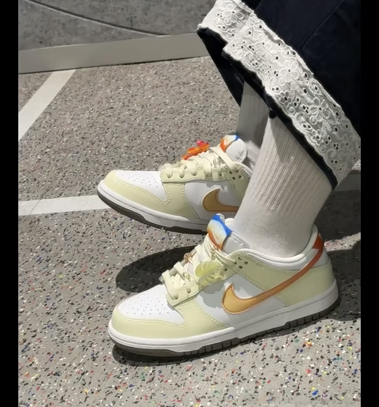 Nike Dunk 冰淇淋/渐变小鞋|春夏嫩模脸,甜妹直接锁死🍦 救命!这双Dunk真的太会了😭 奶呼呼的浅黄打底,搭配元气满满的橙黄渐变Swoosh,直接把“春日限定”穿在脚上,温柔感直接焊死在身上!