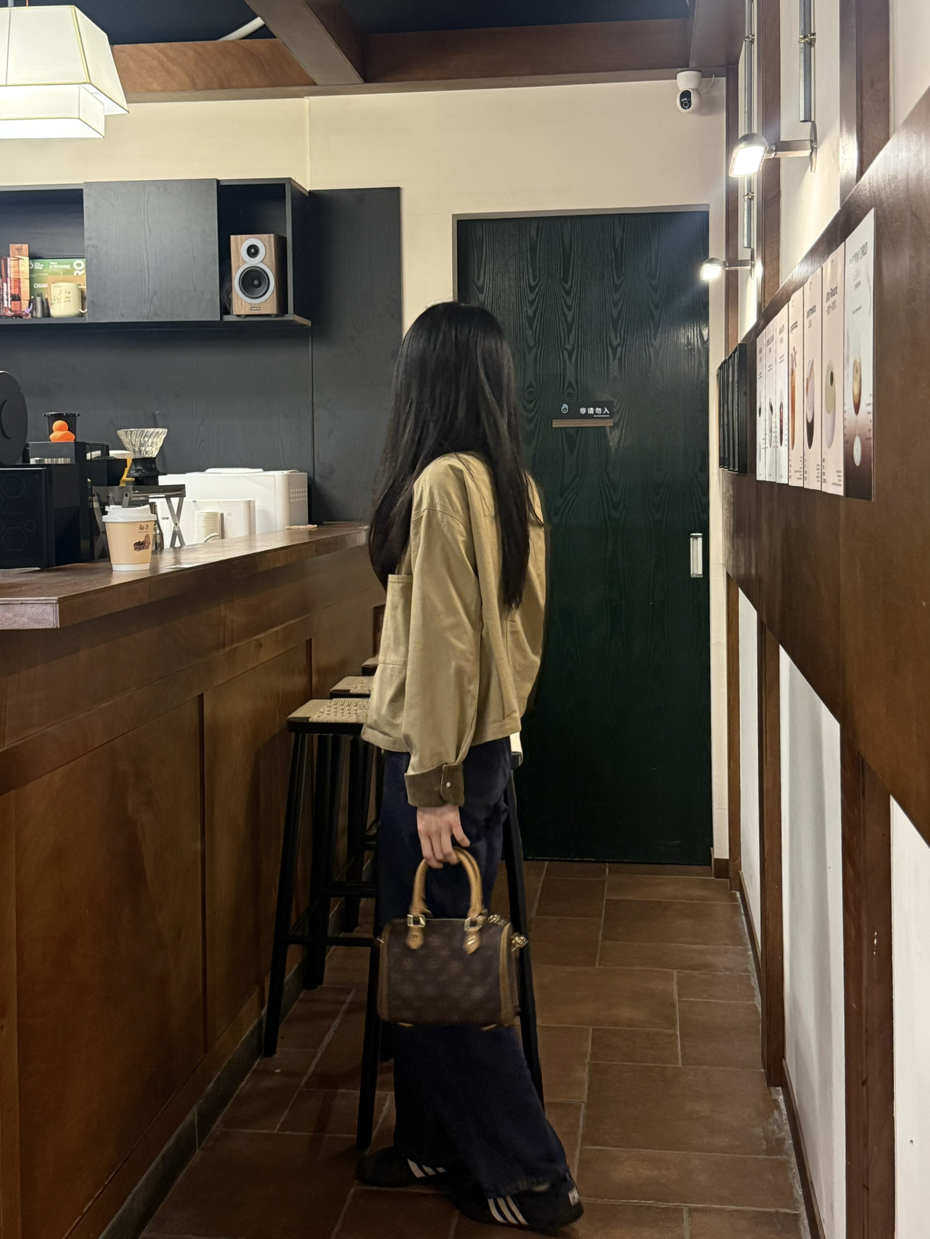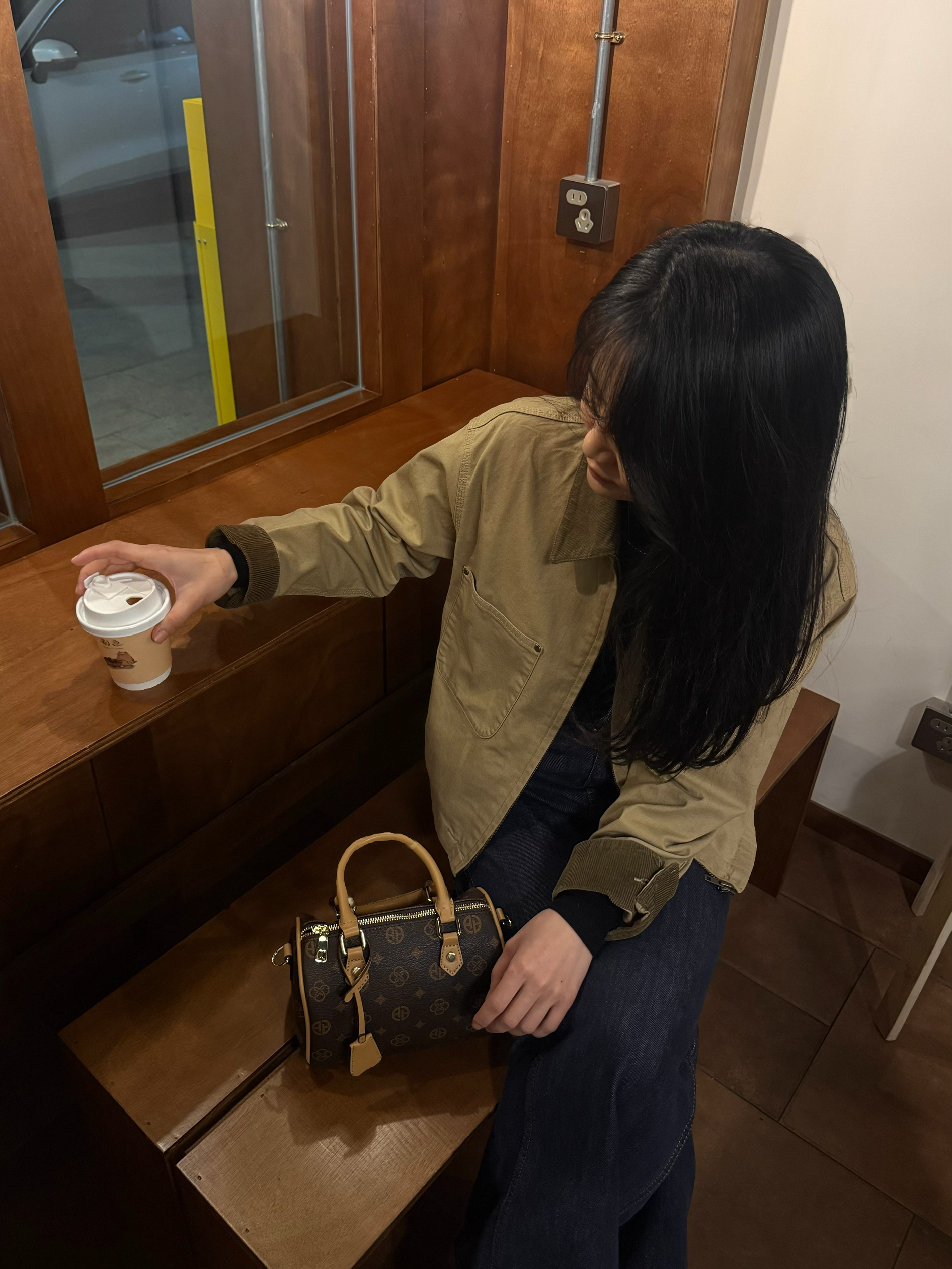 一套又韩又时髦的穿搭来咯! 上身一件棕色系夹克➕直筒牛仔裤 显高显瘦又遮肉! 👜搭的是老花保龄球🎳包 棕色老花图案复古又洋气🥂 开春这样穿 韩系范轻松get -