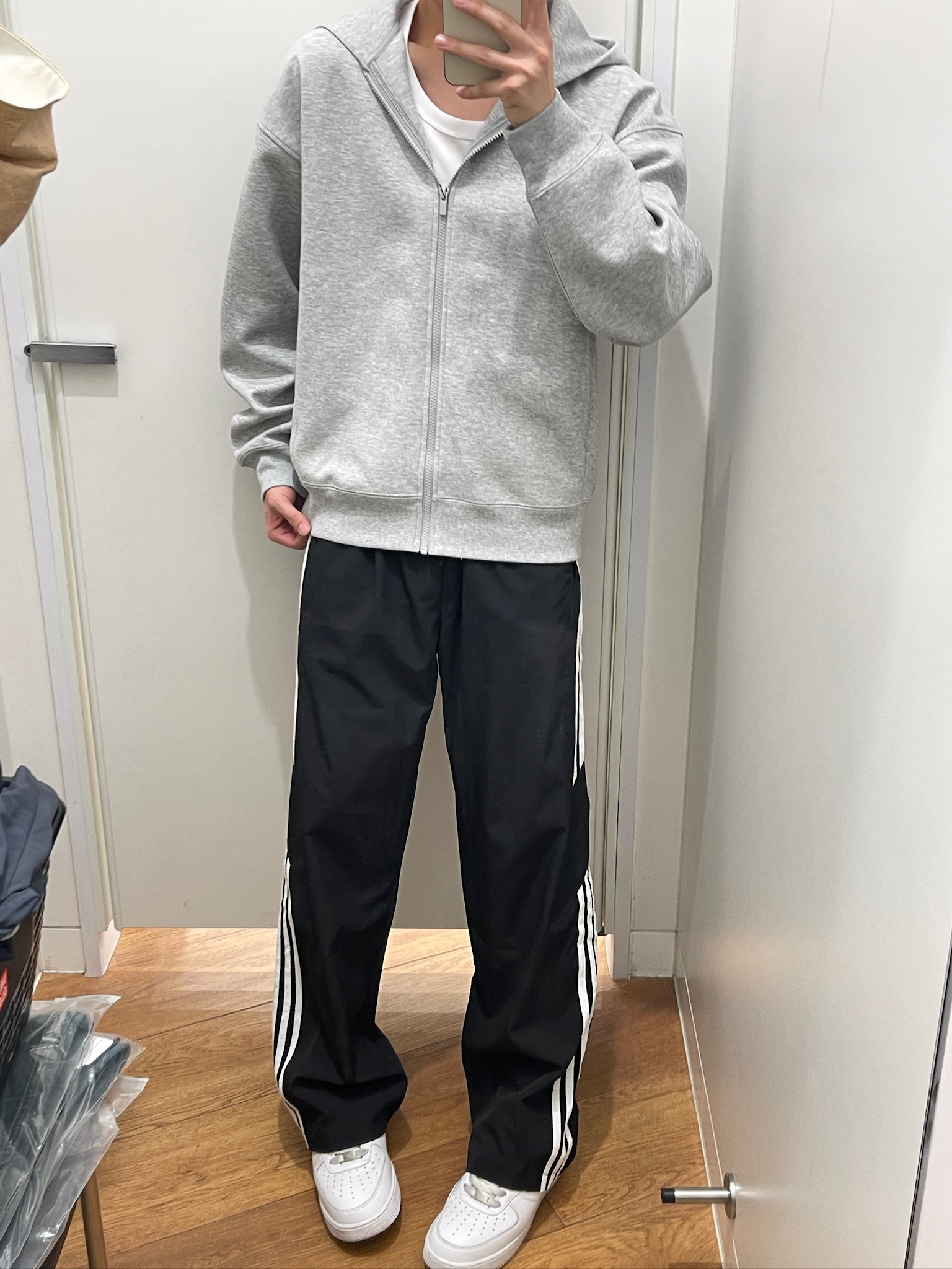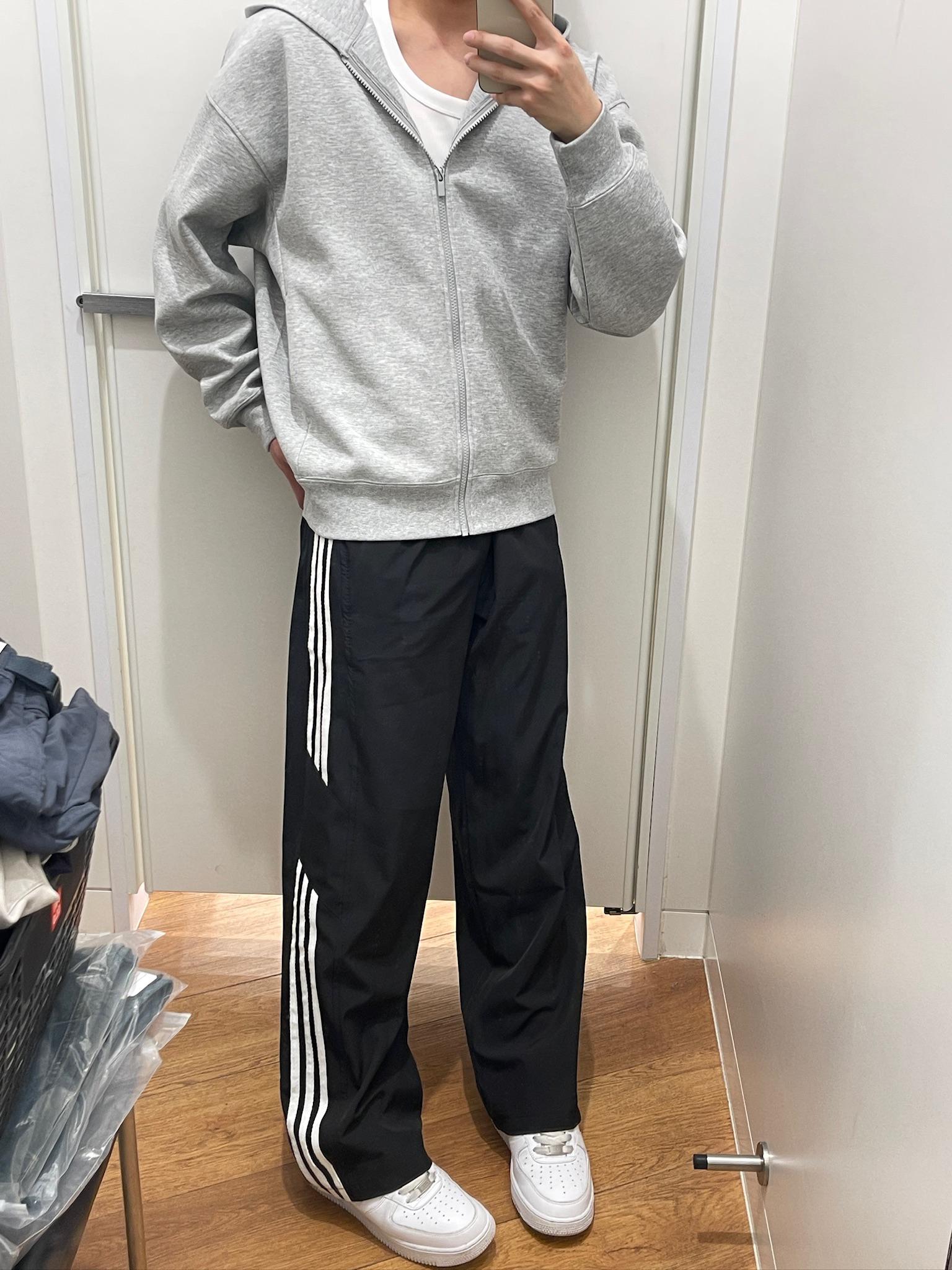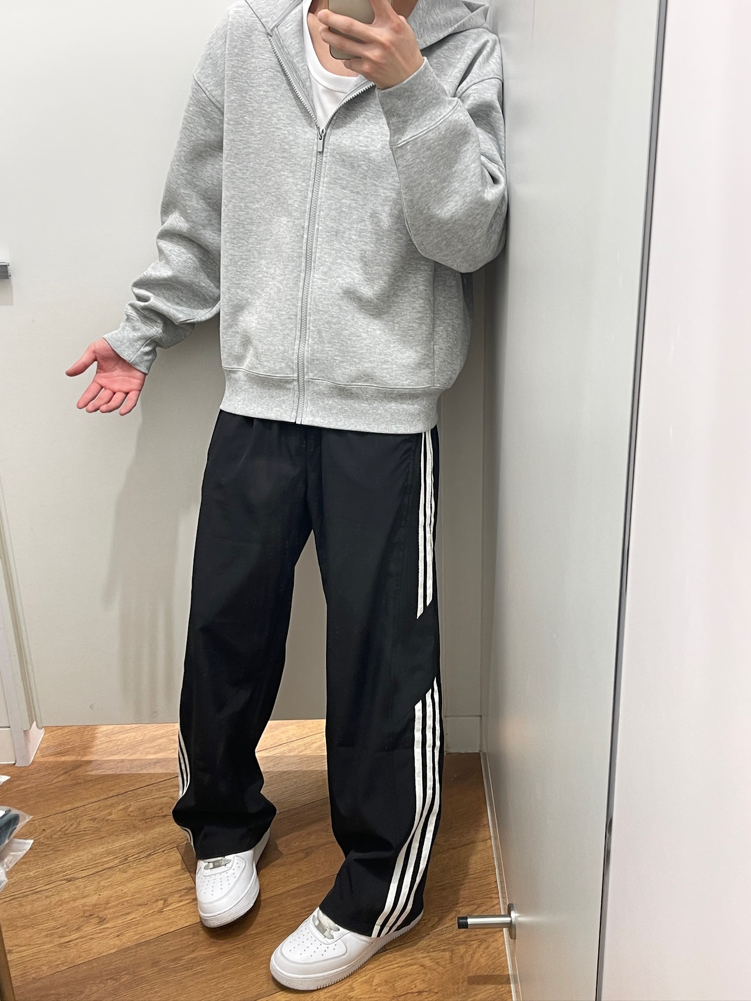 家人们谁懂啊!这条侧边条纹裤真的太好穿了🥹 版型是宽松阔腿的,对各种身材都超友好,肚子上的肉肉直接藏住,上身巨显腿长!面料软软糯糯的,贴身穿巨舒服,夏天穿也不闷汗。随便搭个灰色连帽卫衣、踩双小白鞋,出门一套就搞定,日常通勤、逛街穿都合适,男生夏天真的可以闭眼入✨