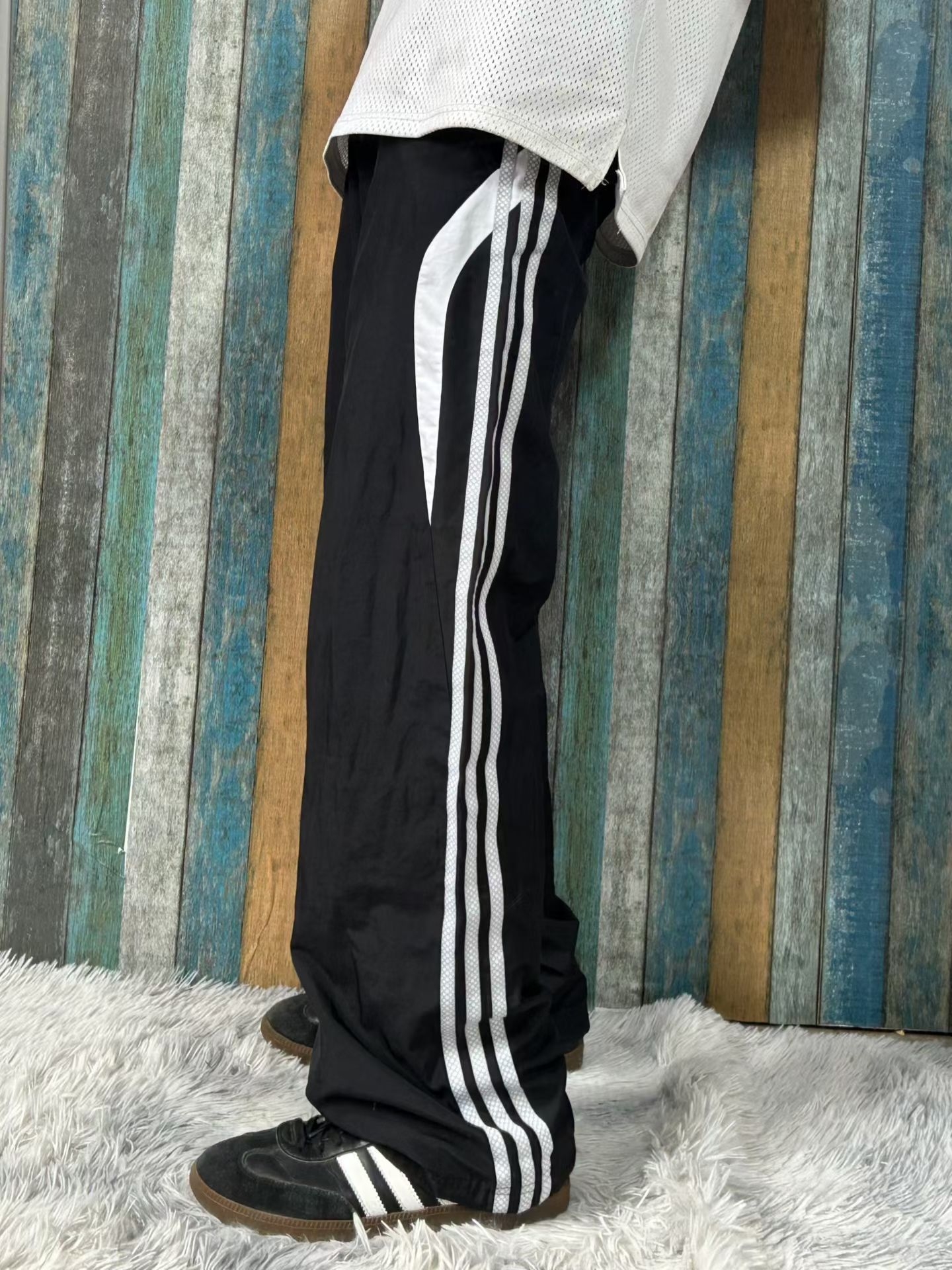 裤型宽松,属于直筒或阔腿剪裁,兼具运动感与休闲风格,适合日常穿搭或轻度运动场景 阿迪达斯的三条杠设计是其极具辨识度的元素,从早期运动服饰延伸至潮流穿搭领域,这类长裤既保留了品牌的运动基因,又因宽松版型契合当下“慵懒风”“街头风”的穿搭趋势,可搭配运动鞋、休闲鞋等打造多元造型。