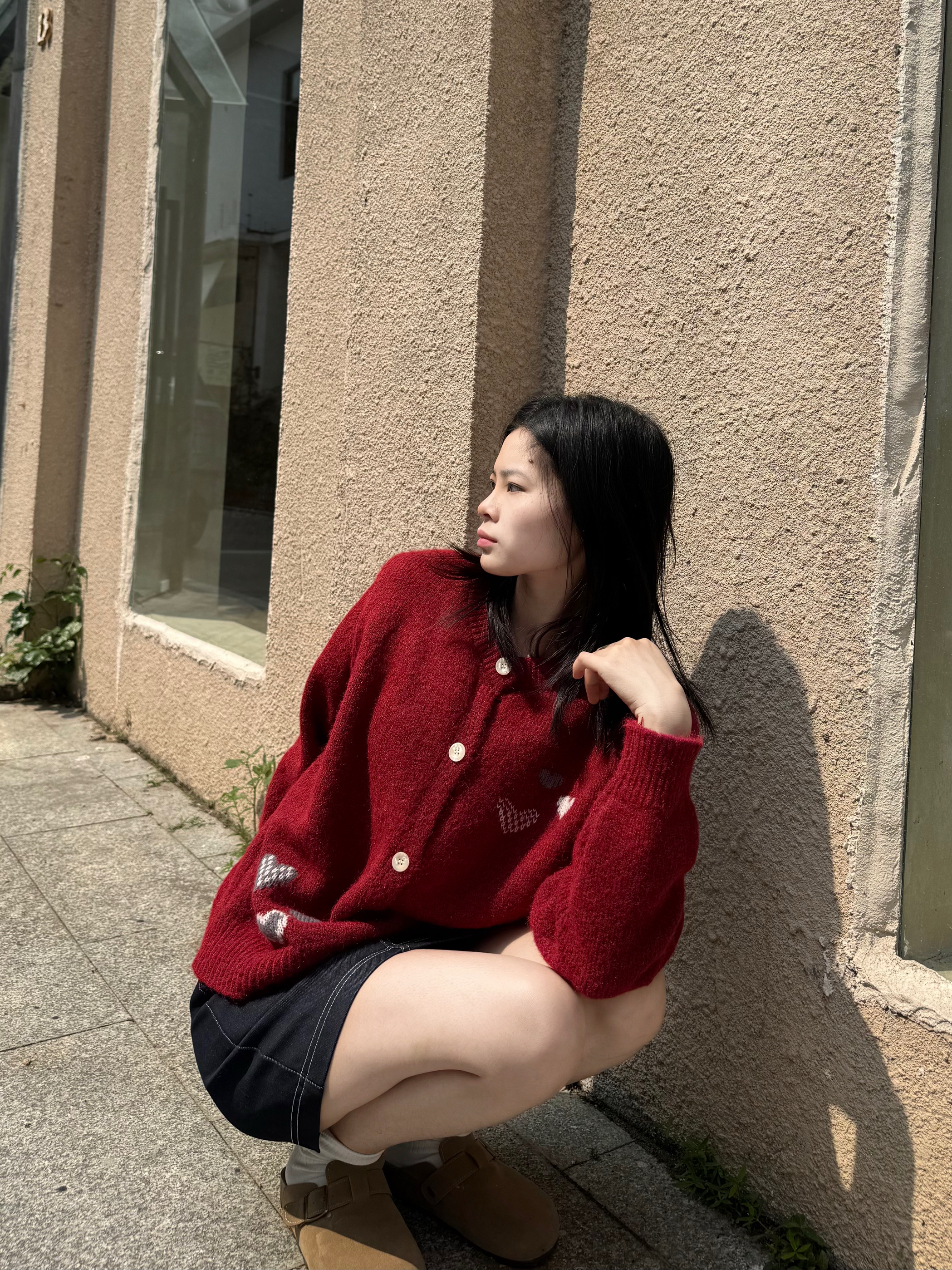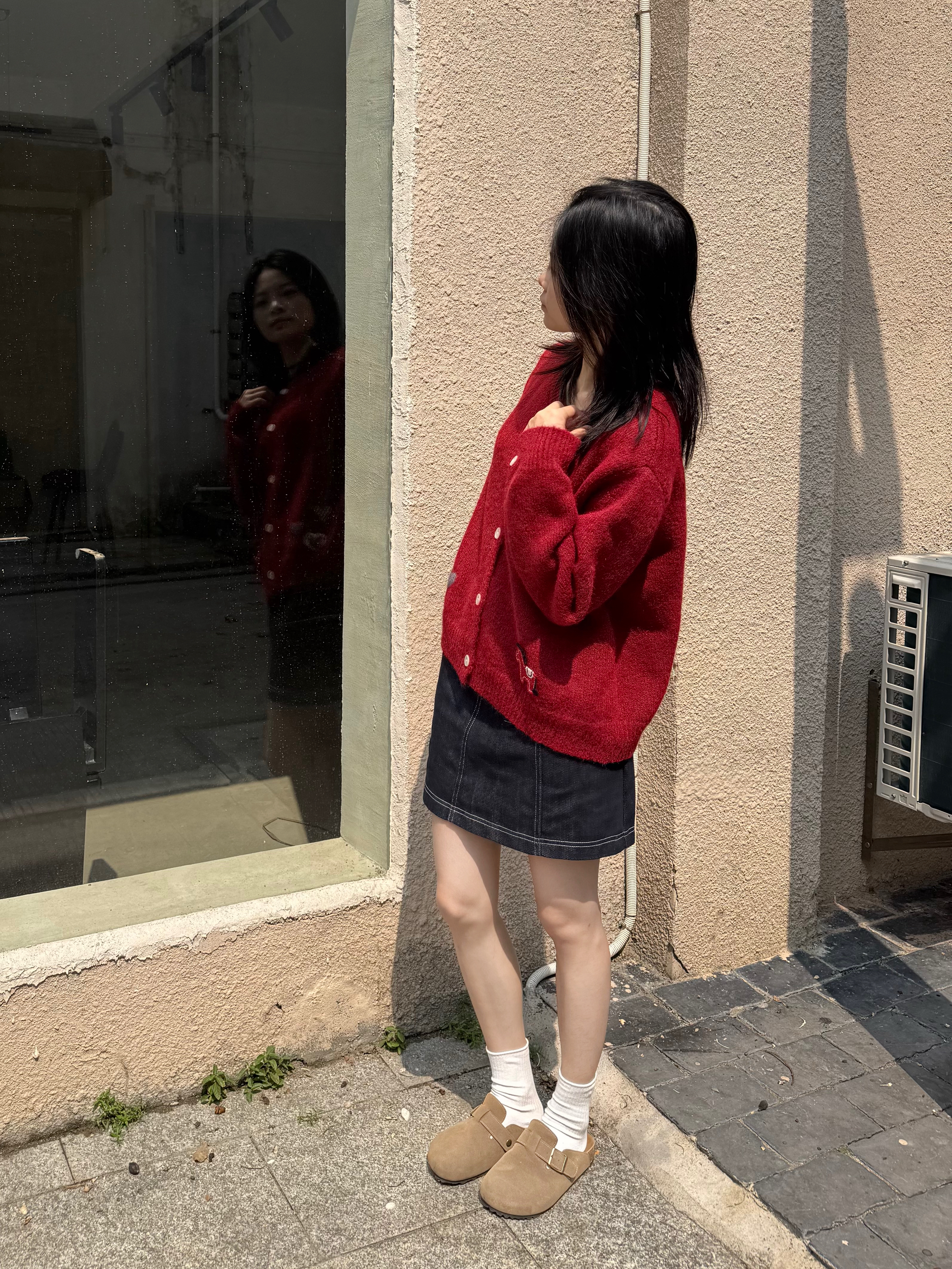 爱心刺绣软fufu的,慵懒感拉满 红开衫+明线牛仔短裙+勃肯鞋 一套就是不费力的韩系松弛感 日常通勤、约会、出游都能穿 拍照巨出片,回头率直接拉满