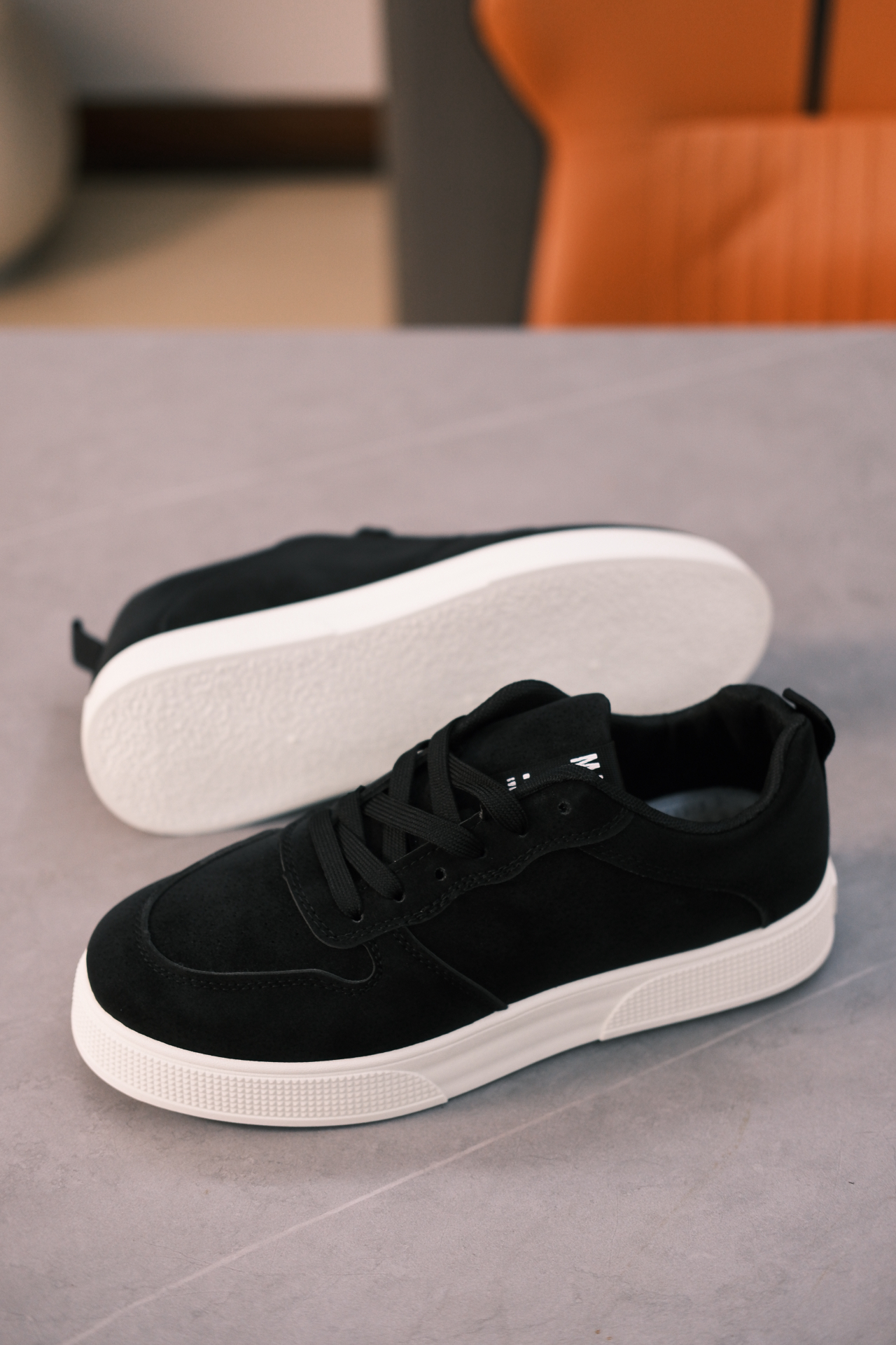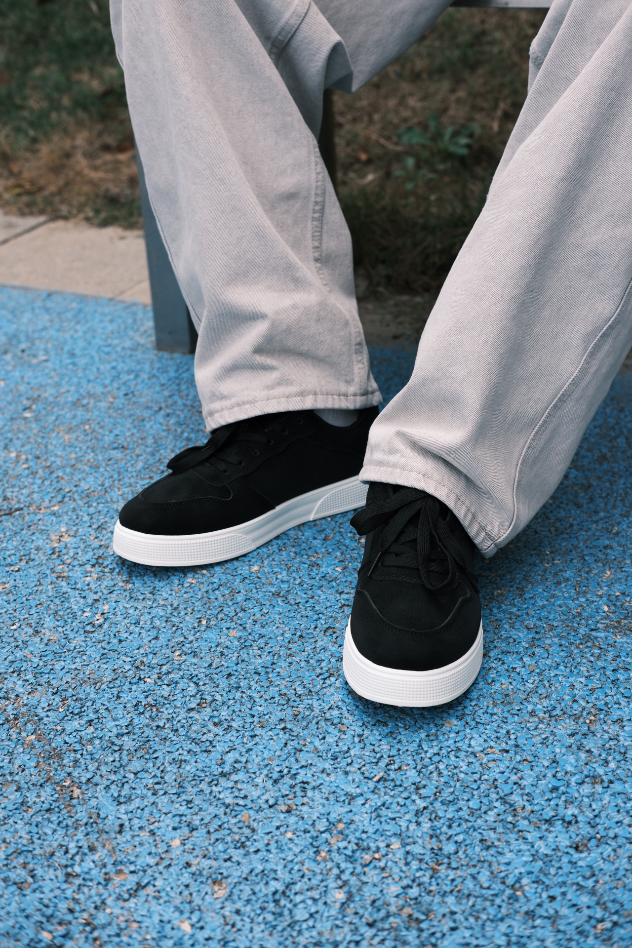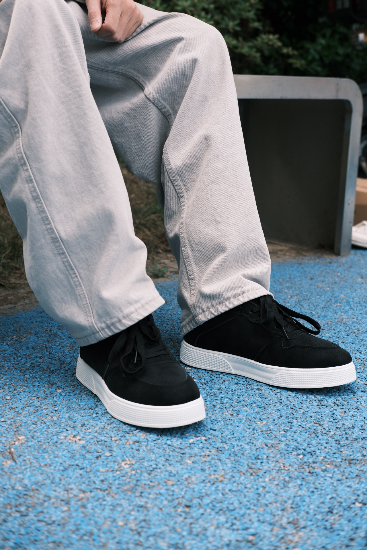 兄弟们,我这双鞋子你给打几分? 我这双是经典的黑白配色,低帮设计,鞋身用的是绒面材质,质感看着很细腻,完全没有廉价的塑料感。鞋舌上的字母印花是个小亮点,增加了细节感。 版型属于微厚底,上脚能悄悄拉长腿部线条,不会显得笨重。日常搭牛仔裤、休闲裤都很合适,通勤穿稳重,周末出门穿也不随意,属于怎么穿都不出错的类型。