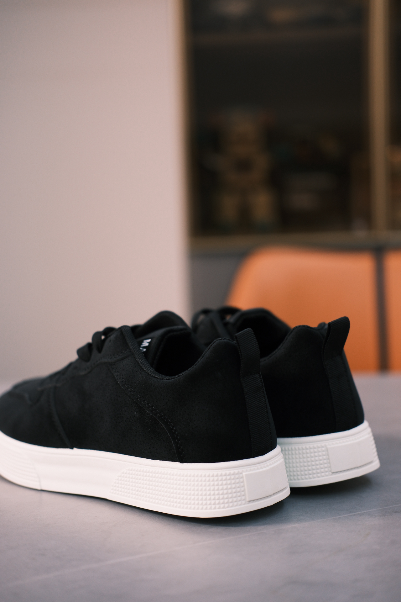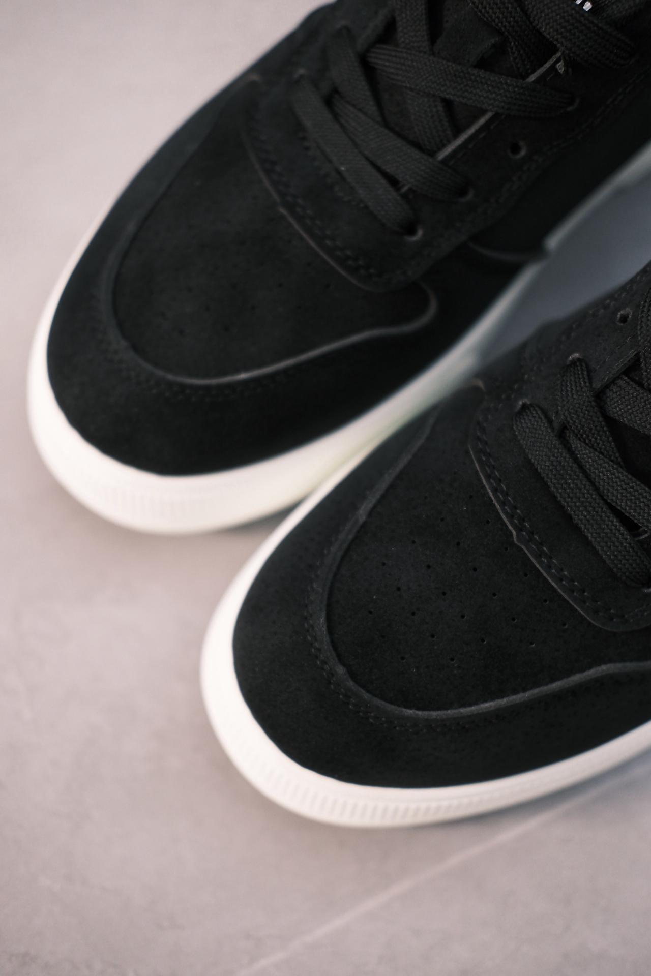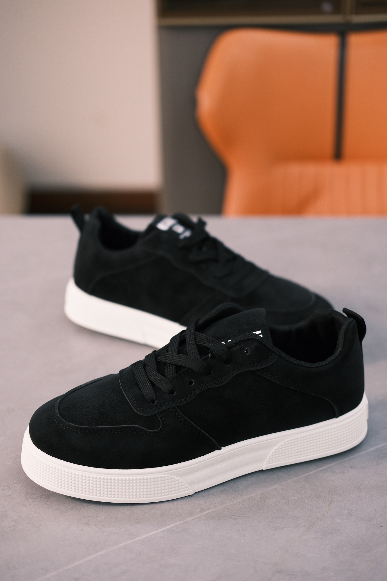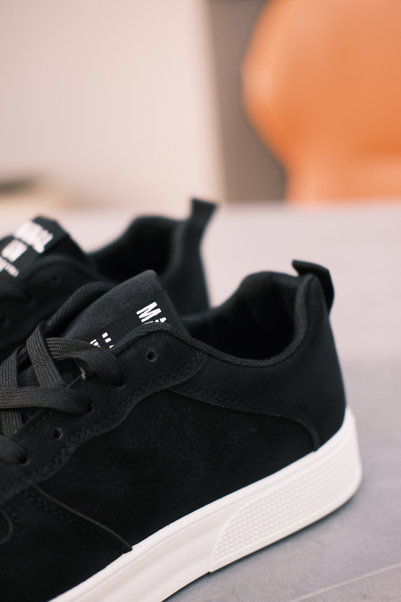 兄弟们,我这双鞋子你给打几分? 我这双是经典的黑白配色,低帮设计,鞋身用的是绒面材质,质感看着很细腻,完全没有廉价的塑料感。鞋舌上的字母印花是个小亮点,增加了细节感。 版型属于微厚底,上脚能悄悄拉长腿部线条,不会显得笨重。日常搭牛仔裤、休闲裤都很合适,通勤穿稳重,周末出门穿也不随意,属于怎么穿都不出错的类型。