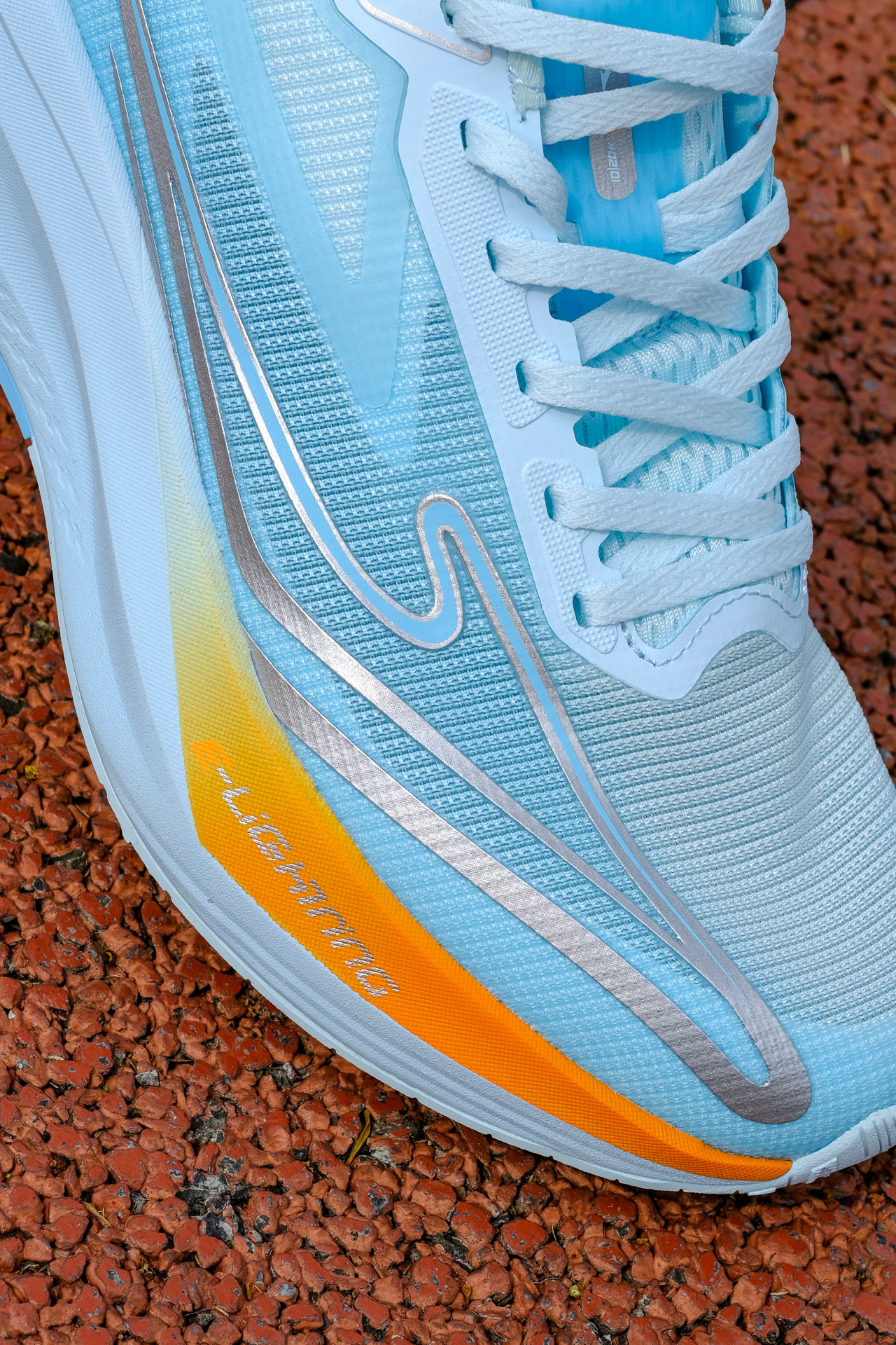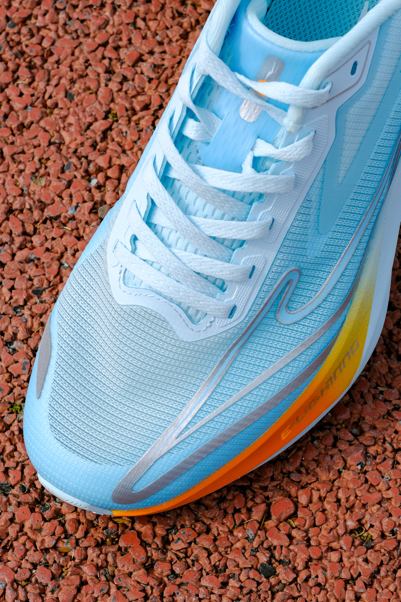 分享下尔克闪电5浅水蓝配色,大面积的蓝色加上橙色渐变点缀,犹如静谧湖水闪过一抹橙色,清新跳脱。 鞋面是多维透气网纱,网眼肉眼可见跑起来风都能灌进来,加上鞋舍也是布满网眼,轻薄透气夏天也不用担心怕闷脚。中底是奇弹科技,蹬地回弹有劲,落地减震明显,前后6MM坡差,步态滚动自如。 橡胶大底布满了立体的闪电纹路,抓地防滑都在线,即使遇到湿滑的路面也能稳稳掌控很放心 总的来说不管是学生党的体考体测,还...