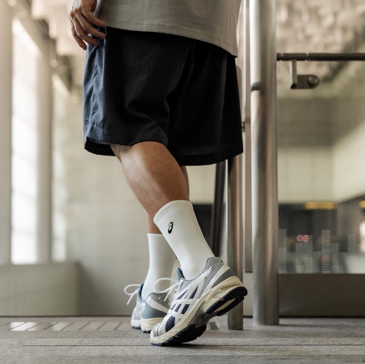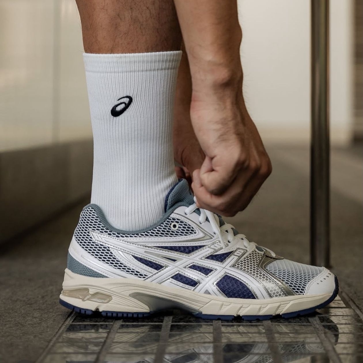 型号: Asics Ds Trainer14 外观:白+灰配色 材质:鞋面拼接、镂空网布、缓震防滑鞋底 上脚实测:购入价439元,性价比很高,并且周末穿着逛公园,轻便透气不挤脚,舒适到不想脱,日常通勤足够了~ 码数:不偏码,脚宽拍大半码,两侧可能有点压脚 搭配参考: 白色卫衣+蓝紫色运动裤 蓝色衬衫+灰色短裤 白色罩衫+蓝色牛仔裤 实现5秒出门,一脚蹬的快乐你也可以Get🥳
