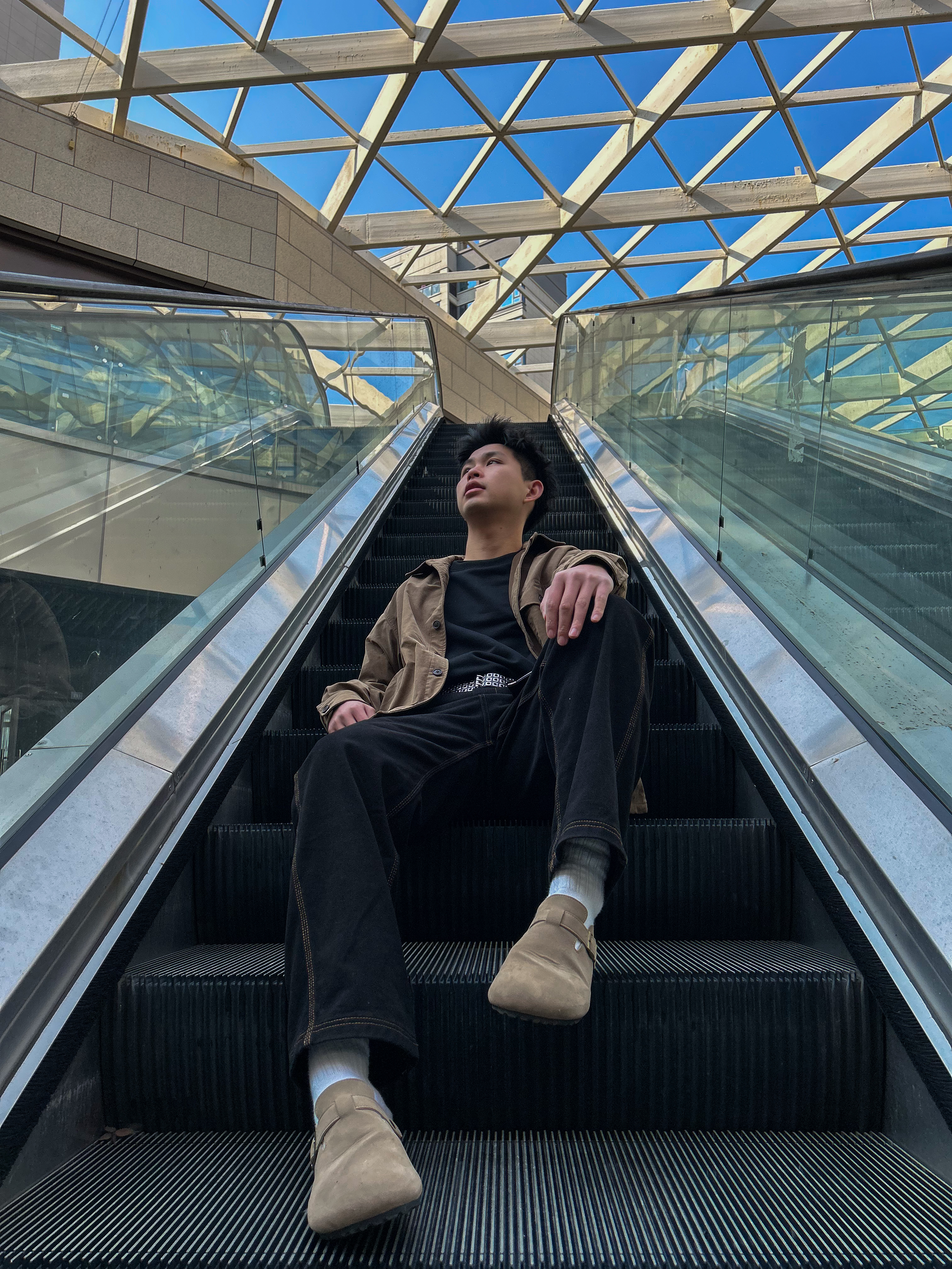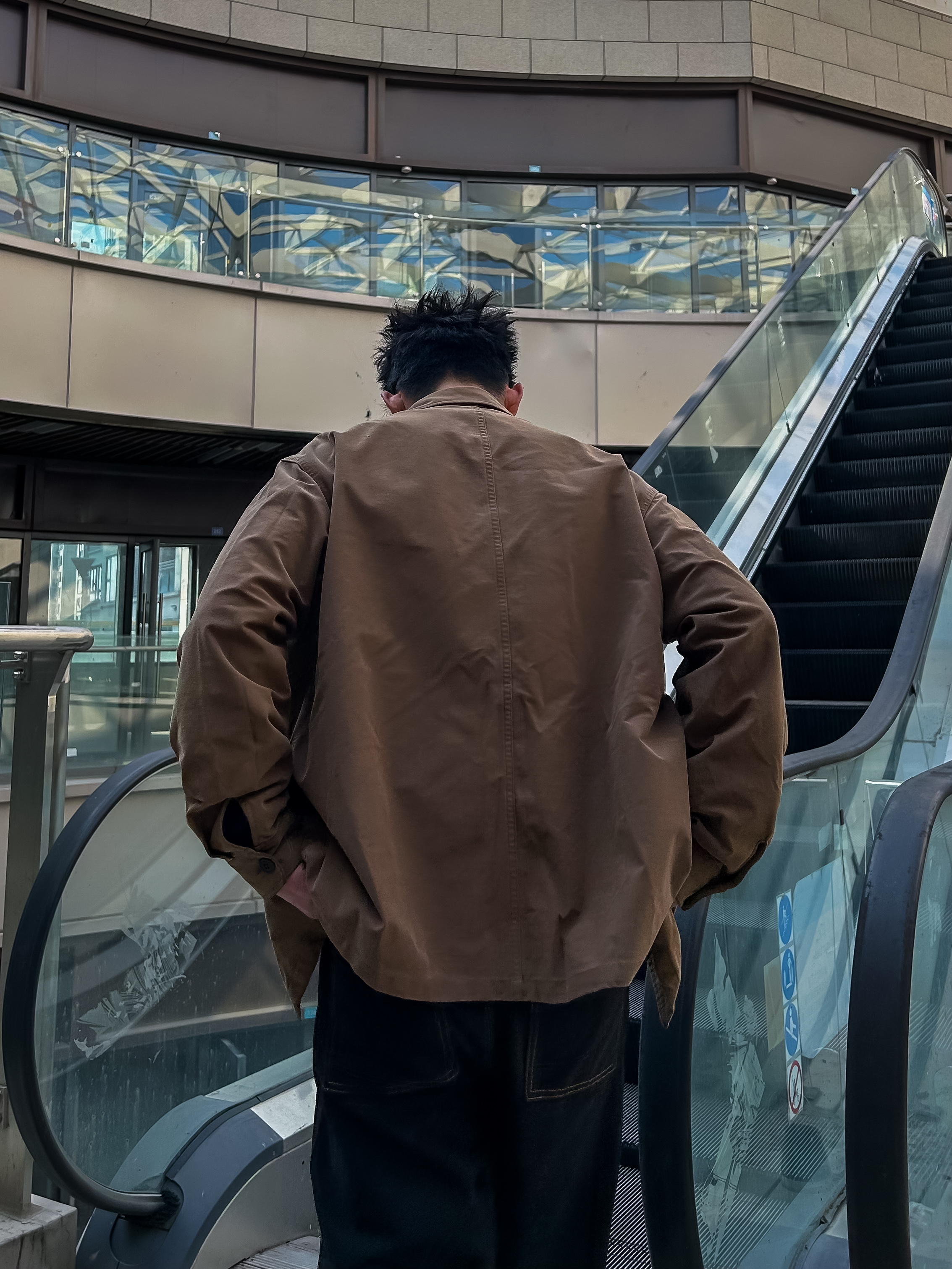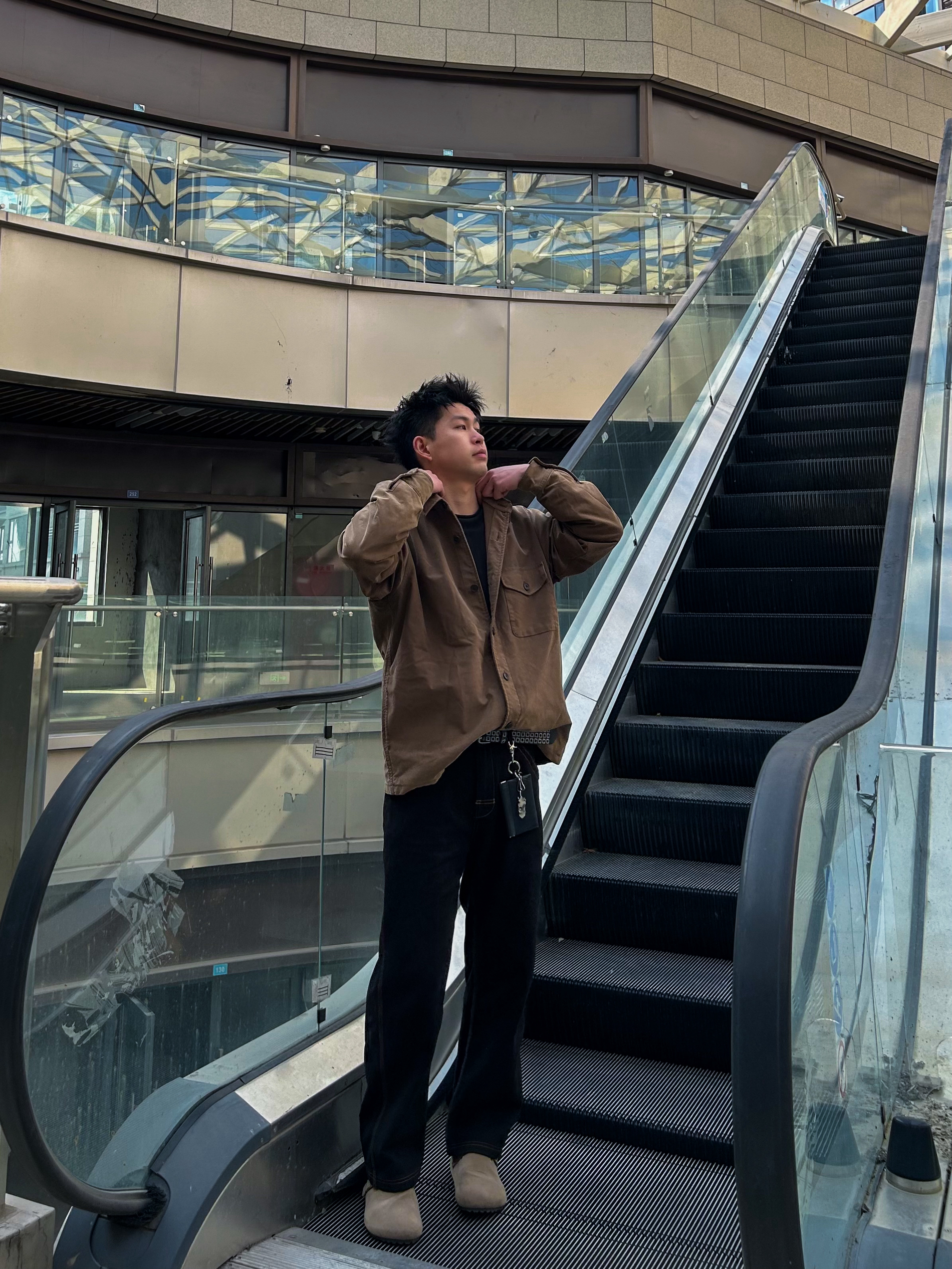 哈咯,这里是卢_SG ✨ 这套look主打松弛感citywalk风 整体是复古休闲+城市松弛感的结合 卡其色衬衫外套,复古肌理感拉满 既有工装的硬朗又不失温柔质感 宽松版型对各种身材都很友好 黑色直筒牛仔裤,微阔的裤型修饰腿型 和卡其色外套形成经典的大地色系对比。 靠颜色和版型的和谐搭配营造氛围 适合不想费力打扮但又想穿出质感的日常场景
