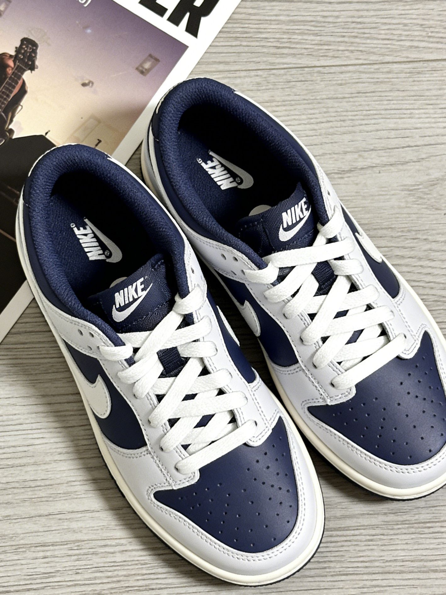 大学生鞋柜里必须有的一双鞋!Nike Dunk 海军蓝真的太香了✨ 白蓝配色干净又清爽,完全不挑穿搭,上课、出街、约会穿都合适,上脚显脚小,还特别显腿直! 皮质软乎乎的,做工也很在线,做旧中底自带复古滤镜,随便搭个卫衣+牛仔裤就是美式校园感拉满,情侣款一起穿更是氛围感拉满,学生党直接冲就完事了,这双真的是万年百搭款!