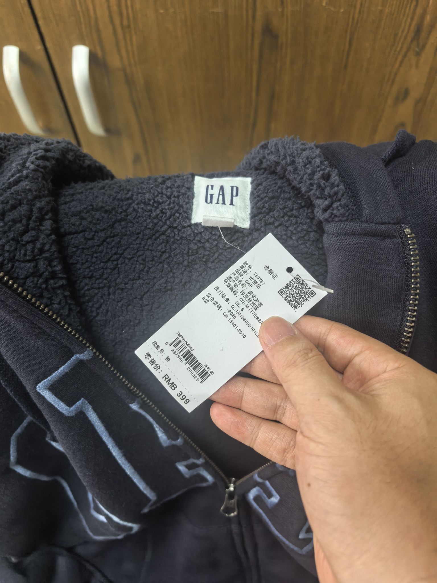 这款GAP仿羊羔绒连帽卫衣外套现在买太合适了穿起来的感觉非常轻盈不厚重 不像其他羊羔绒一样厚重穿起来了基本没啥感觉 面料还非常舒服 现在囤太合适了 冬季来了一定会涨价的