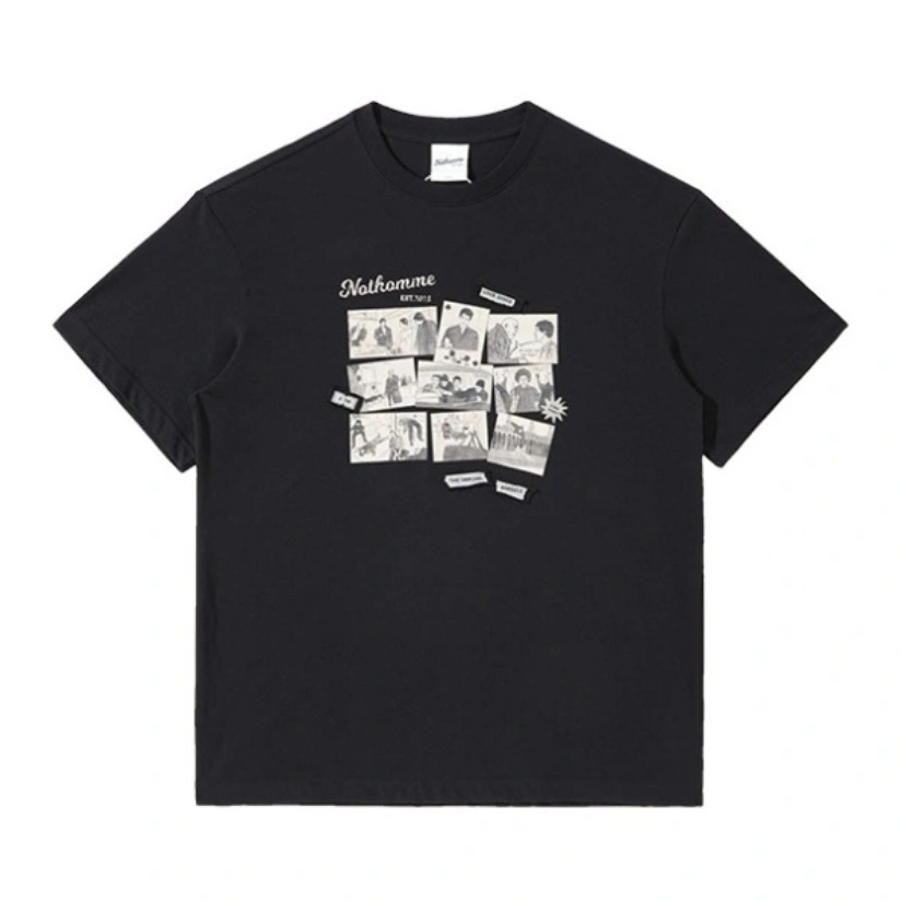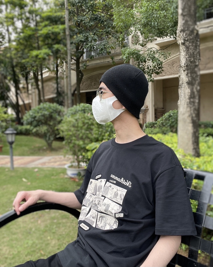 大家好,我是国联冲冲冲 最近天气越来越好了,快来看看我今天的穿搭吧 上衣:来自NOTHOMME的黑色电影印花短袖,纯棉的材质,穿上柔软舒适,印花是那那种复古风的电影片段,黑色真的是百搭,五一出去玩不怕不会搭配咯 裤子:黑色的抽绳短裤,毕竟天气热啦 鞋子:黑红的aj 身高:185cm 体重:70kg 尺码:L