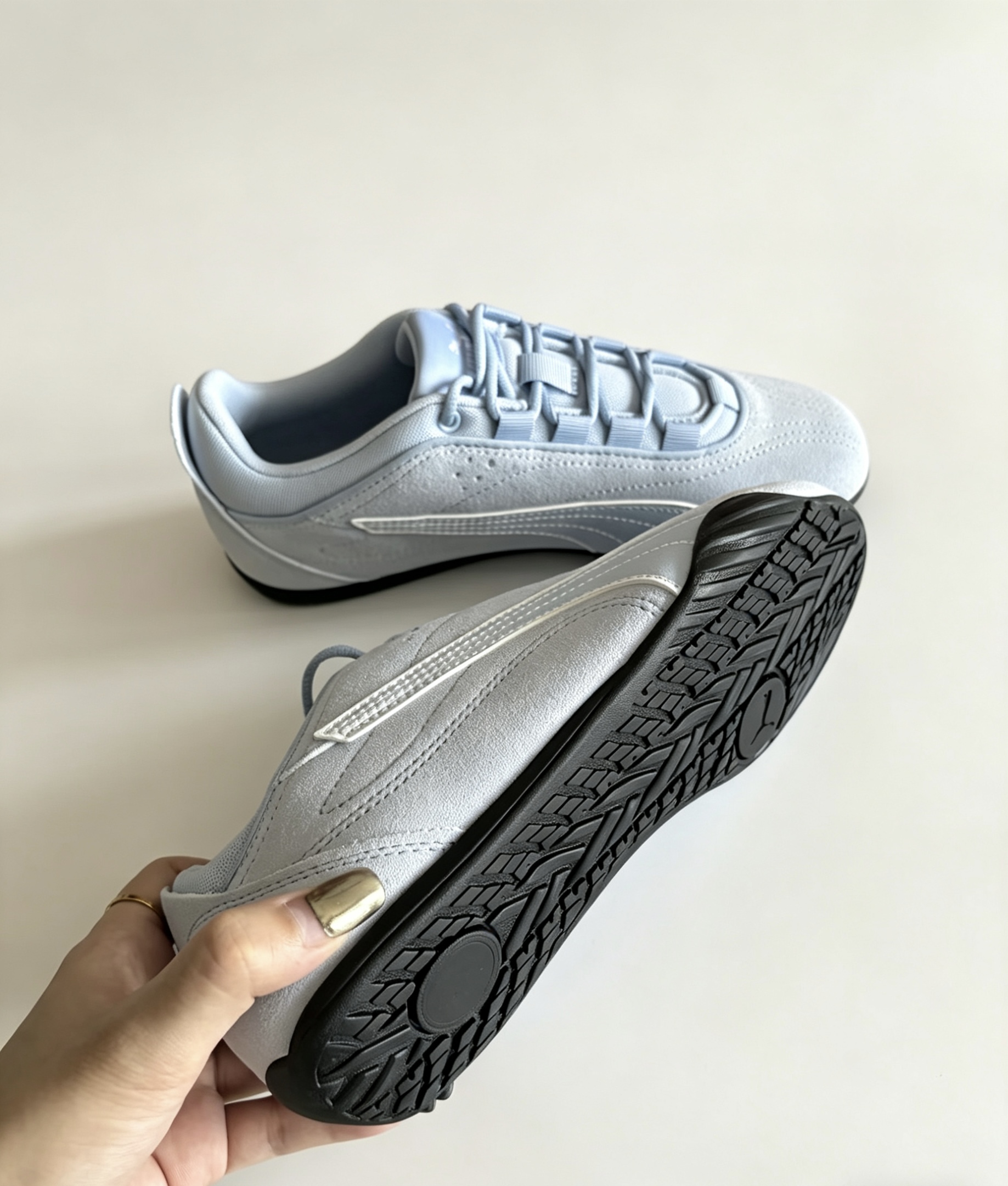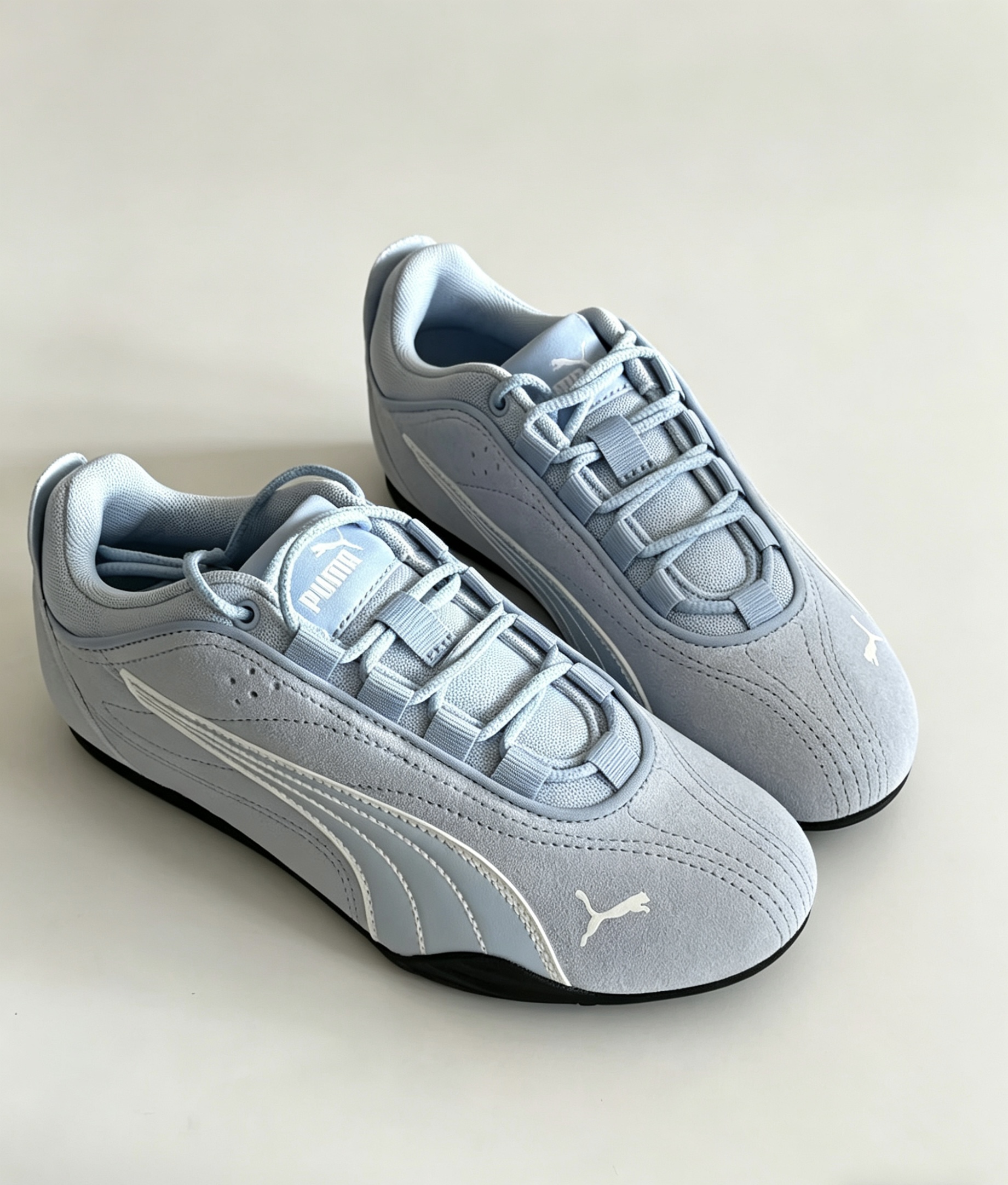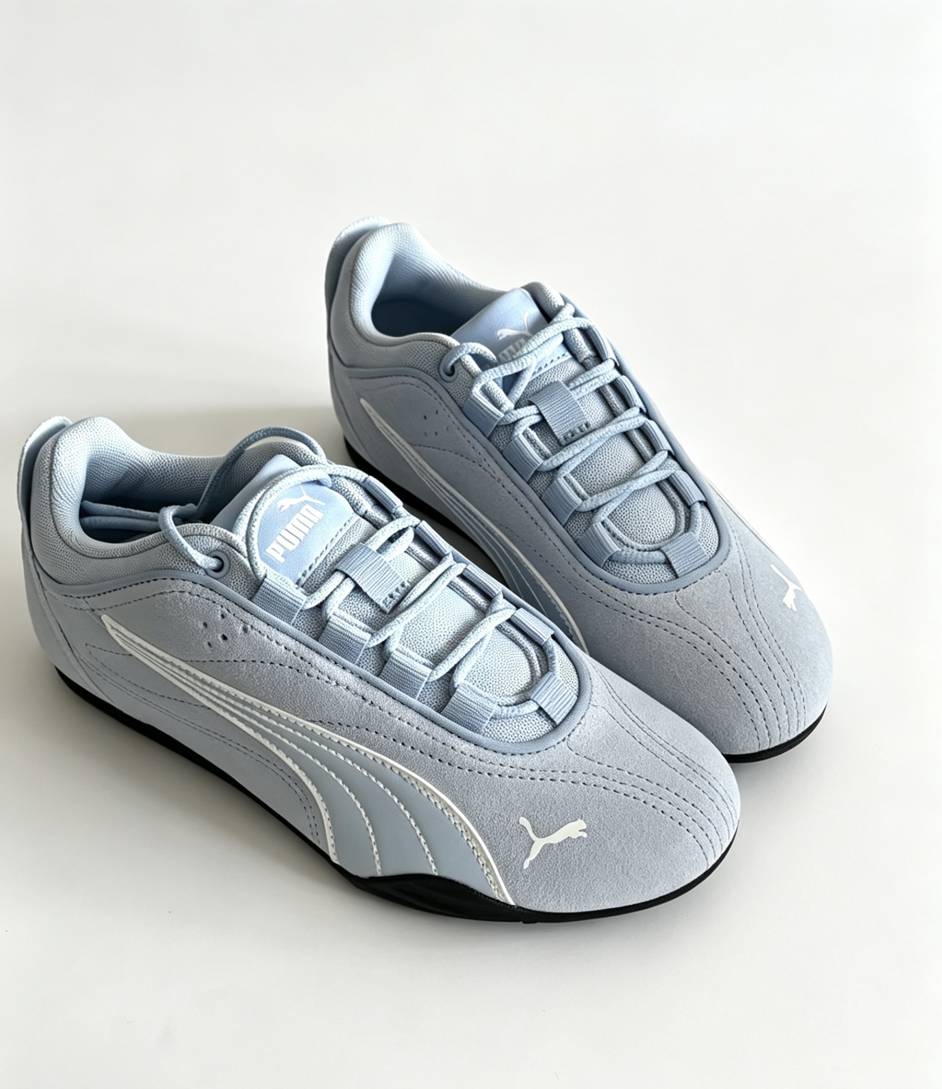 挖到宝了!这双冰蓝PUMA赛车鞋自带复古滤镜!雾霾蓝麂皮质感拉满,经典鞋型复古又时髦。上脚脚感软糯,包裹性极佳,走路超稳。搭配任何穿搭都能提升质感,出街回头率超高,这双宝藏鞋必须人手一双!