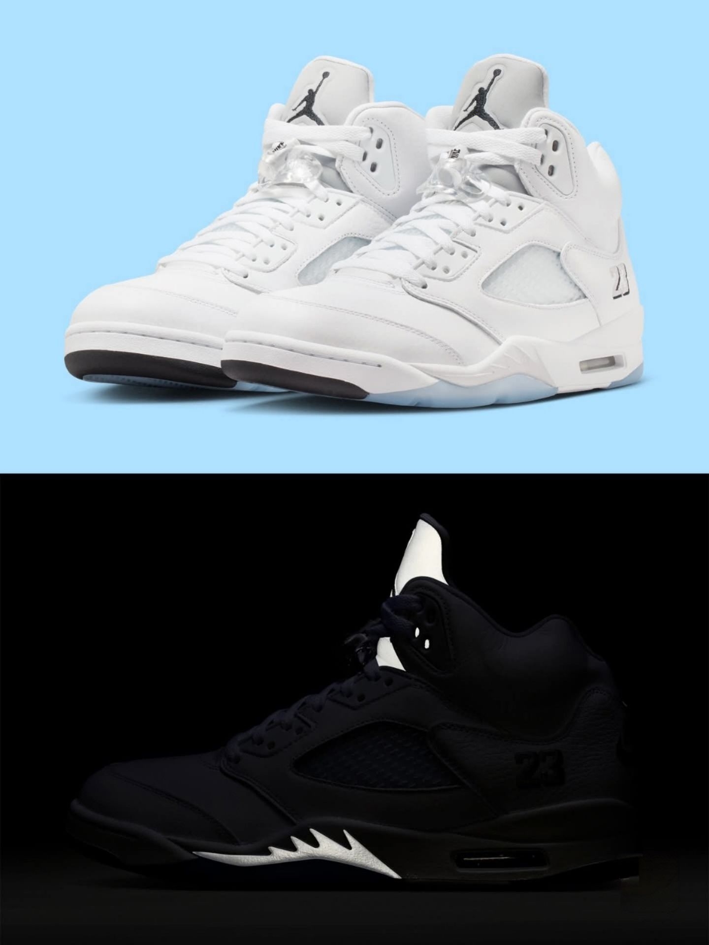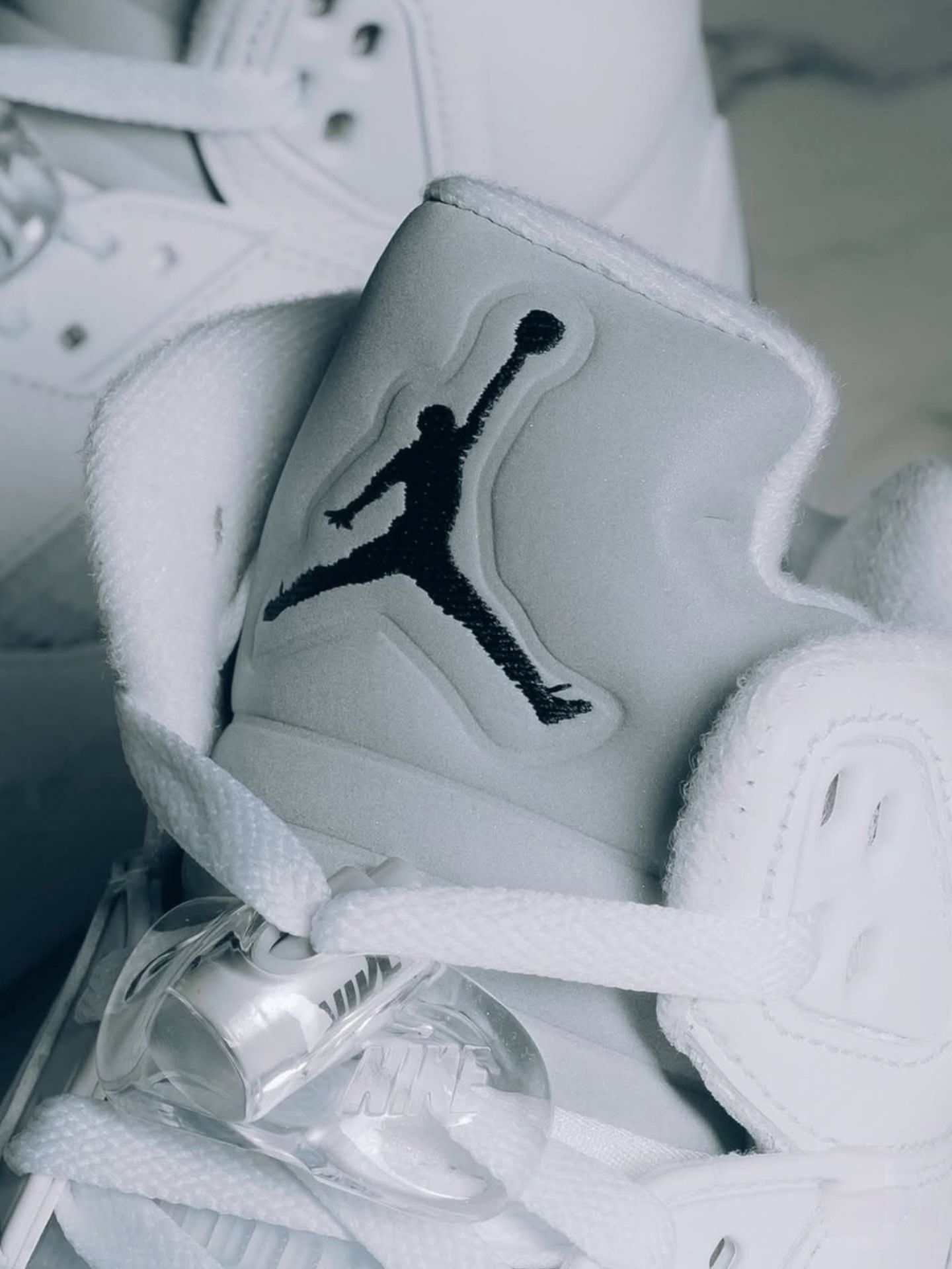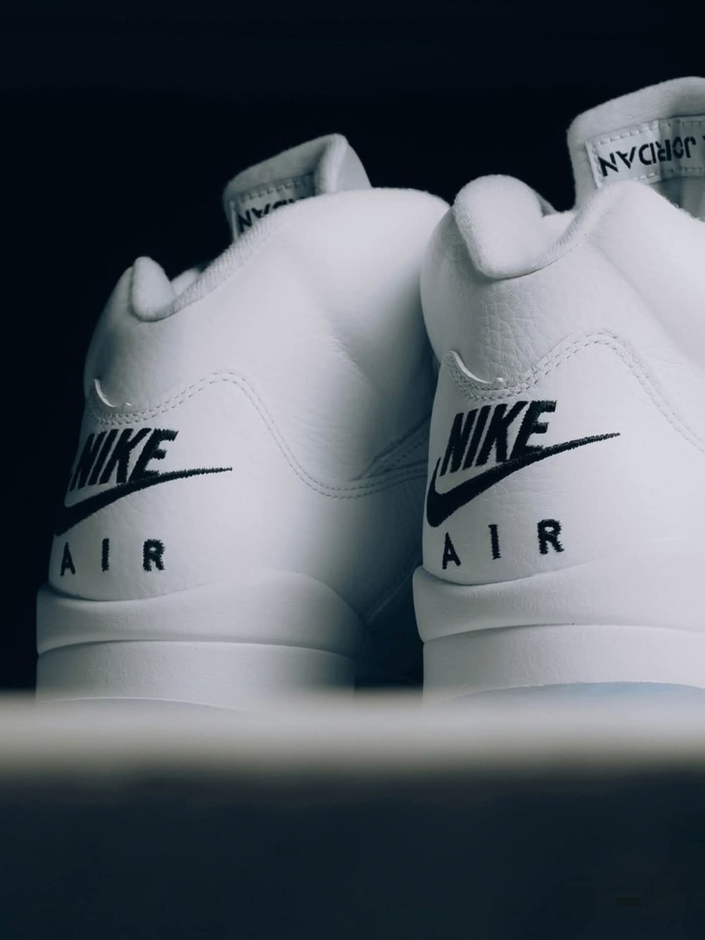 家人们!爷青回的Air Jordan 5 "White Metallic" 正式官宣发售了🔥 4月25日正式登场,而且是全家族尺码同步发售! 纯白荔枝皮革鞋身+金属银细节点缀,鞋侧23号刺绣、后跟飞人logo、鞋舌NIKE AIR标完美还原元年质感,冰蓝色水晶外底直接把氛围感拉满,经典永不过说的就是它! 不管是老鞋迷收藏,还是新玩家入手,这双都是AJ5系列里的必入款,4月25日定好闹钟冲就完事了!